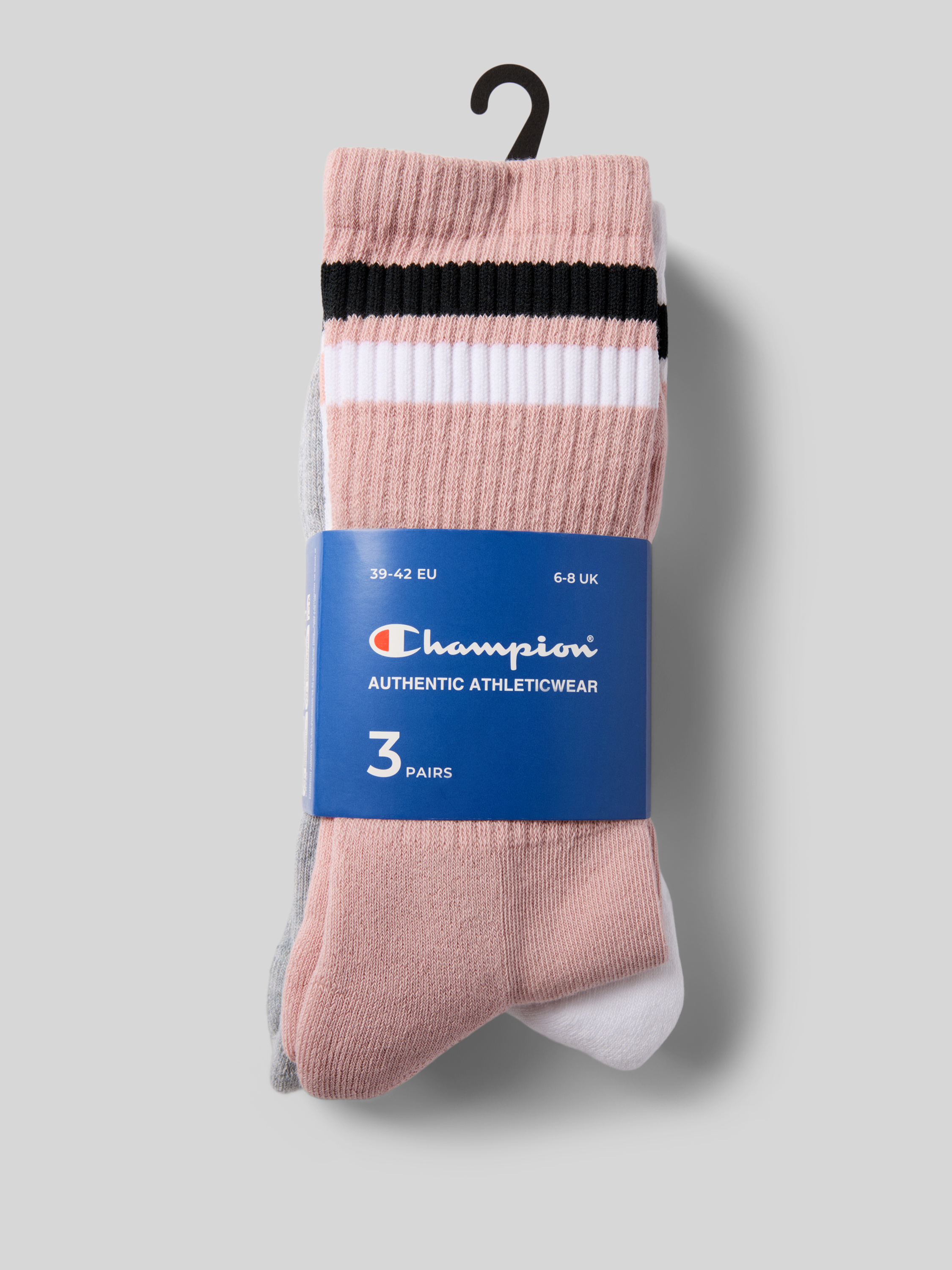 Die Herren Socken von CHAMPION schmiegen sich angenehm an den Fuß und sitzen durch den körpernahen Schnitt bequem im Alltag. Dank des Baumwoll-Mix mit Stretch-Anteil bleibt das Tragegefühl den ganzen Tag über angenehm. Mit dem Label-Print im 3er-Pack ergänzt man unkompliziert sportliche Looks.