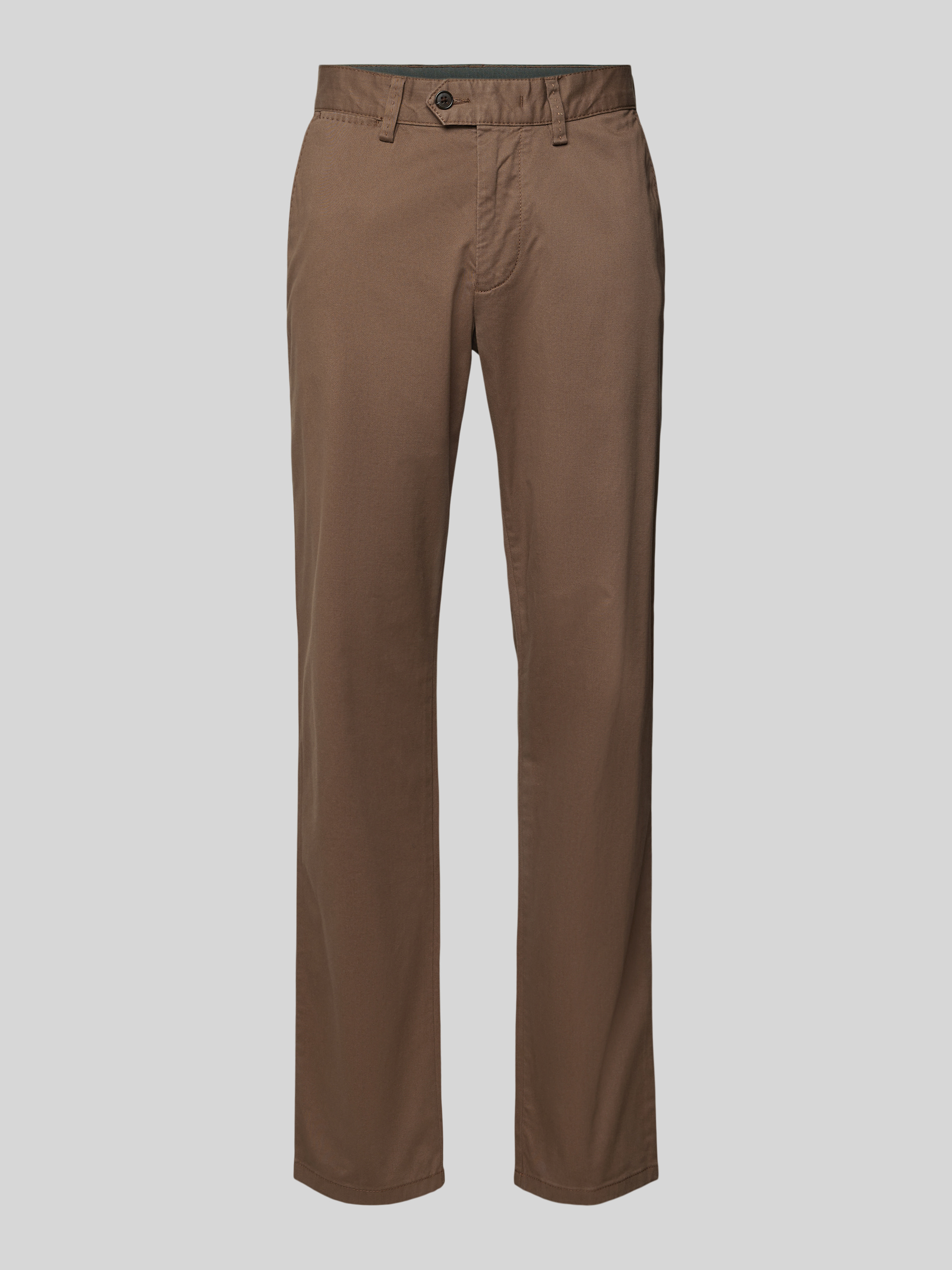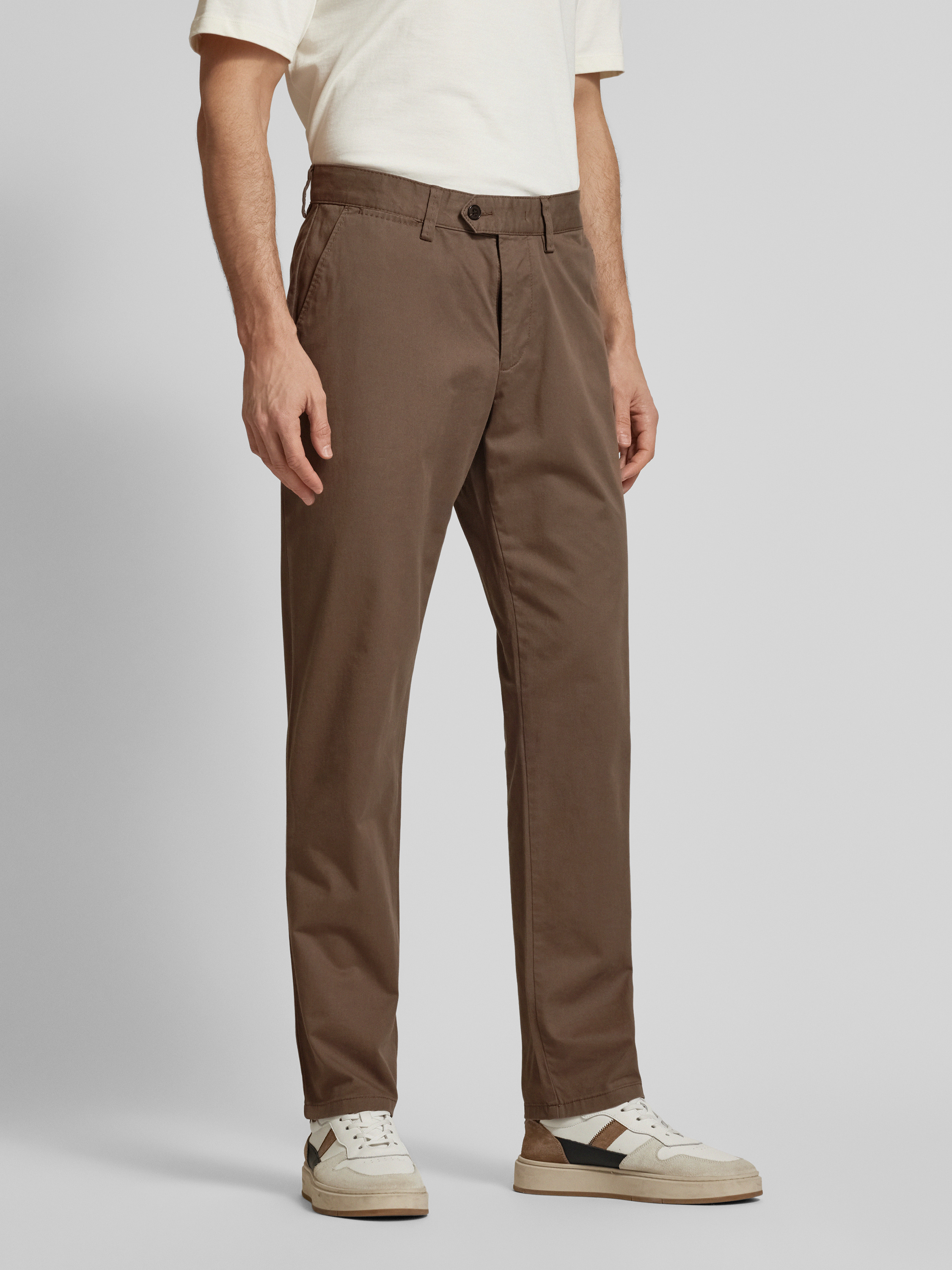 Die Herren Chino von Christian Berg Men vereint einen Baumwoll-Elasthan-Mix mit einer geraden Passform, was Bewegungsfreiheit und Komfort gewährleistet. Das unifarbene Design wird durch französische Eingrifftaschen ergänzt, die Funktionalität und Stil harmonisch verbinden. Gesäßtaschen bieten zusätzlichen Stauraum.