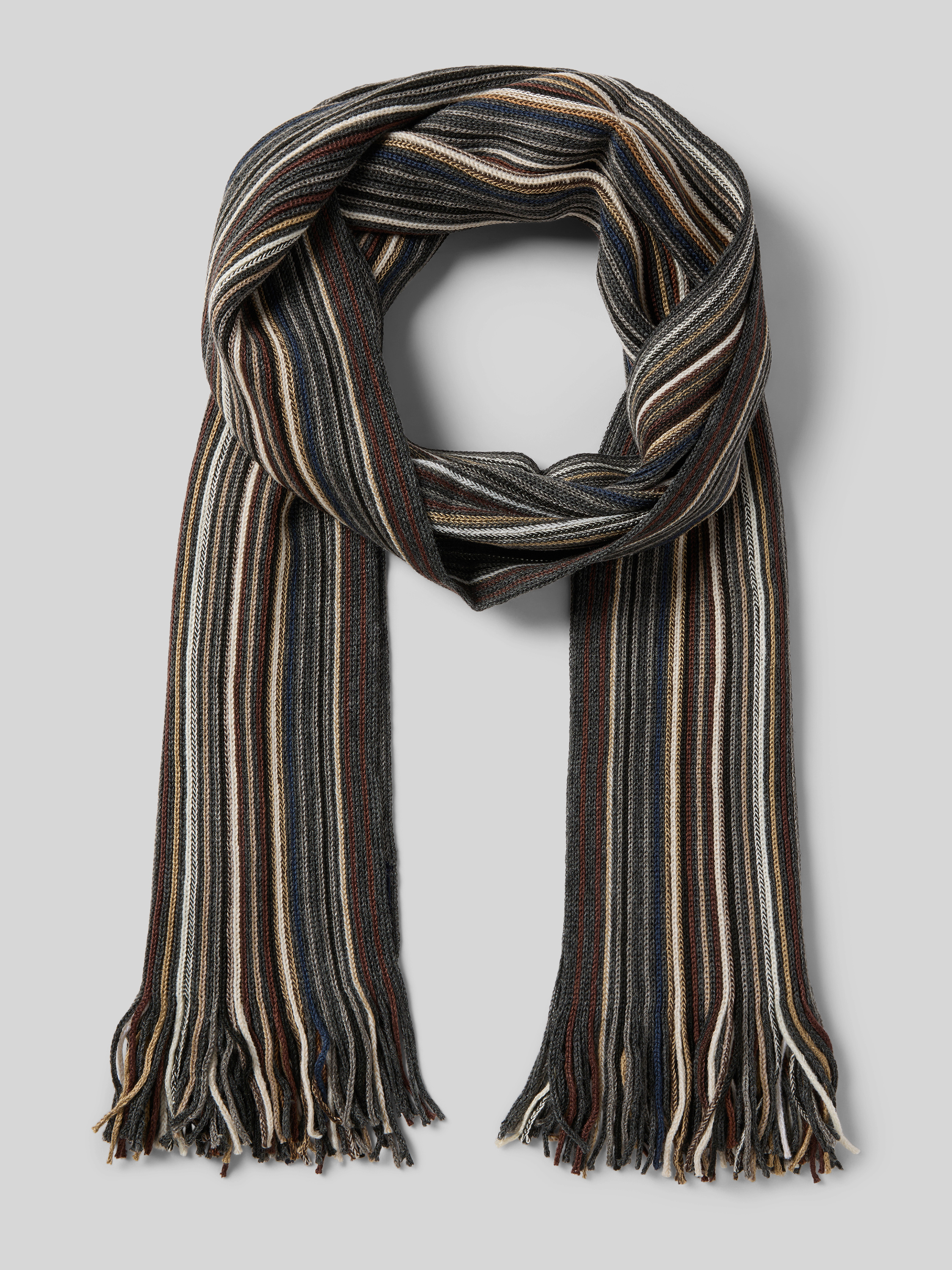 Christian Berg MenSchal mit Streifenmuster und Fransen in marine