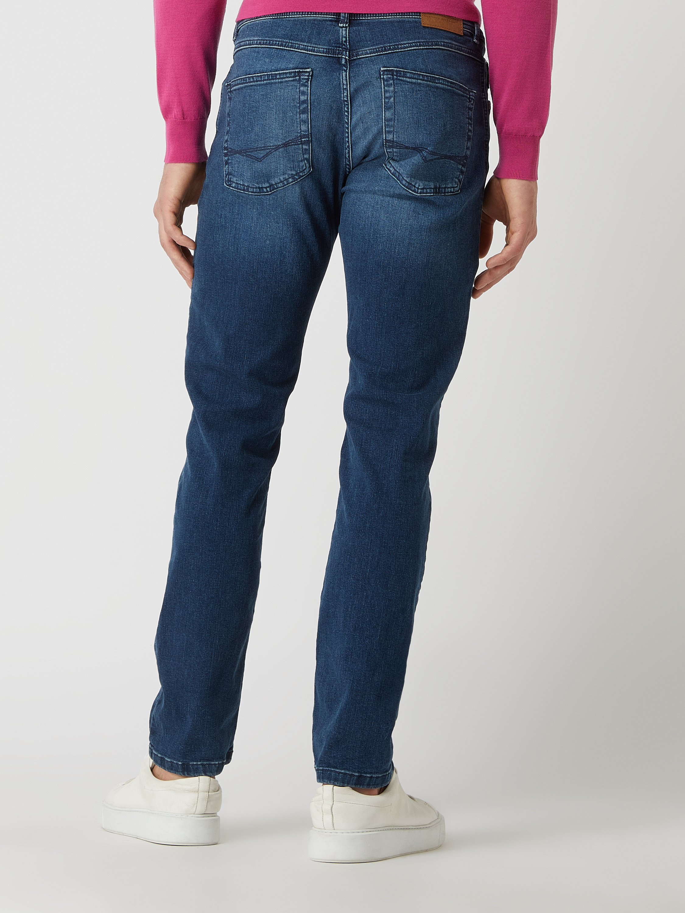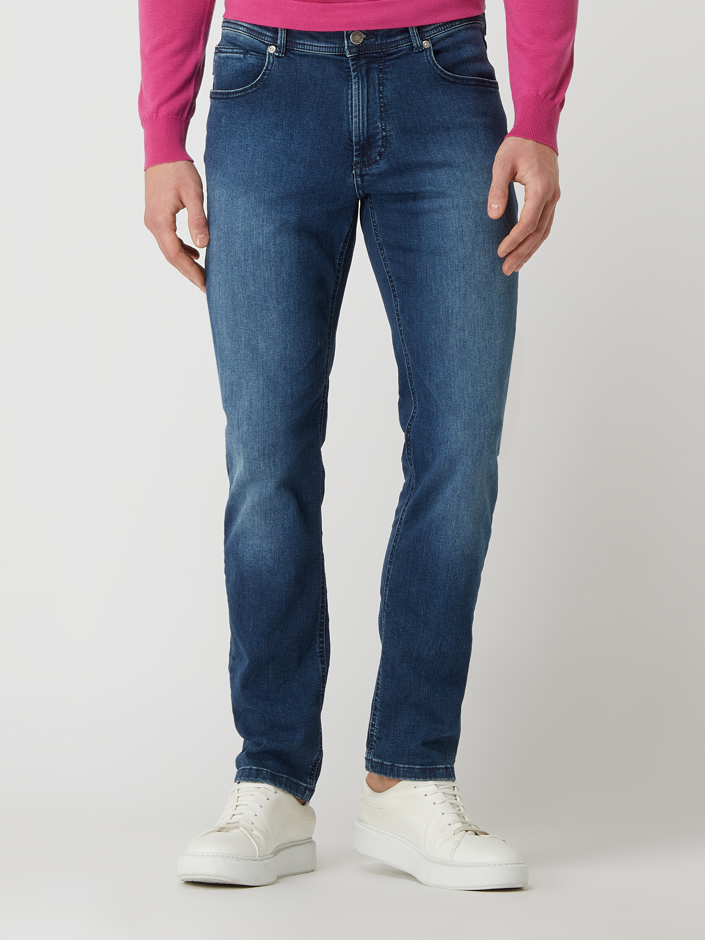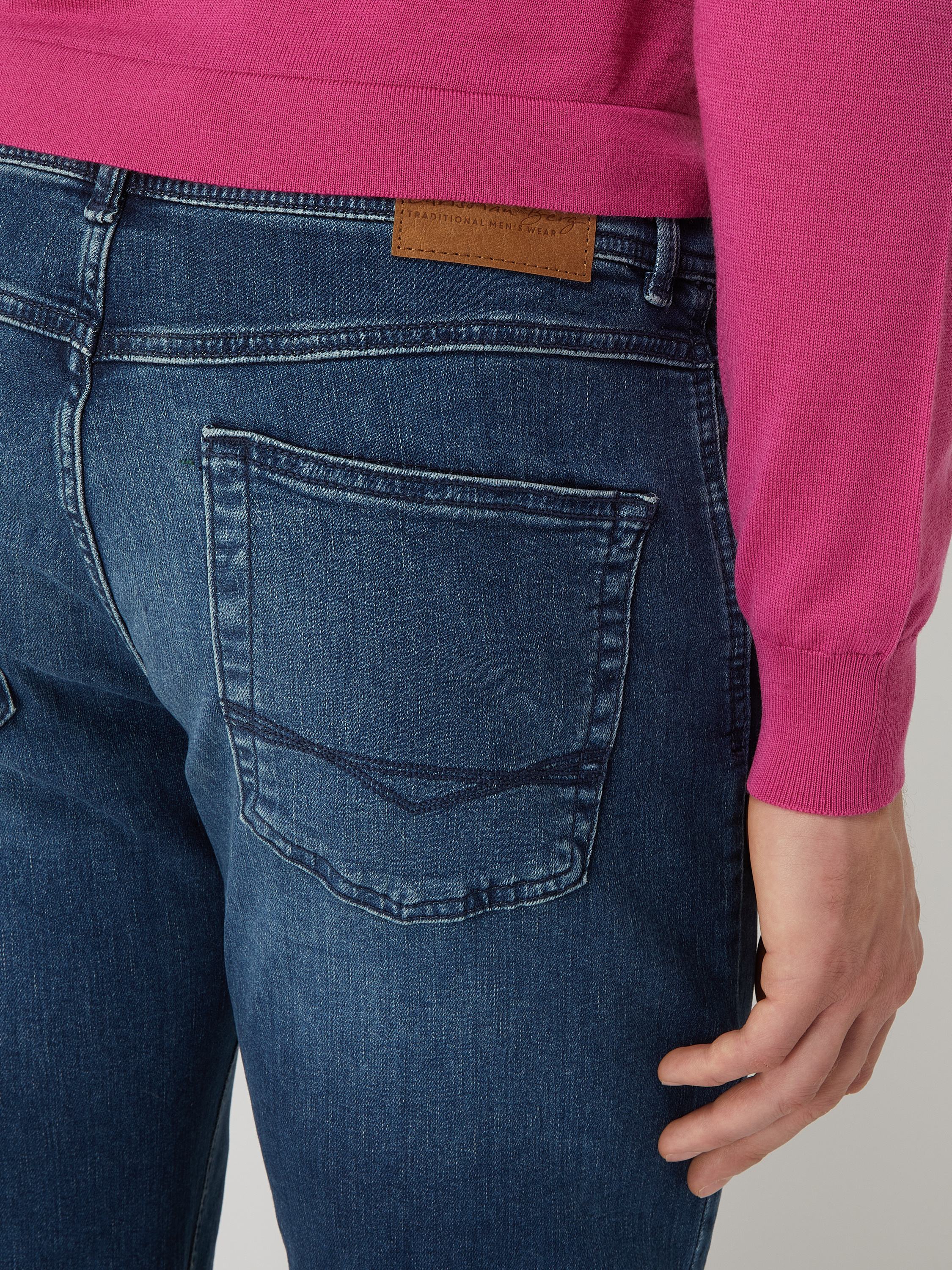 Die Jeans von Christian Berg Men ist aus einem elastischen Baumwoll-Mix gefertigt und im Straight Fit gehalten. Sie zeigt sich im 5-Pocket-Design sowie mit tonalem Brand-Detail.