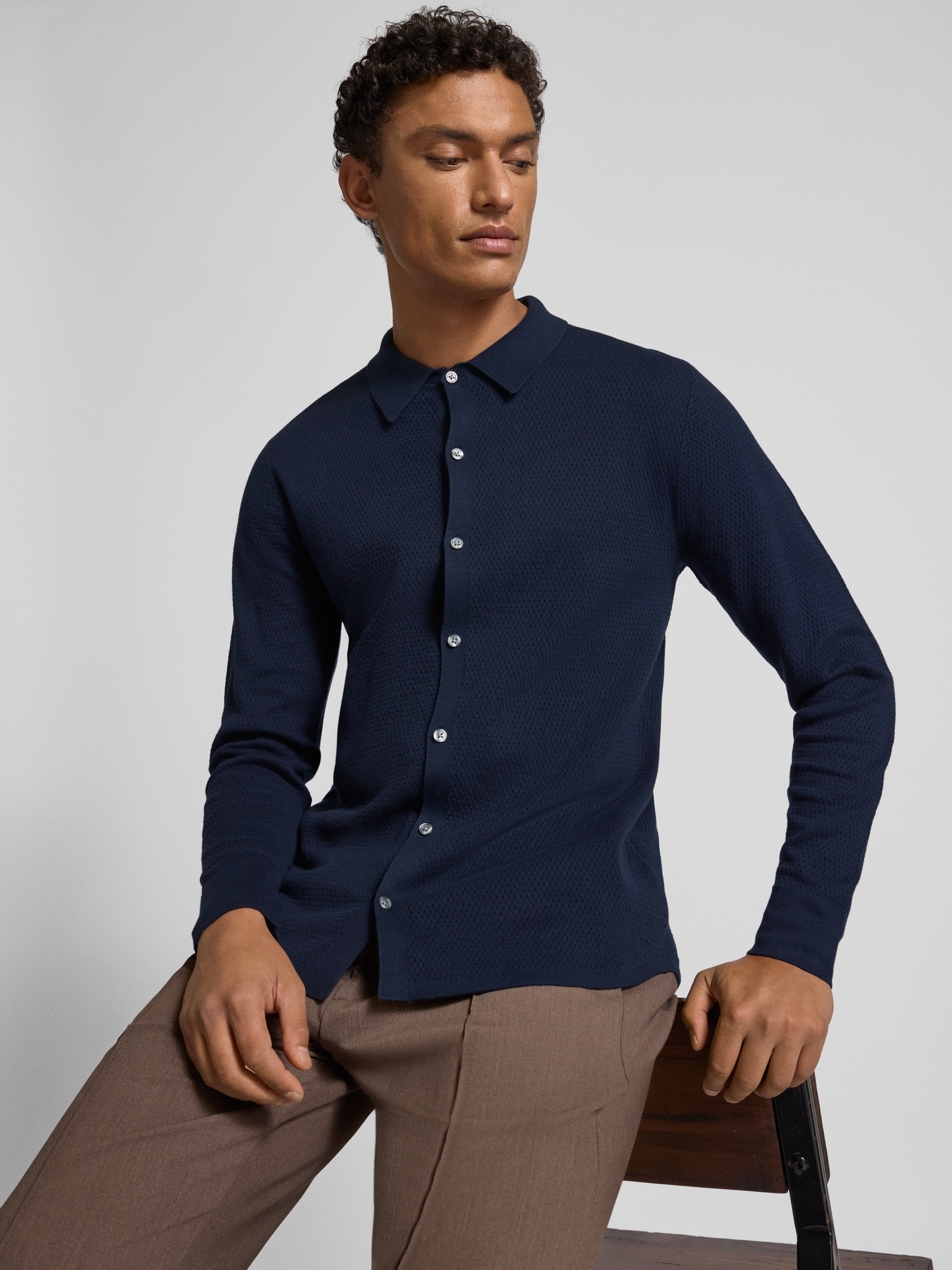 Christian Berg MenStrickjacke mit Knopfleiste in marine