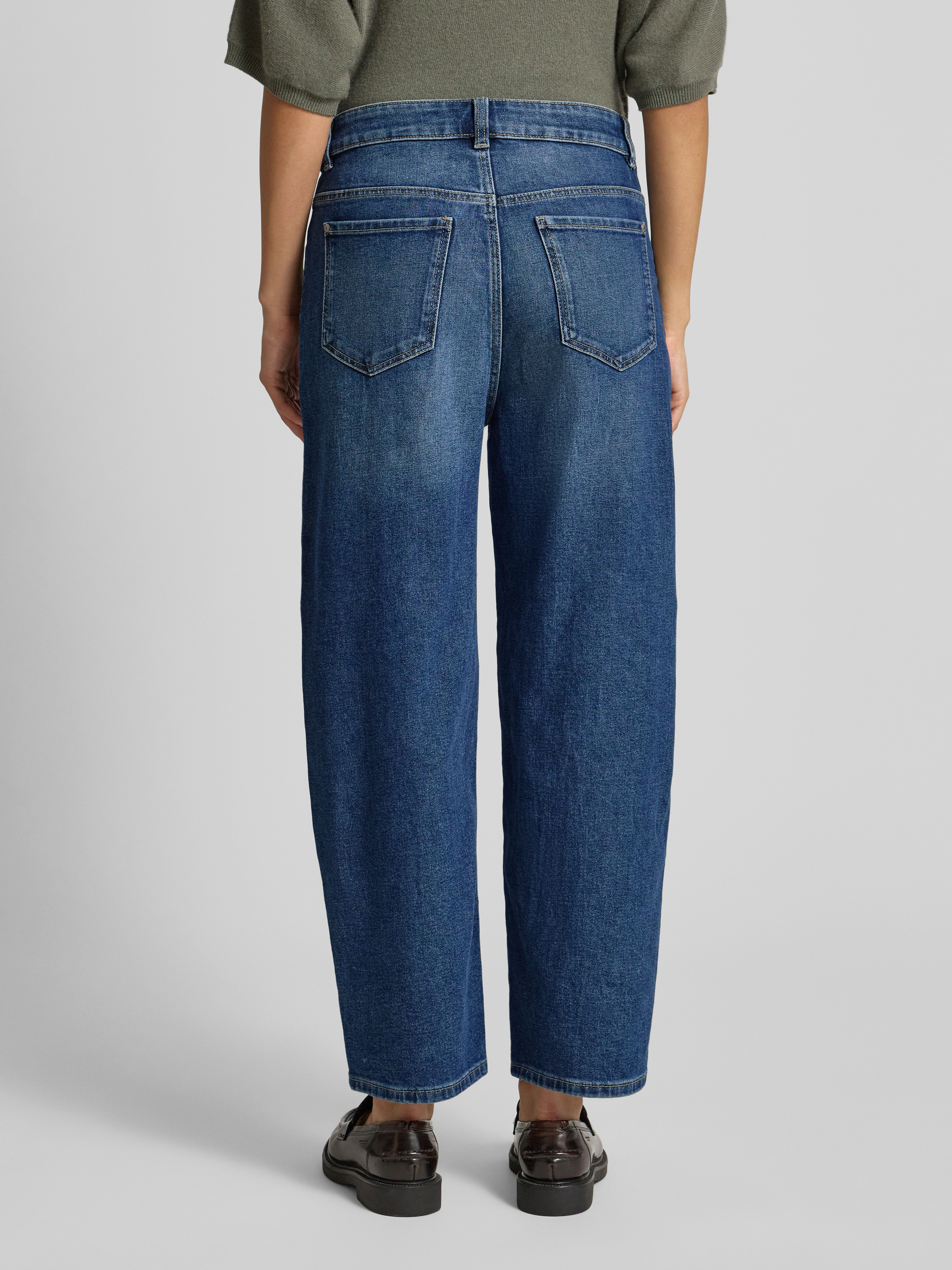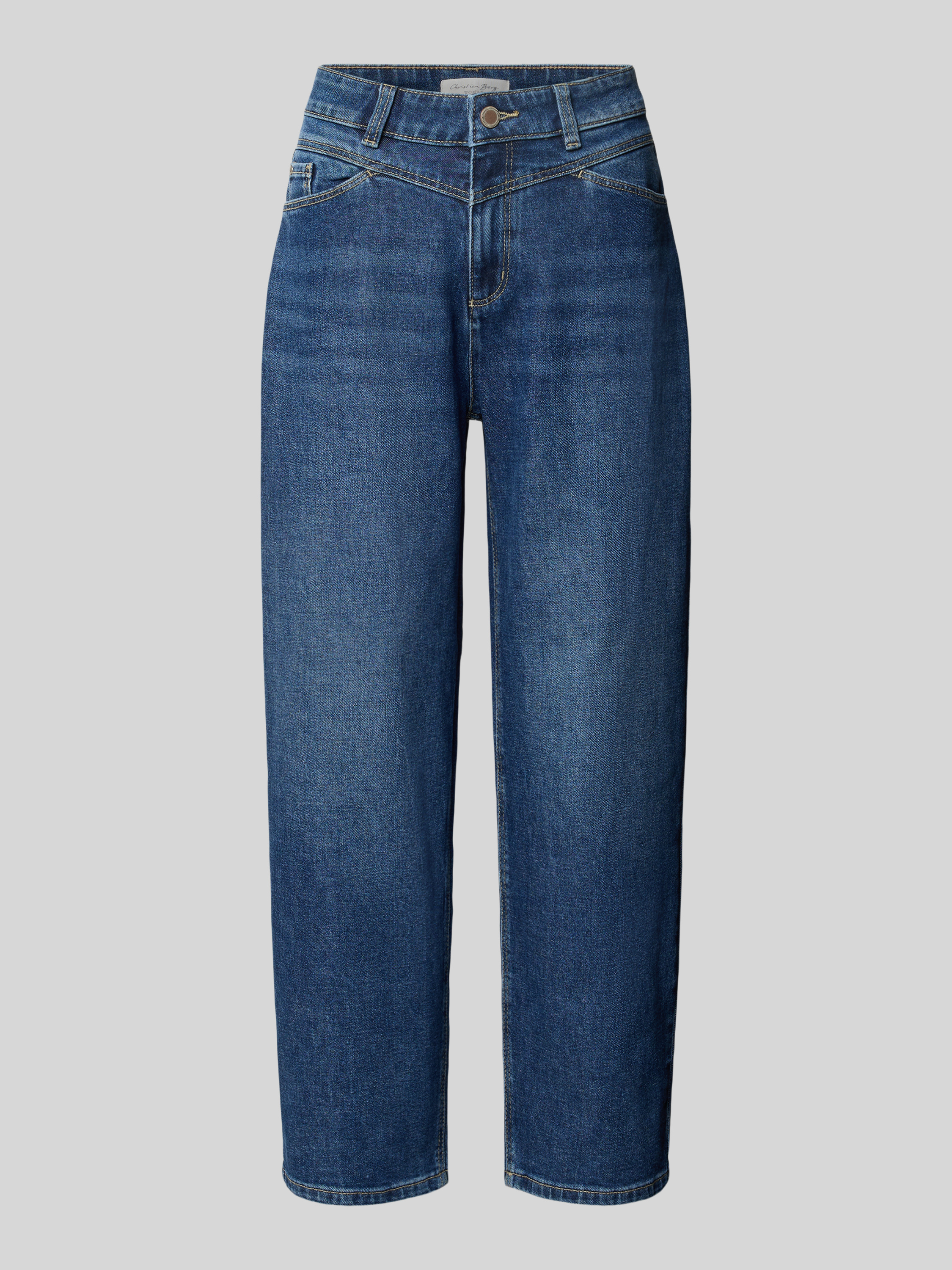 Die Barrel Jeans mit Eingrifftaschen von Christian Berg Woman zeichnet sich durch ihren lockeren Barrel Fit und die verkürzte Länge aus, wodurch Bewegungsfreiheit im Alltag entsteht. Durch den angenehmen Baumwoll-Mix mit Viskose-Anteil liegt das Material weich auf der Haut. Praktische Taschen unterstreichen den funktionalen Charakter.
