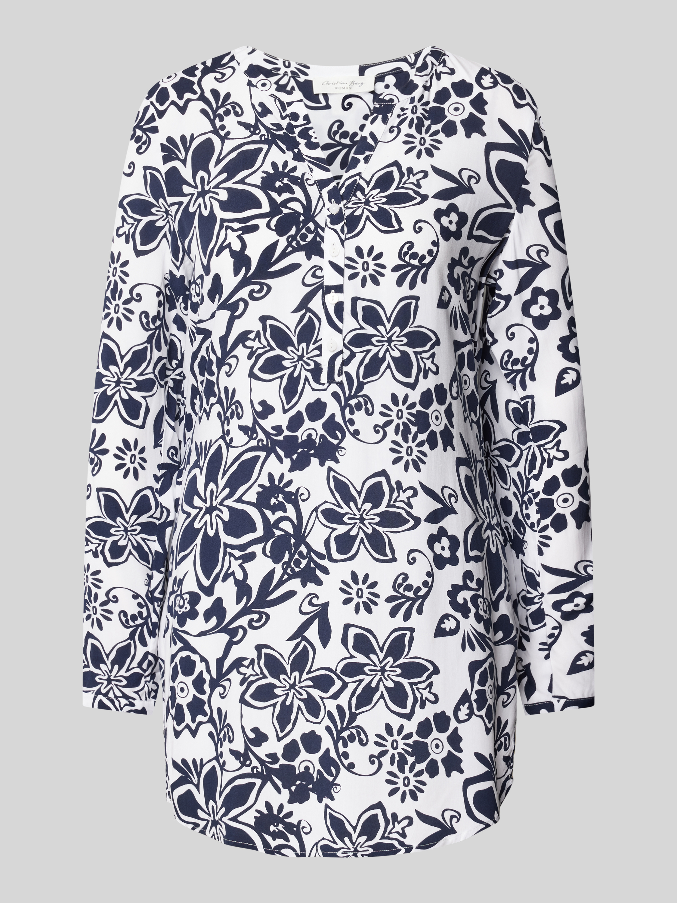 Das Blusenshirt von Christian Berg Woman verbindet elegantes Allover-Muster mit lockerer Passform und einem schmeichelhaften V-Ausschnitt. Lange Ärmel lassen sich praktisch krempeln, was Flexibilität bei wechselnden Temperaturen bietet. Hergestellt aus reiner Viskose, bietet es ein angenehmes Tragegefühl.