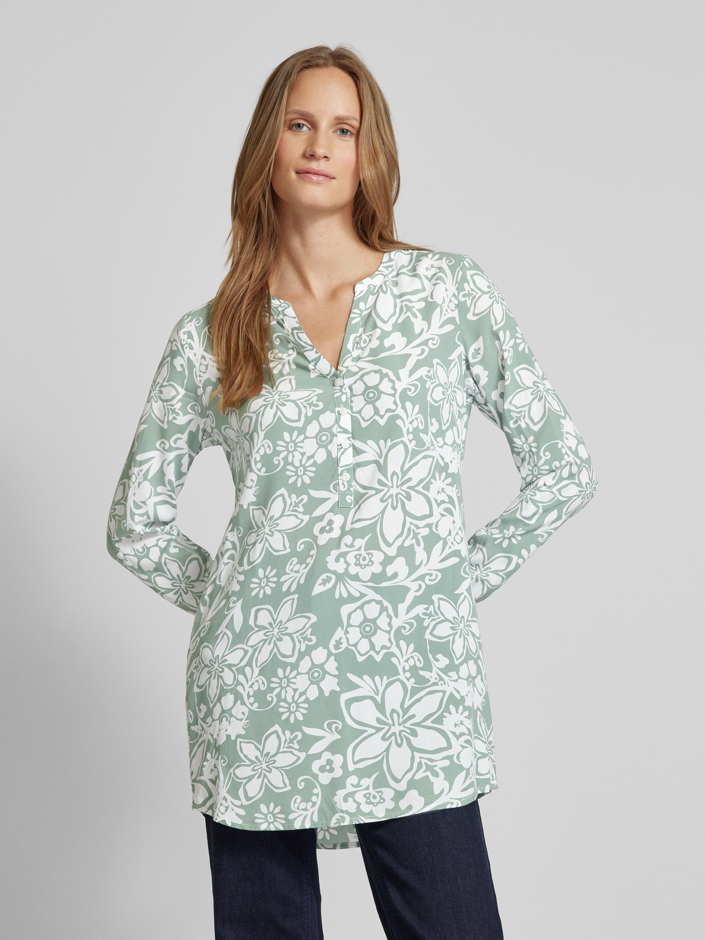 Christian Berg WomanBlusenshirt mit V-Ausschnitt in schilf