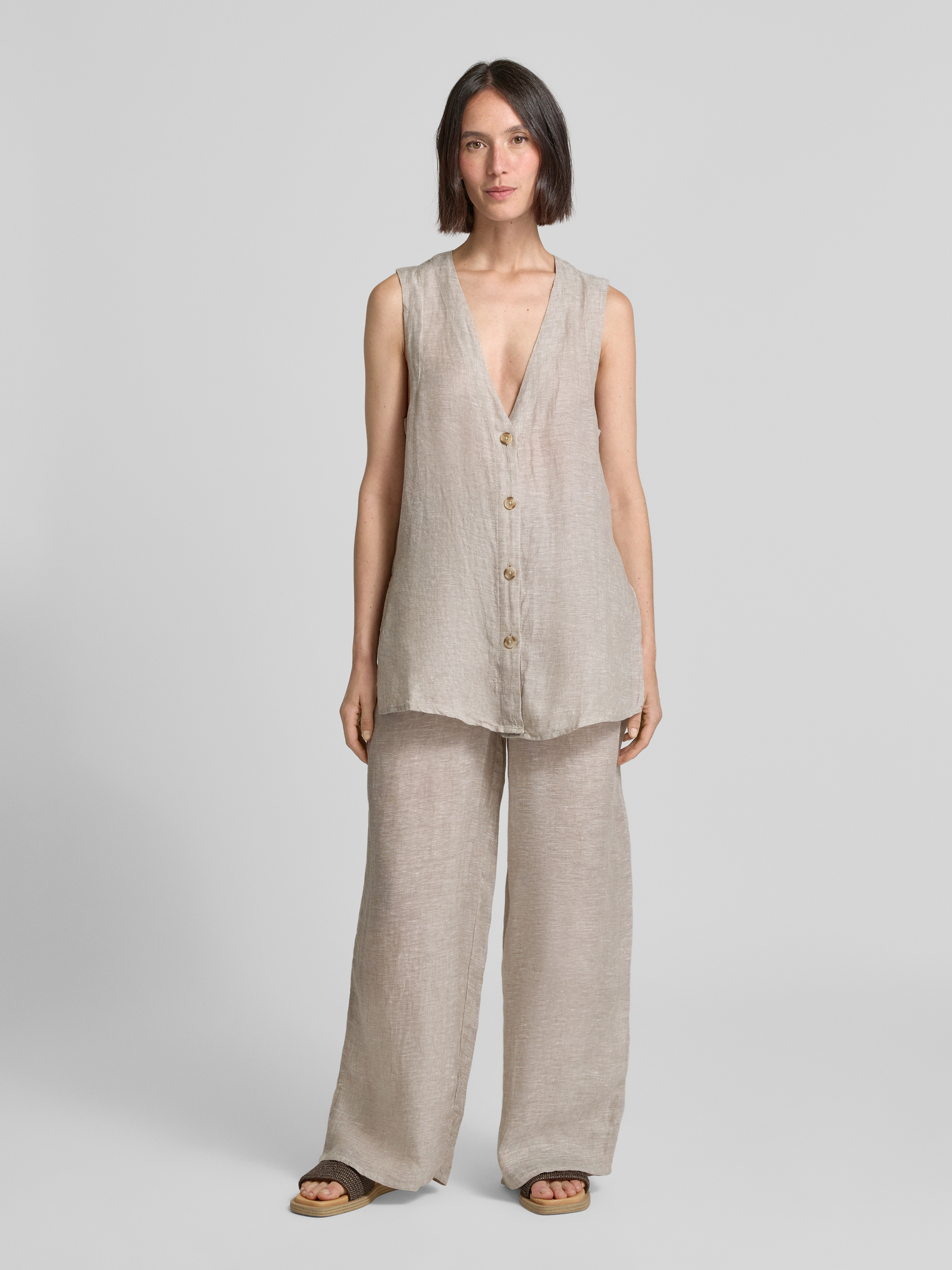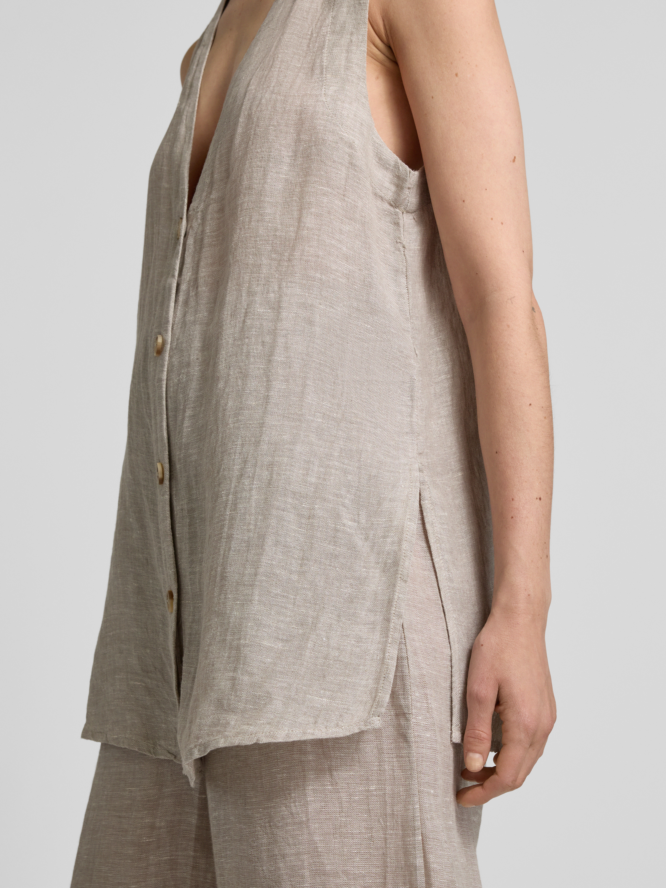 Christian Berg WomanBlusentop aus Leinen mit Knopfleiste in beige