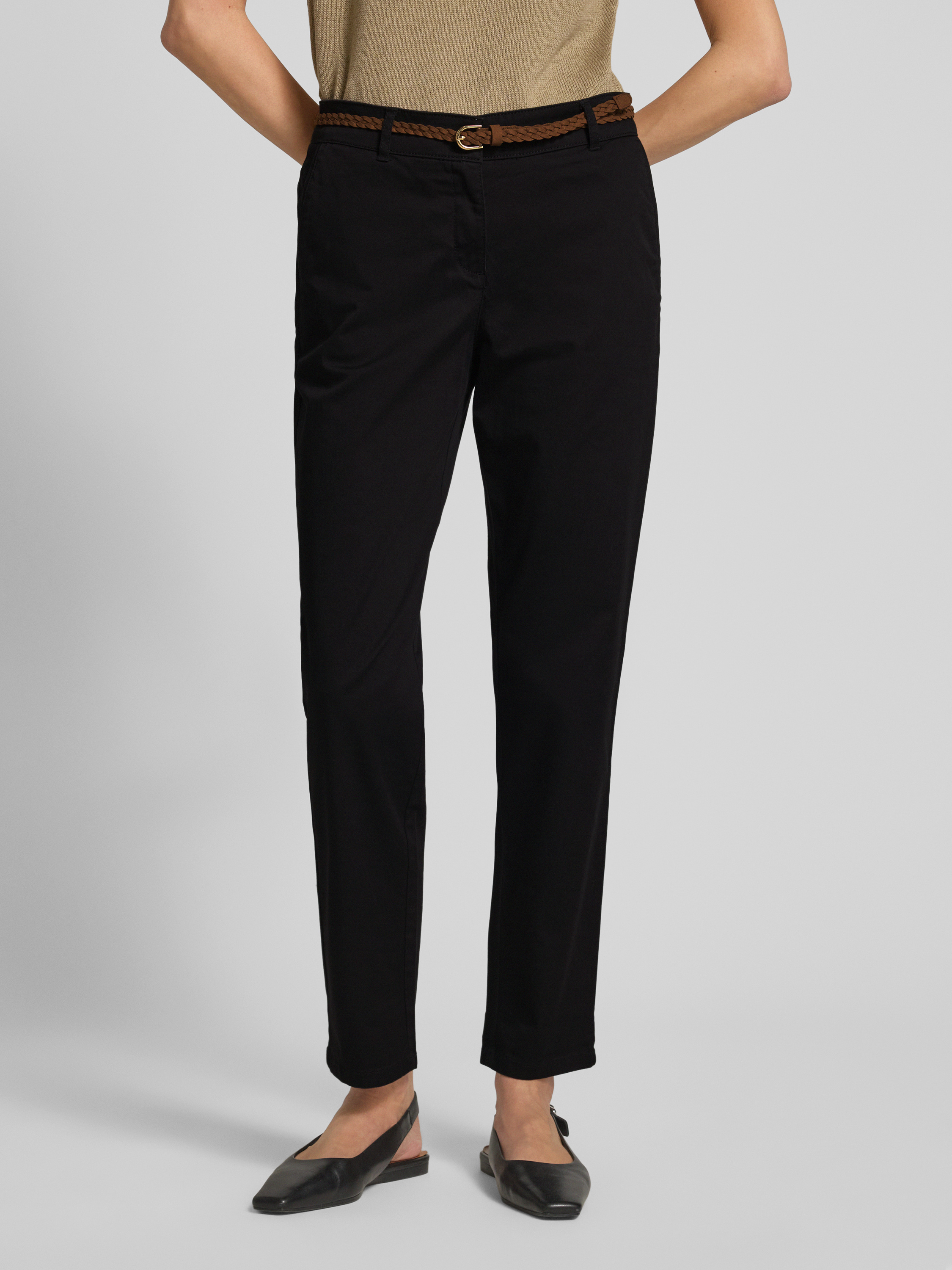 Christian Berg WomanChino mit Paspeltaschen am Gesäß und Gürtel in black