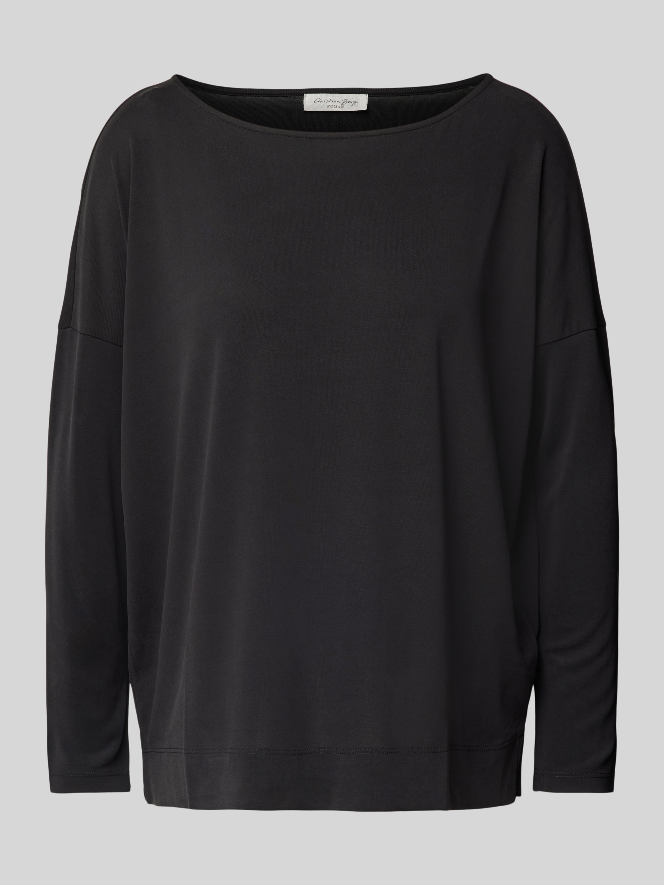 Das Longsleeve von Christian Berg Woman beeindruckt durch seinen lockeren Schnitt und einen eleganten U-Boot-Ausschnitt. Überschnittene Schultern und dezente Seitenschlitze verleihen dem Design eine entspannte Note. Es eignet sich hervorragend für vielseitige Outfits, die sowohl Komfort als auch Stil schätzen.