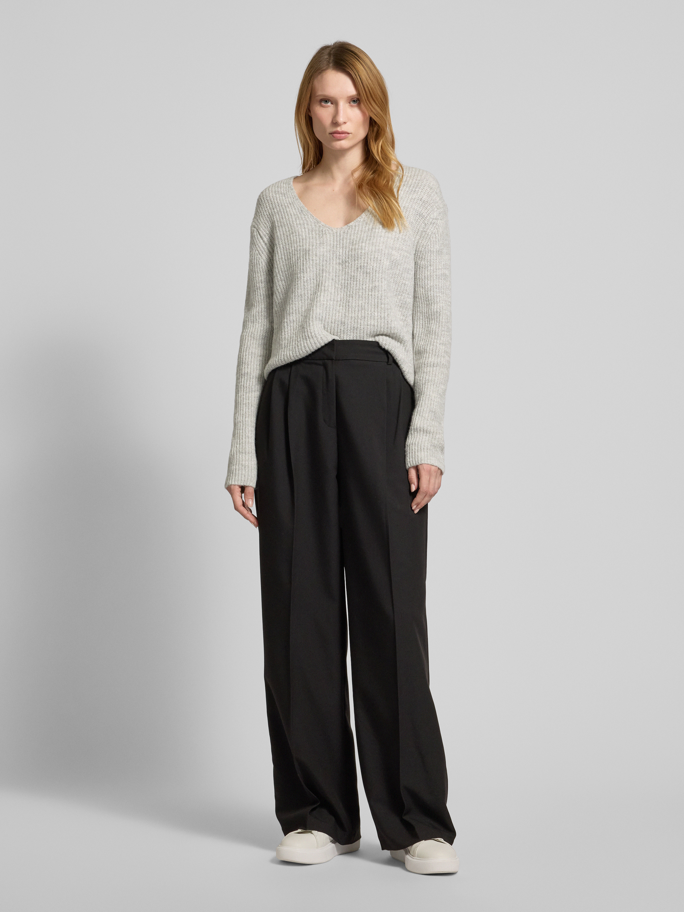 Christian Berg WomanRegular Fit Strickpullover mit Woll-Anteil in hellgrau melange