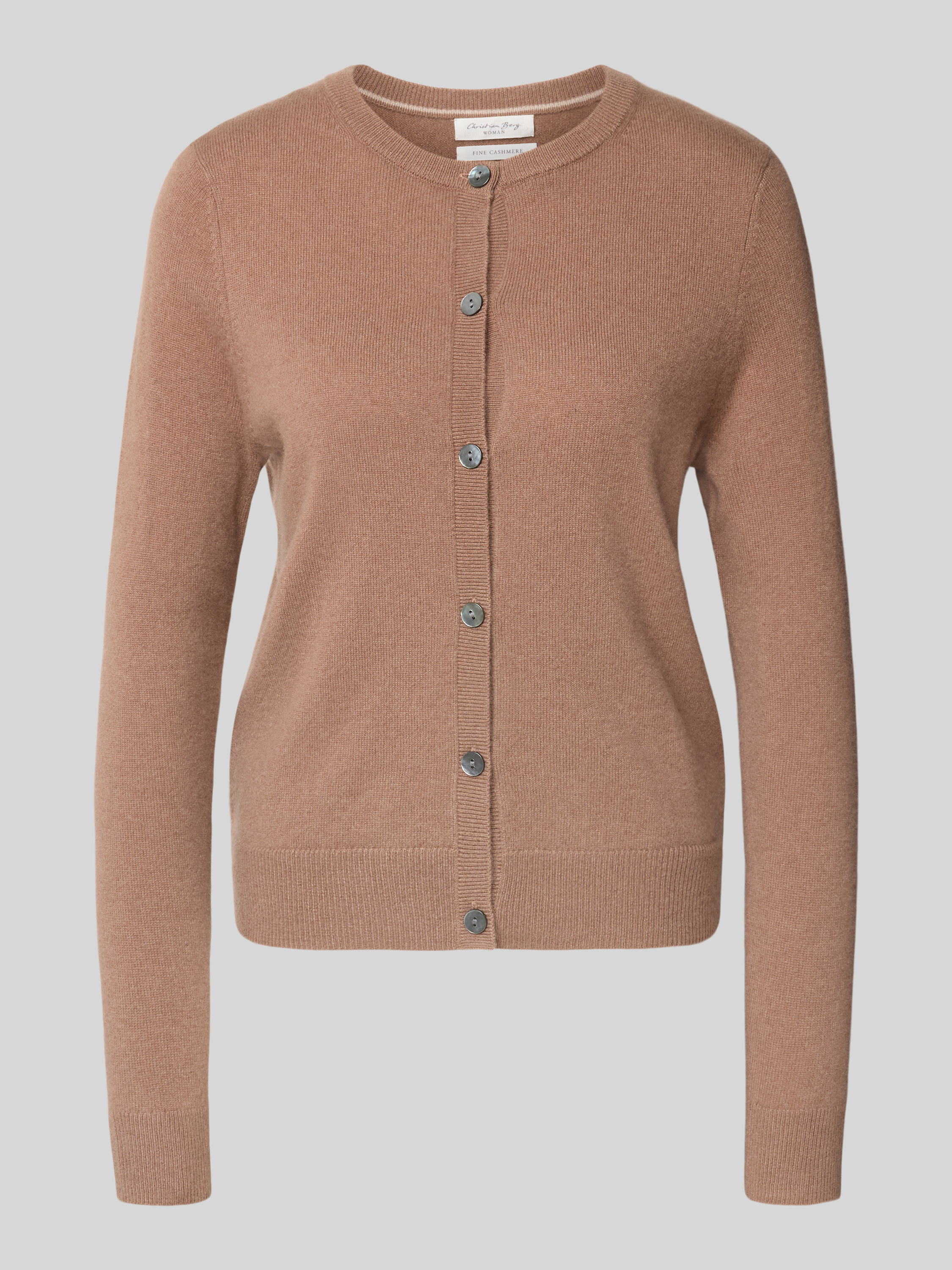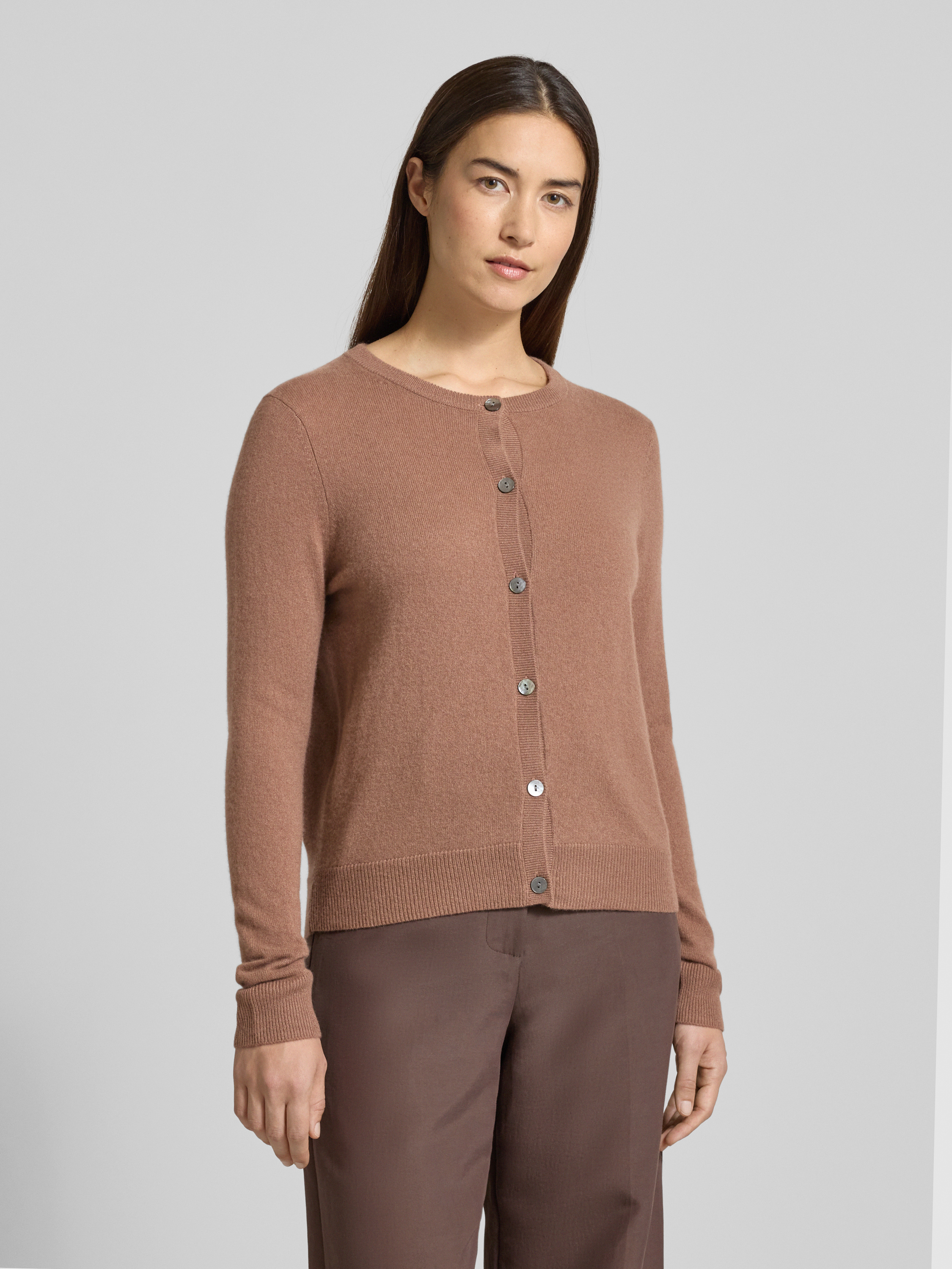 Christian Berg WomanStrickjacke aus Kaschmir mit Rundhalsausschnitt in hazel