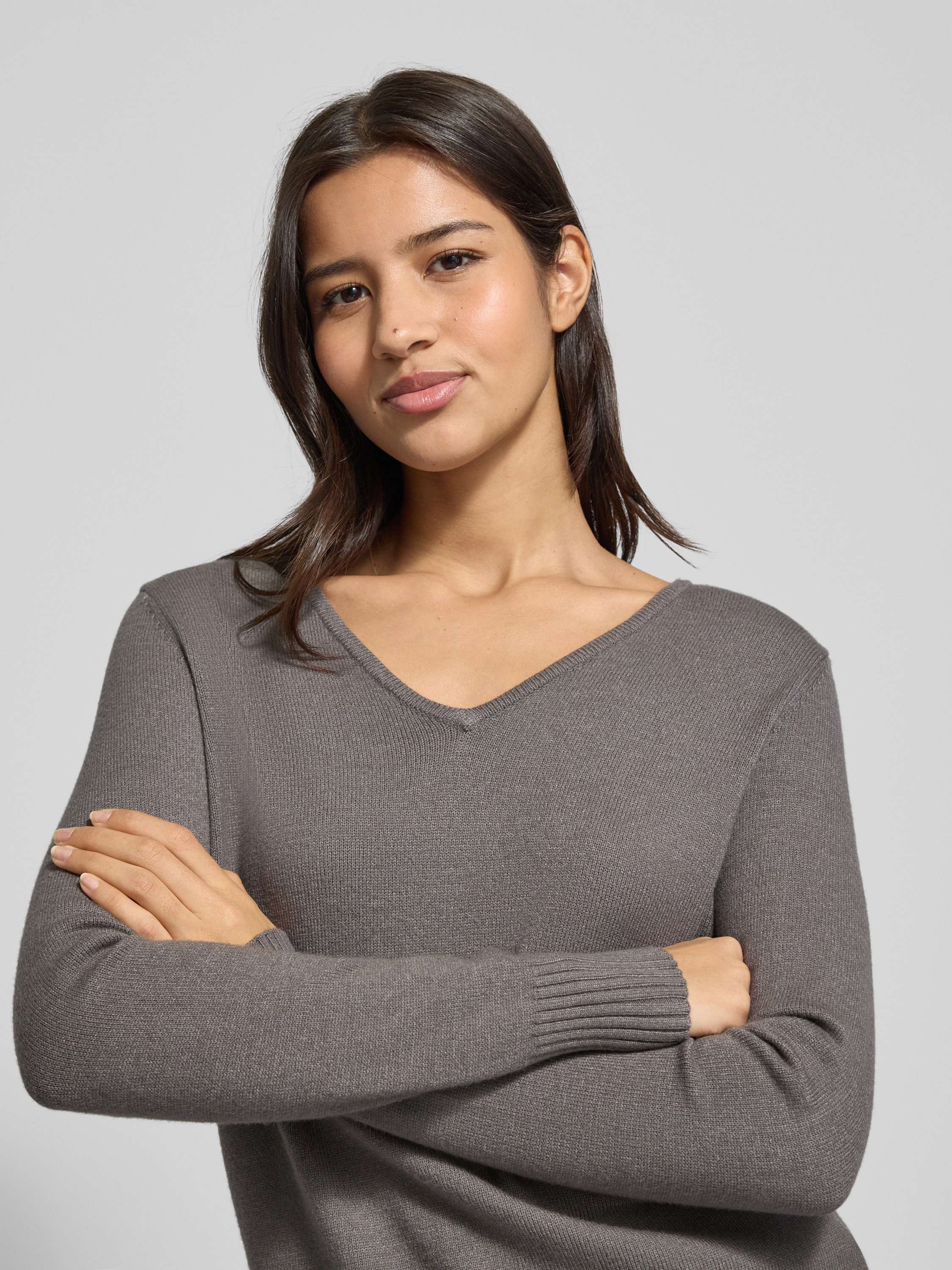 • Christian Berg Woman Strickpullover aus Viskose-Mix mit V-Ausschnitt Silber Melange