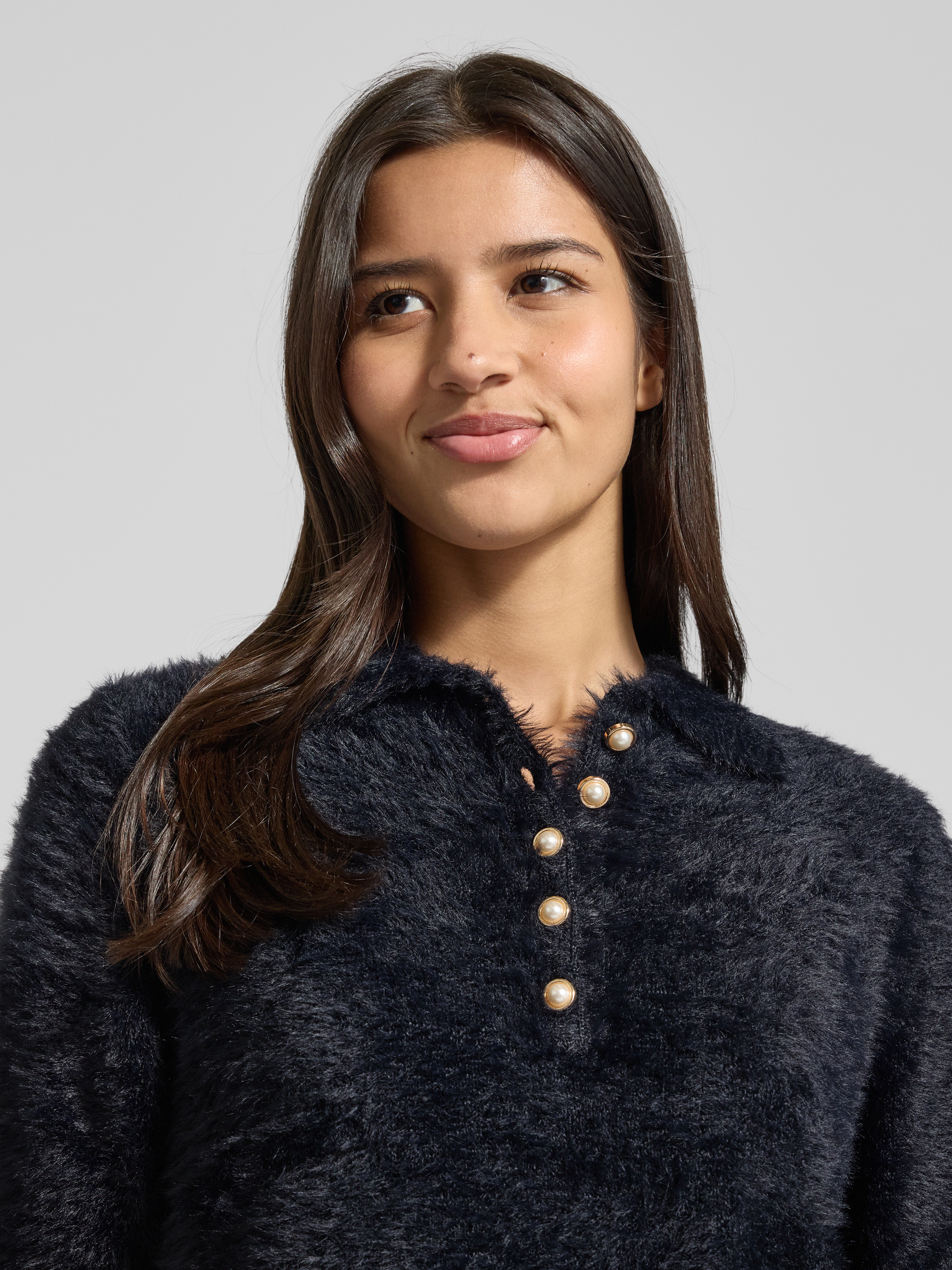 Christian Berg WomanStrickpullover mit 1/2-Arm und Knopfleiste in black