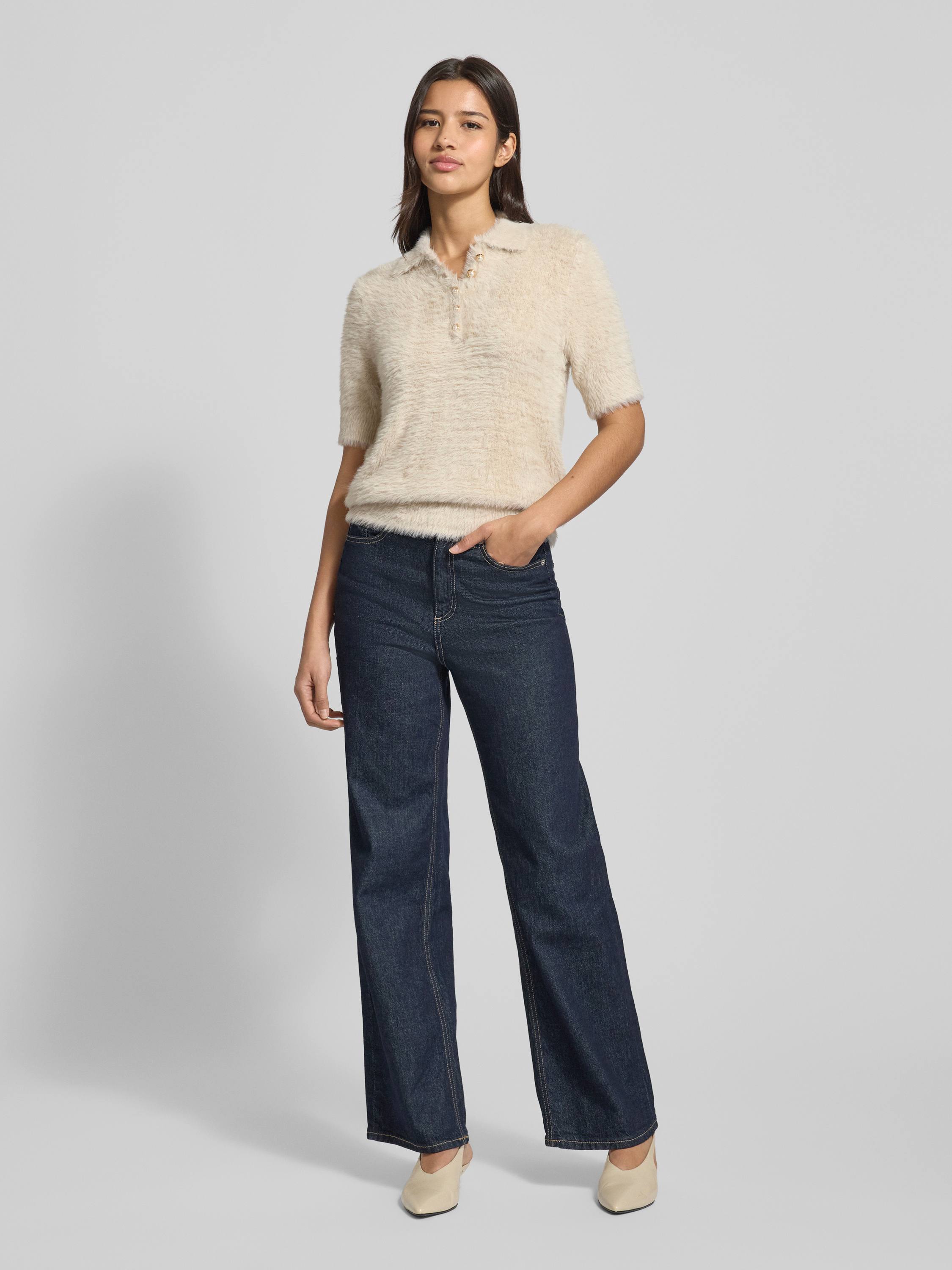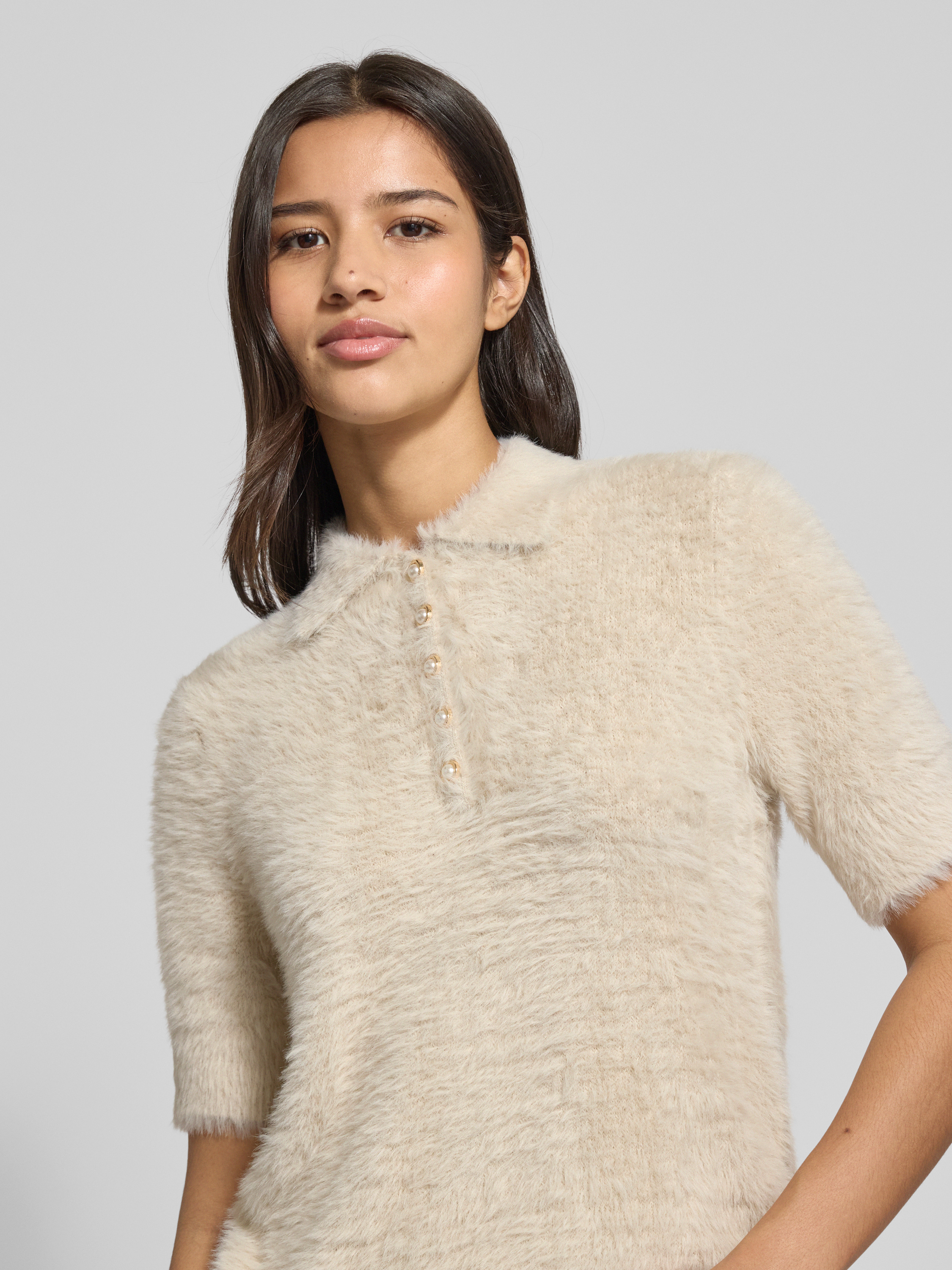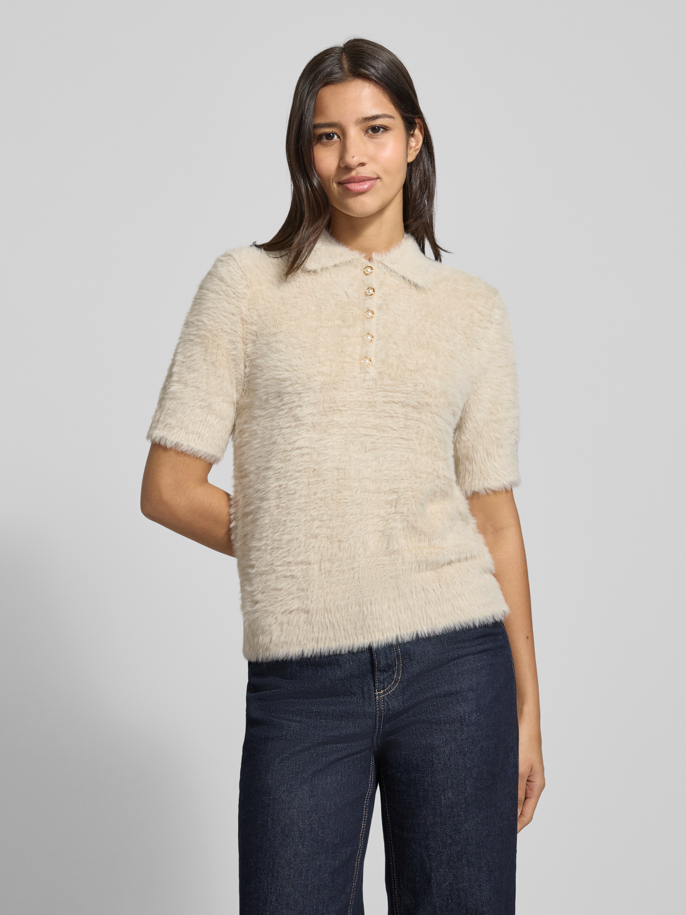 Christian Berg WomanStrickpullover mit 1/2-Arm und Knopfleiste in sand