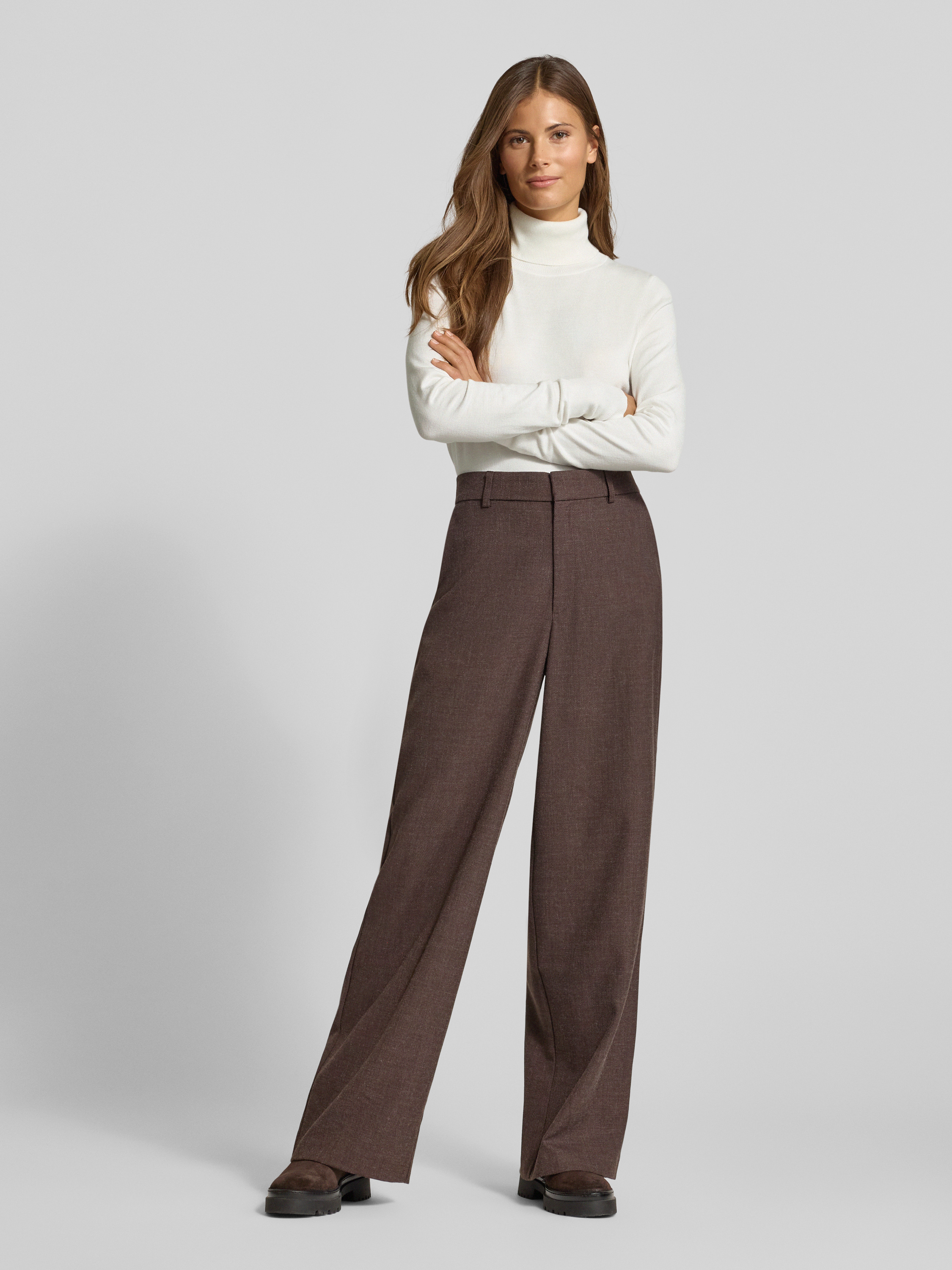 Der Damen Strickpullover von Christian Berg Woman wirkt durch seinen lockeren Schnitt angenehm leger und lässt sich vielseitig kombinieren. Ein Rollkragen sorgt an kühleren Tagen für angenehme Wärme, während gerippte Abschlüsse dem Pullover eine dezente, moderne Note verleihen. Das Material aus Viskose-Mix liegt weich auf der Haut.