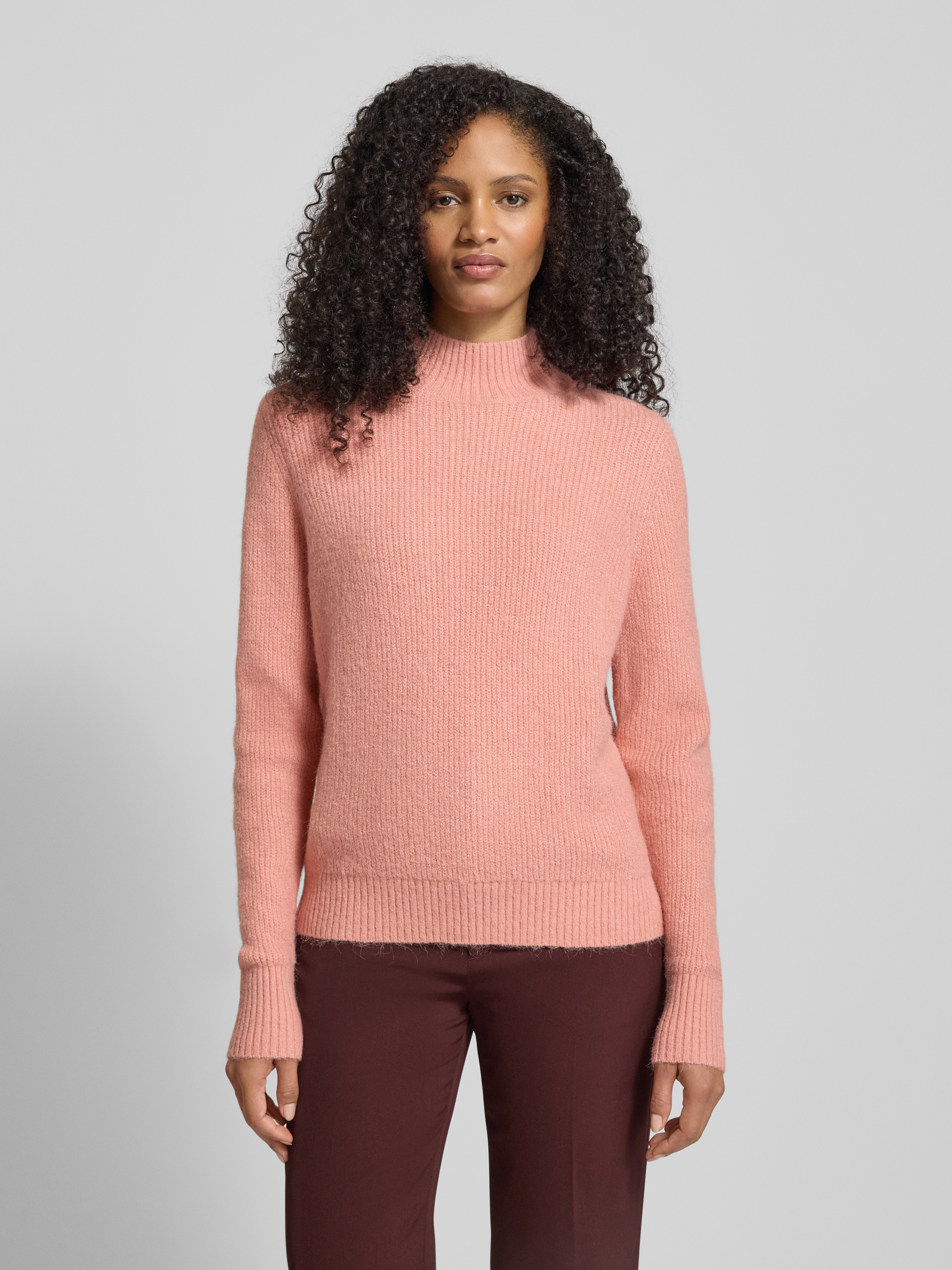 Der Damenpullover von Christian Berg Woman zeigt sich im Regular Fit und sorgt mit seinem Woll-Anteil für ein angenehmes Tragegefühl. Durch den Stehkragen entsteht ein dezenter Akzent, der den Look ruhig abrundet. So eignet sich das Modell für vielseitige Kombinationen im Alltag.