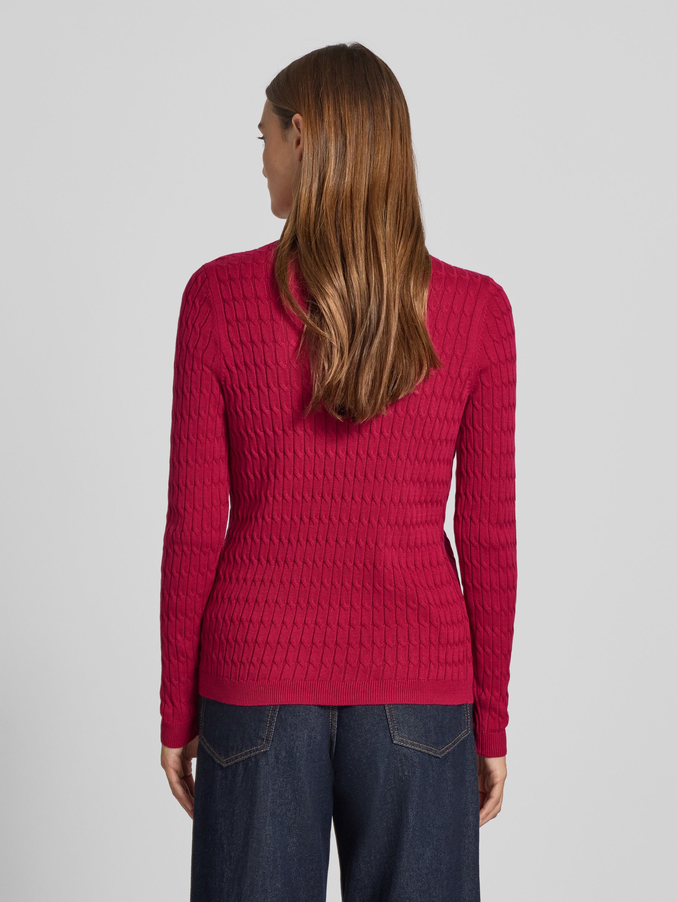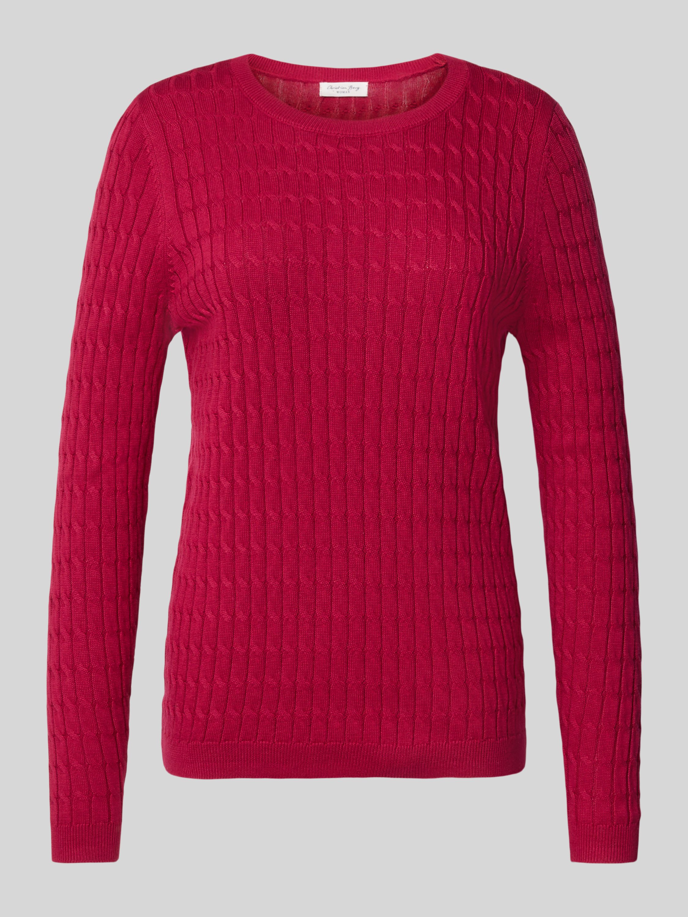 Der Strickpullover mit Zopfmuster von Christian Berg Woman schmiegt sich durch den eng anliegenden Schnitt angenehm an den Körper an. Dank des Baumwoll-Mix fühlt sich das Material weich auf der Haut an und sorgt für ein angenehmes Tragegefühl. Durch den klassischen Rundhalsausschnitt lässt sich der Pullover vielseitig kombinieren.