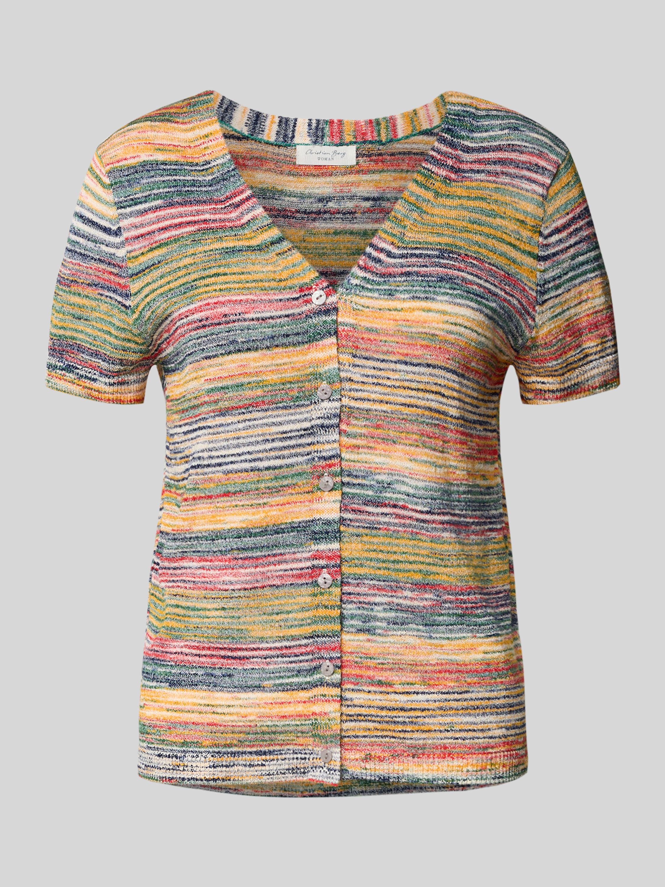 Das Strickshirt von Christian Berg Woman kombiniert einen angenehmen Viskose-Mix mit einem klassischen Regular Fit, der für eine bequeme Passform sorgt. Der V-Ausschnitt verleiht dem Design eine feminine Note, während die Knopfleiste dezente Akzente setzt. Ein vielseitiges Kleidungsstück für jeden Tag.