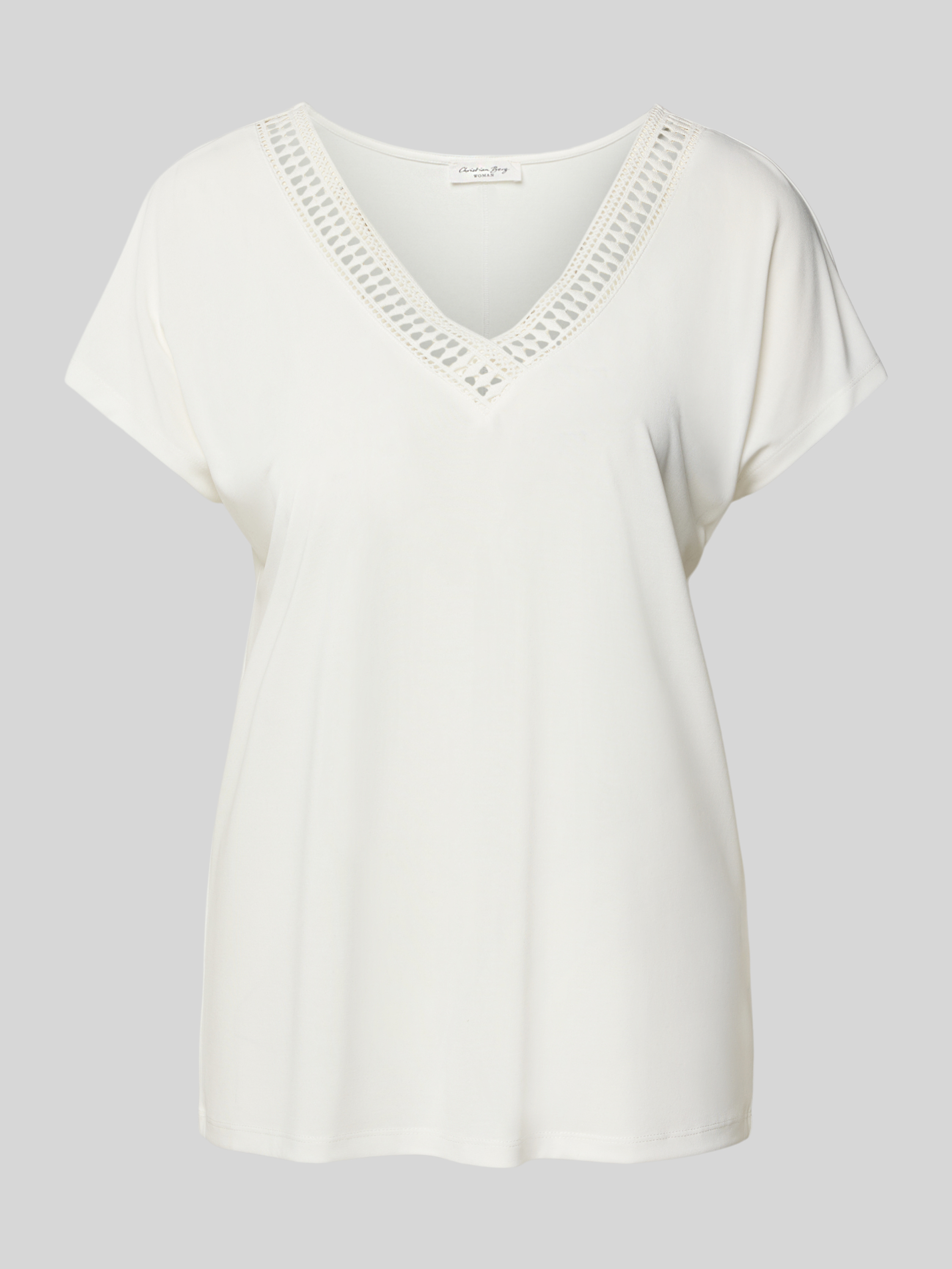 Christian Berg WomanT-Shirt aus Modal-Mix mit V-Ausschnitt in offwhite