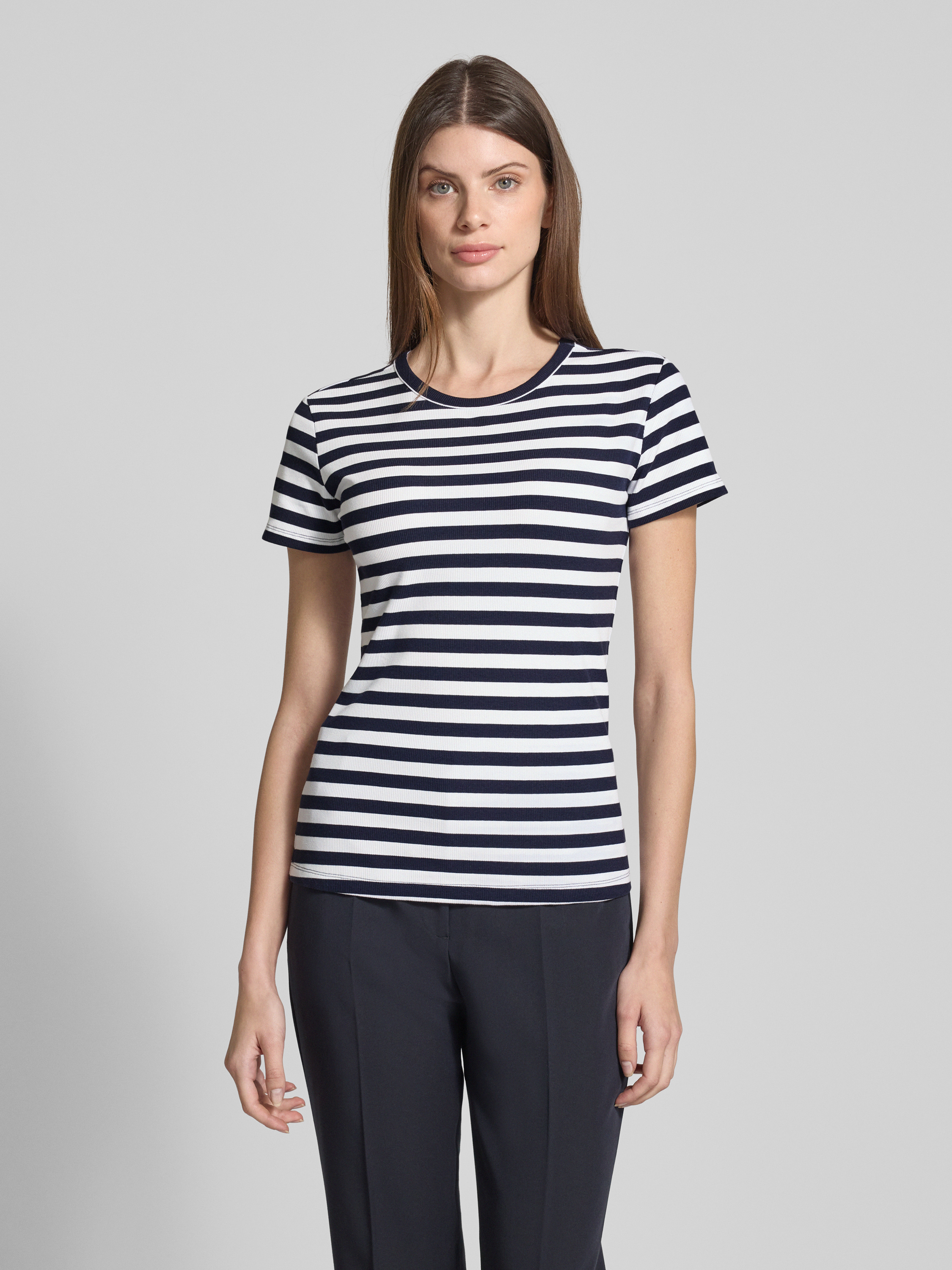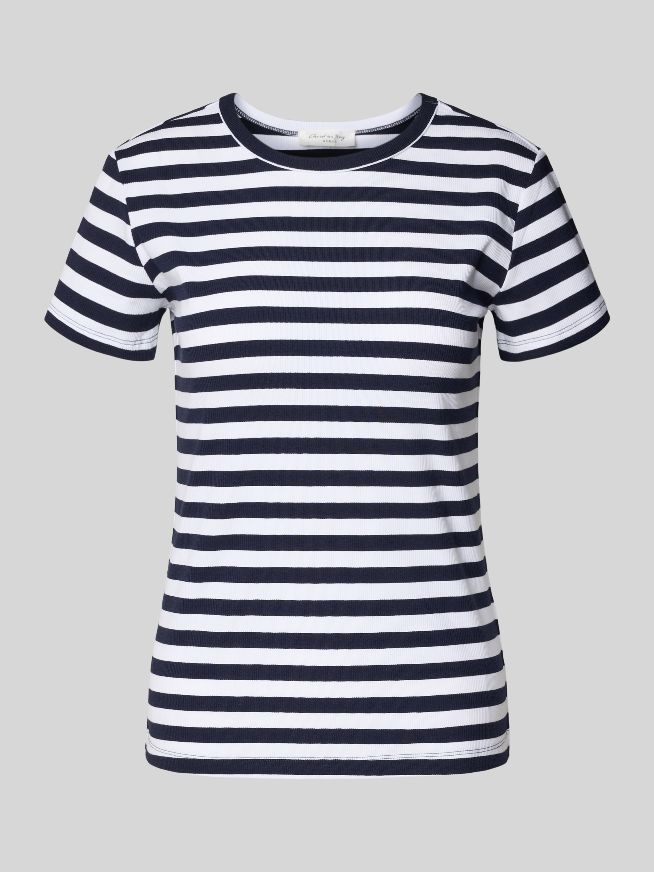 Christian Berg WomanT-Shirt in Ripp-Optik mit Rundhalsausschnitt in dunkelblau