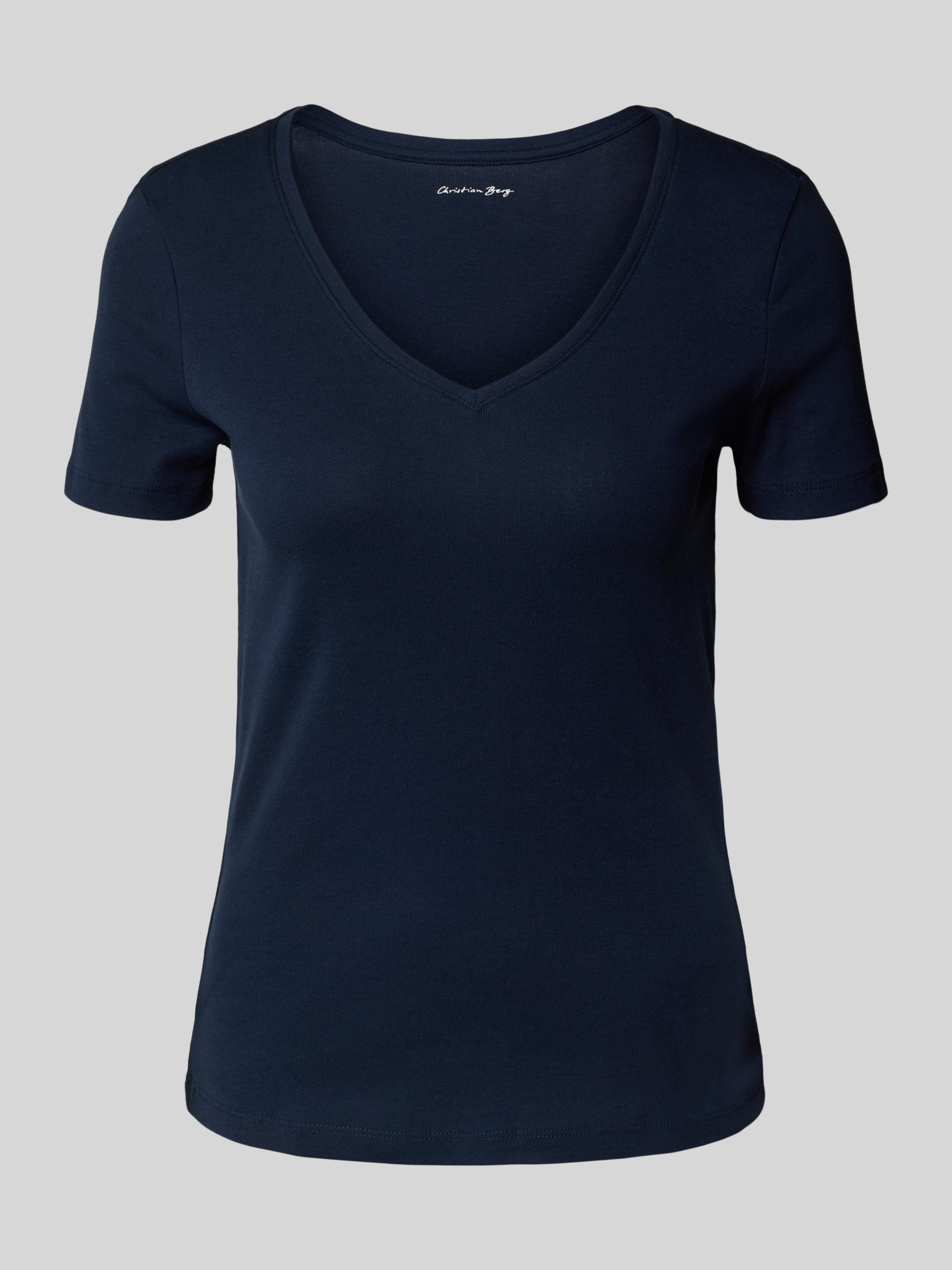 Christian Berg WomanT-Shirt mit geripptem V-Ausschnitt in dunkelblau