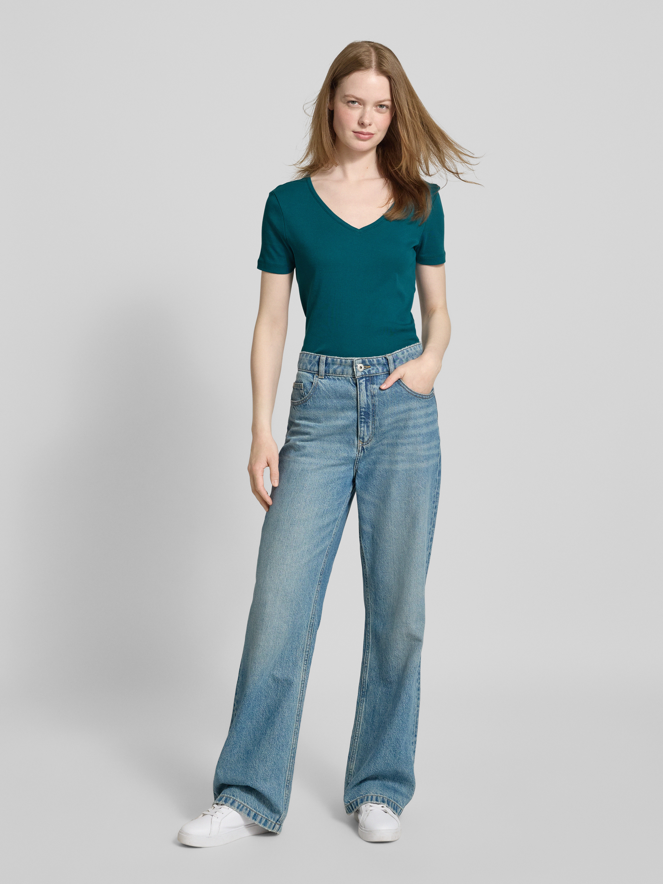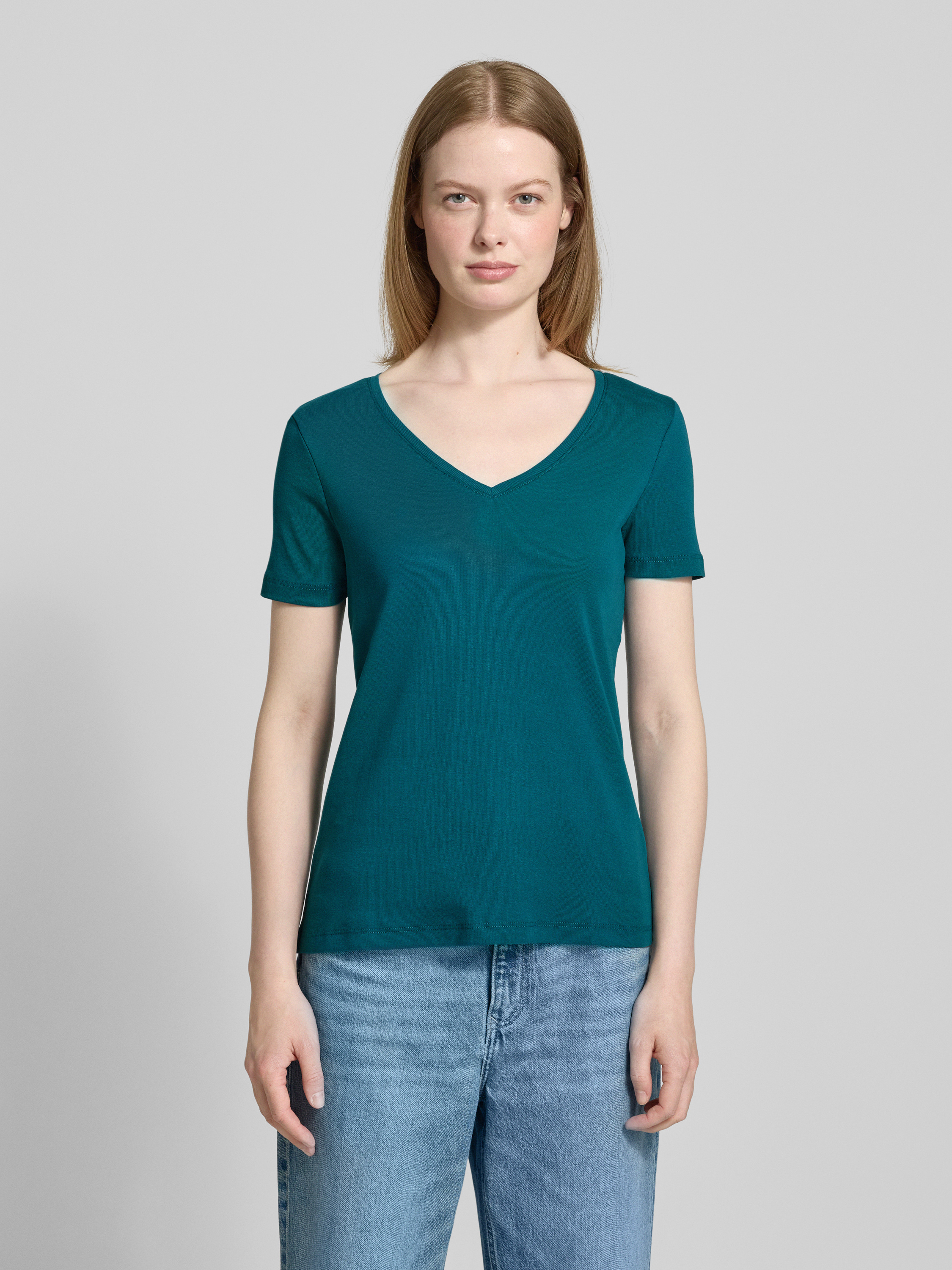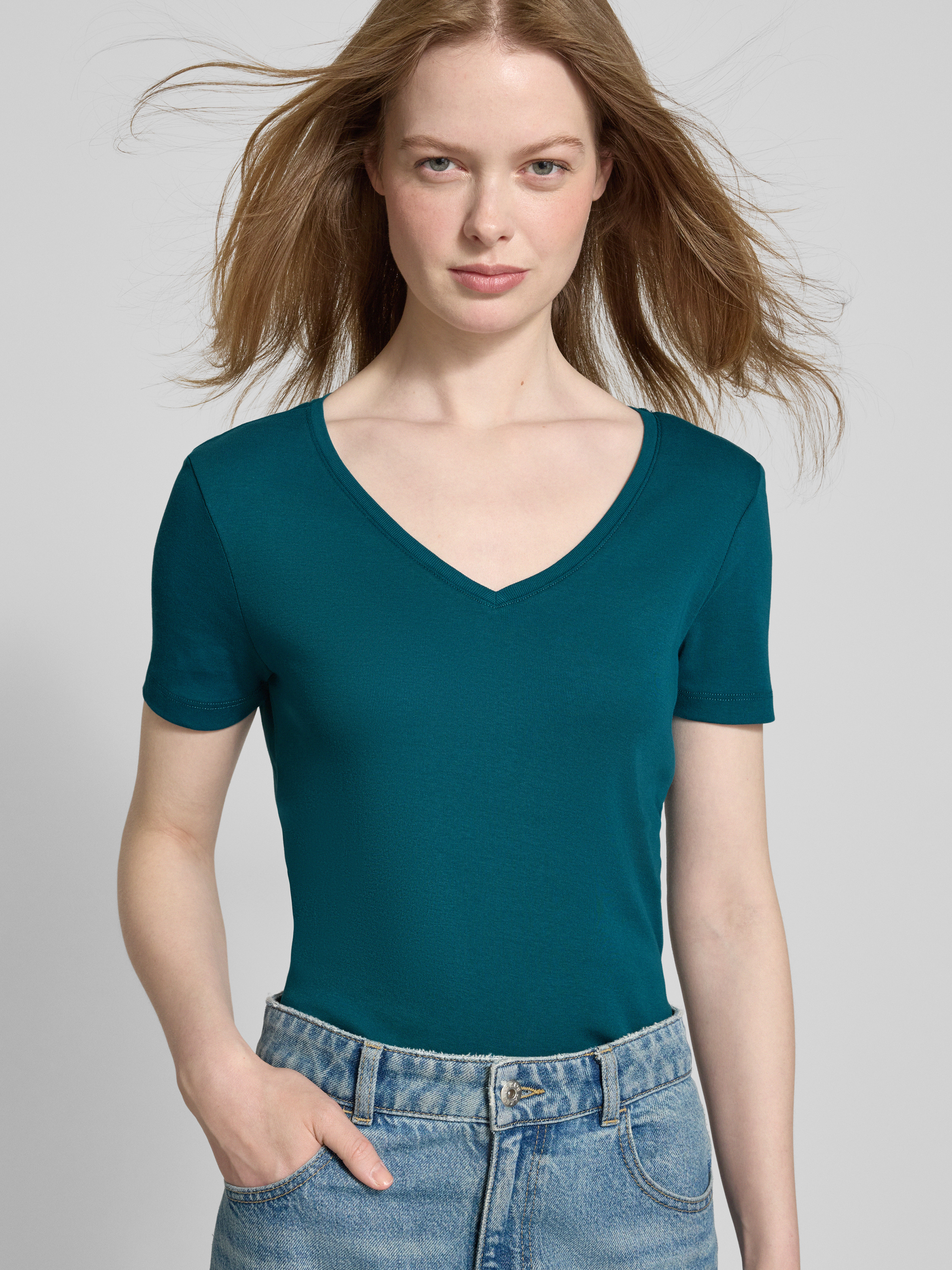 Christian Berg WomanT-Shirt mit geripptem V-Ausschnitt in petrol