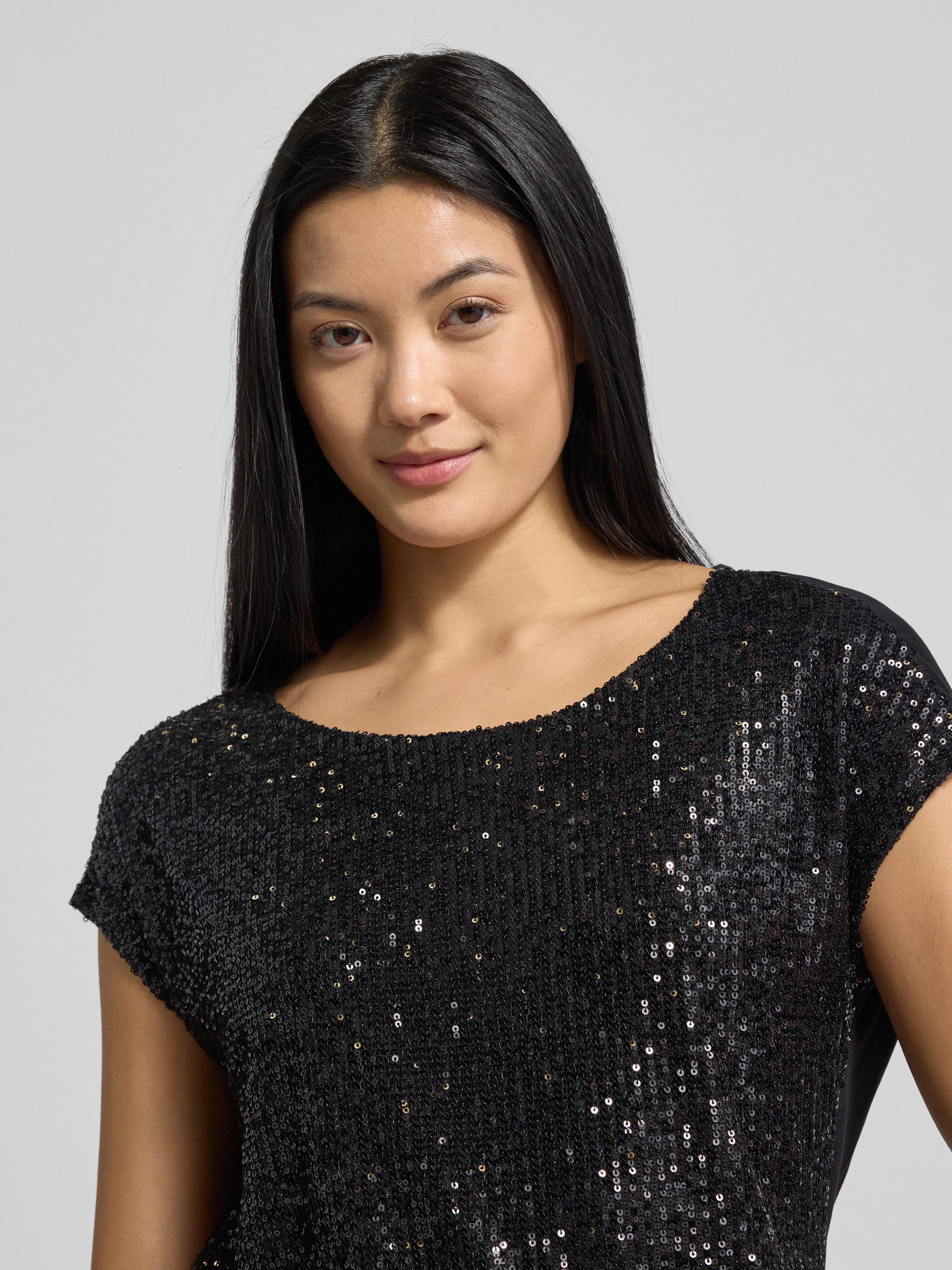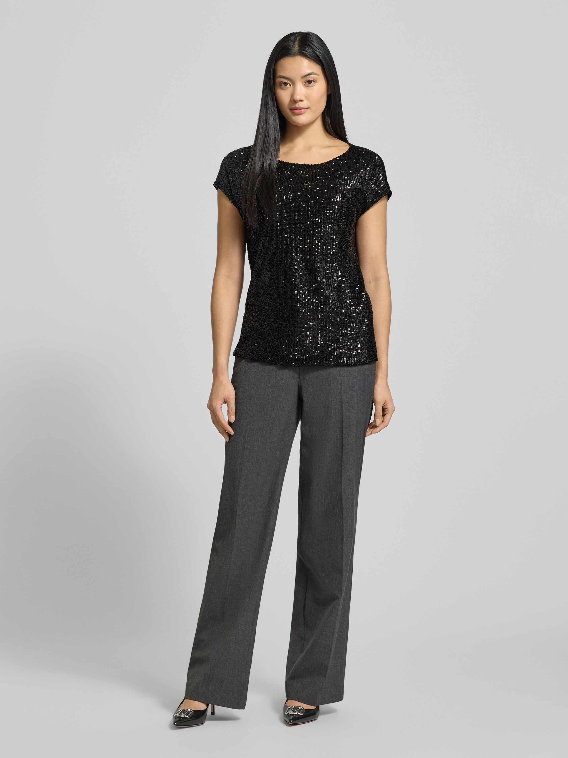 Das Damen T-Shirt von Christian Berg Woman zeichnet sich durch einen angenehm weichen Material-Mix mit Stretch-Anteil aus, wodurch es sich bequem dem Körper anpasst. Der Regular Fit und der klassische Rundhalsausschnitt sorgen für ein unkompliziertes Tragegefühl. Ein Paillettenbesatz verleiht dem Shirt eine dezente, abwechslungsreiche Note.