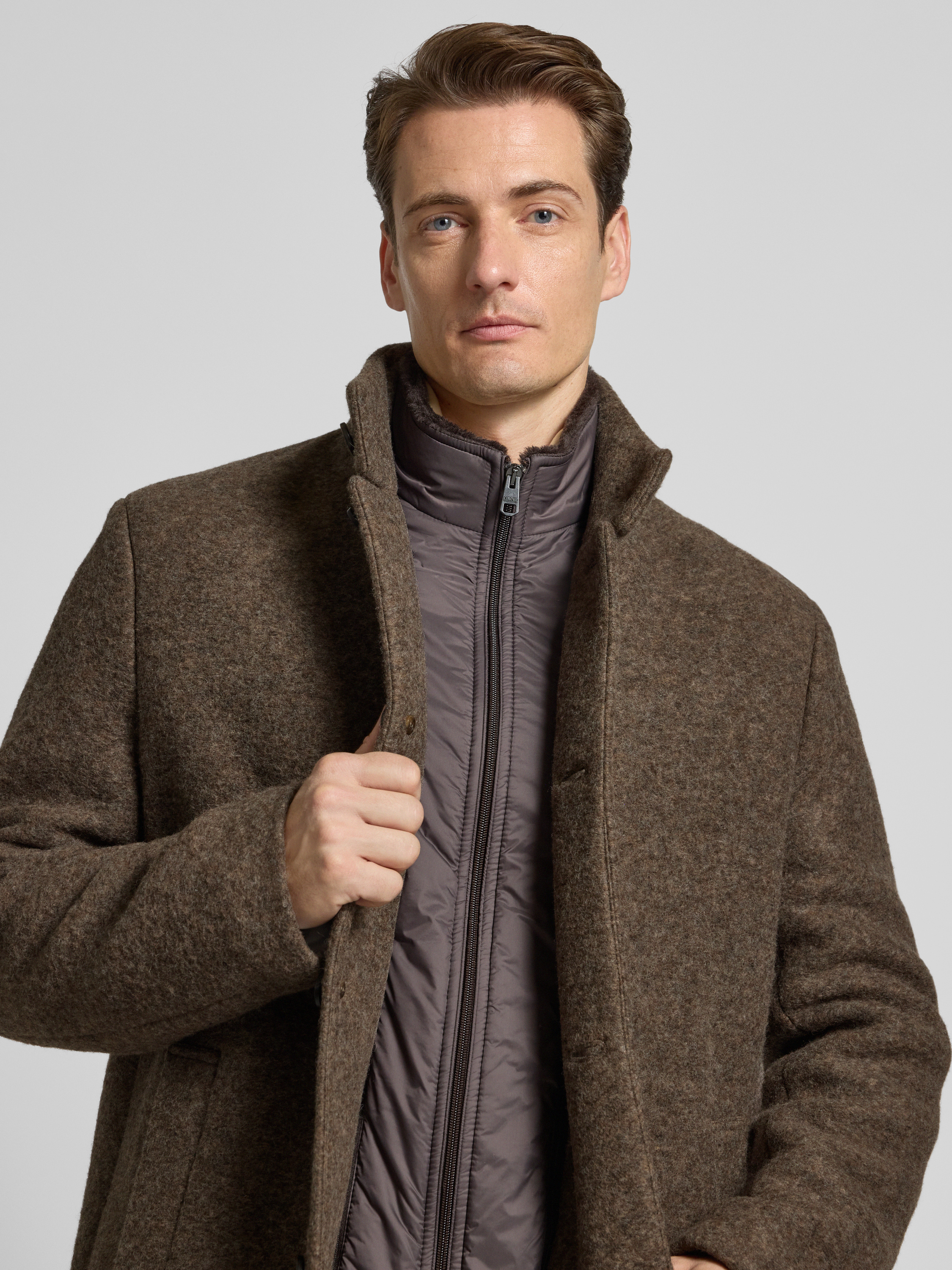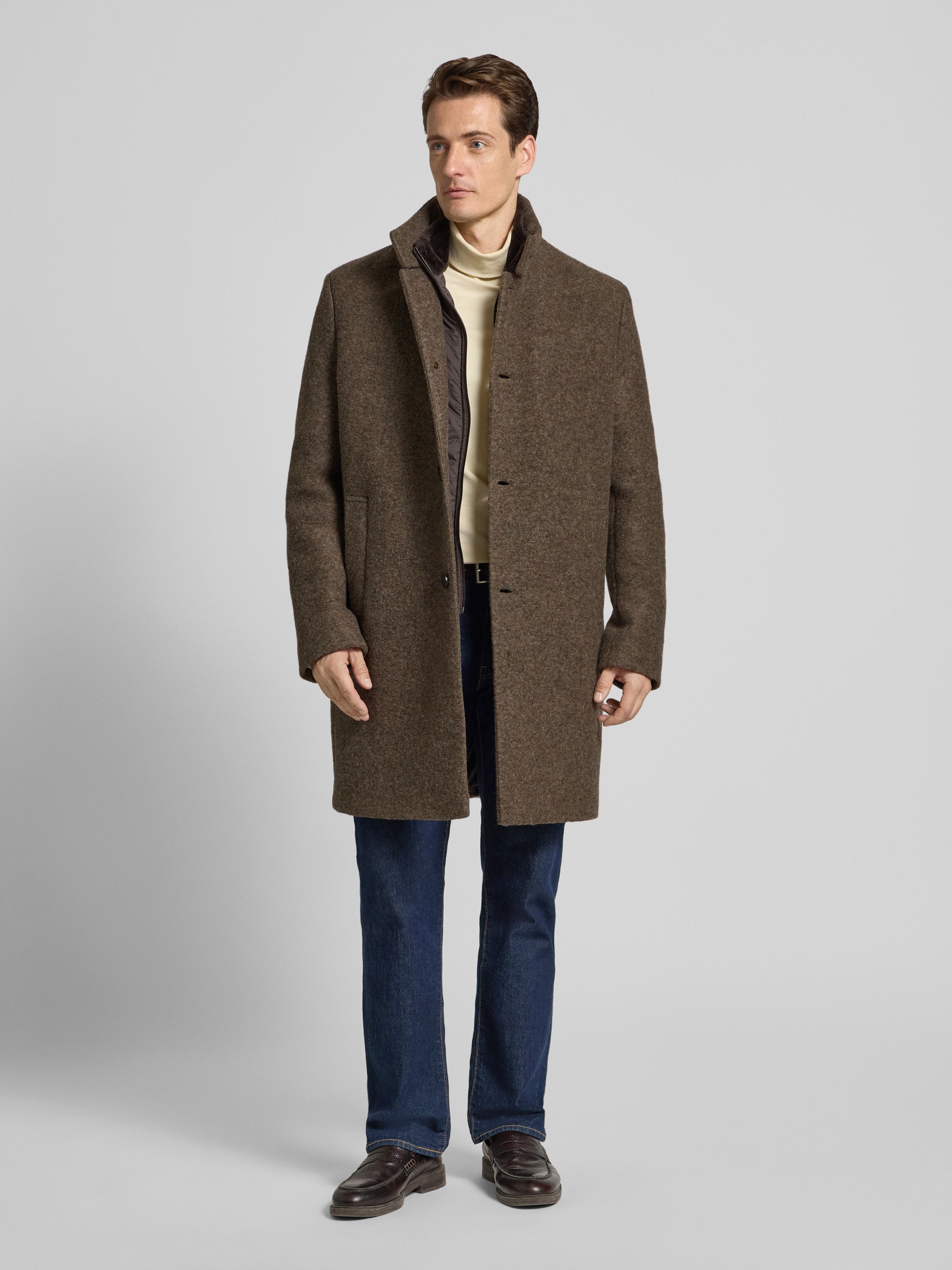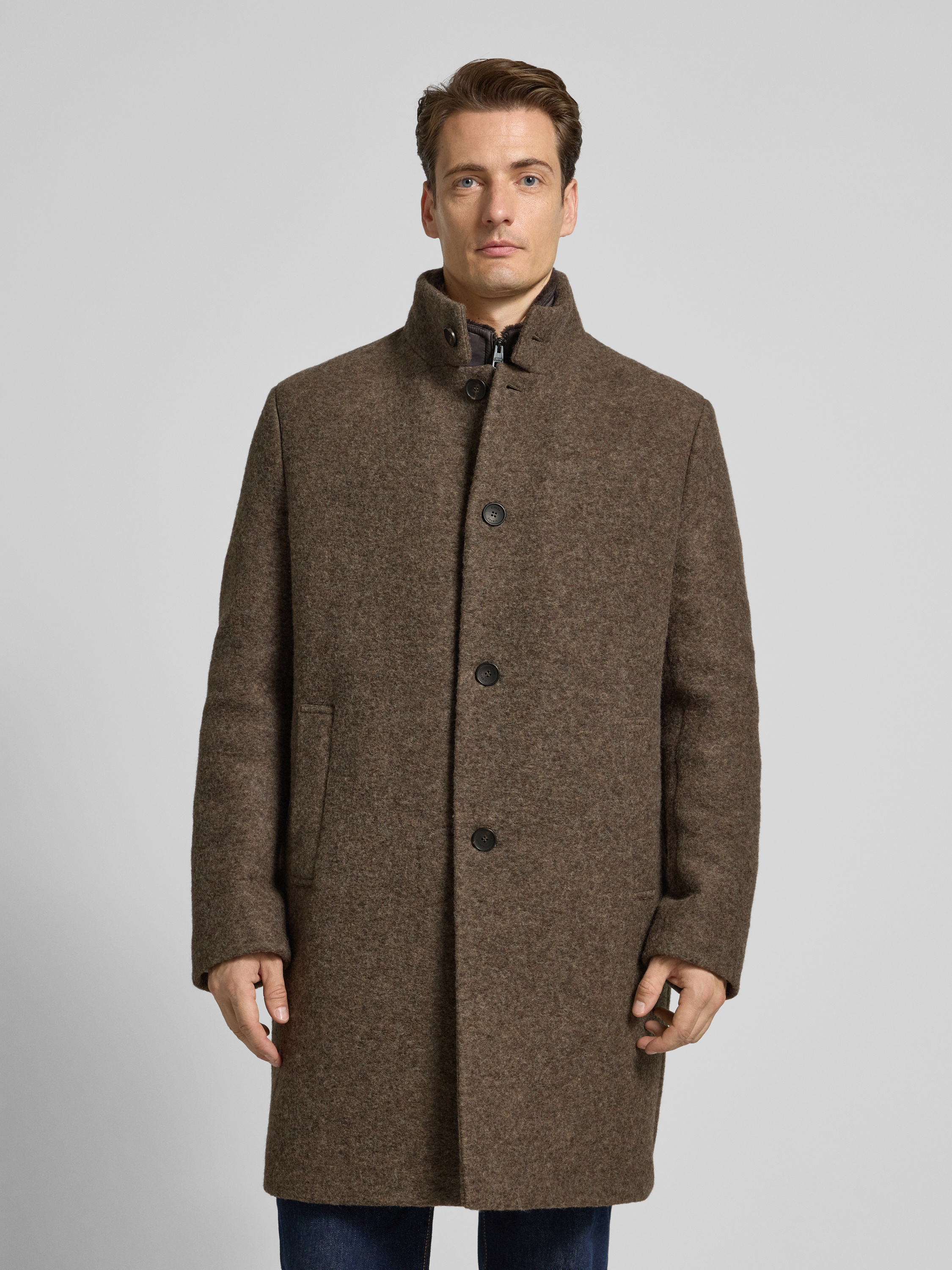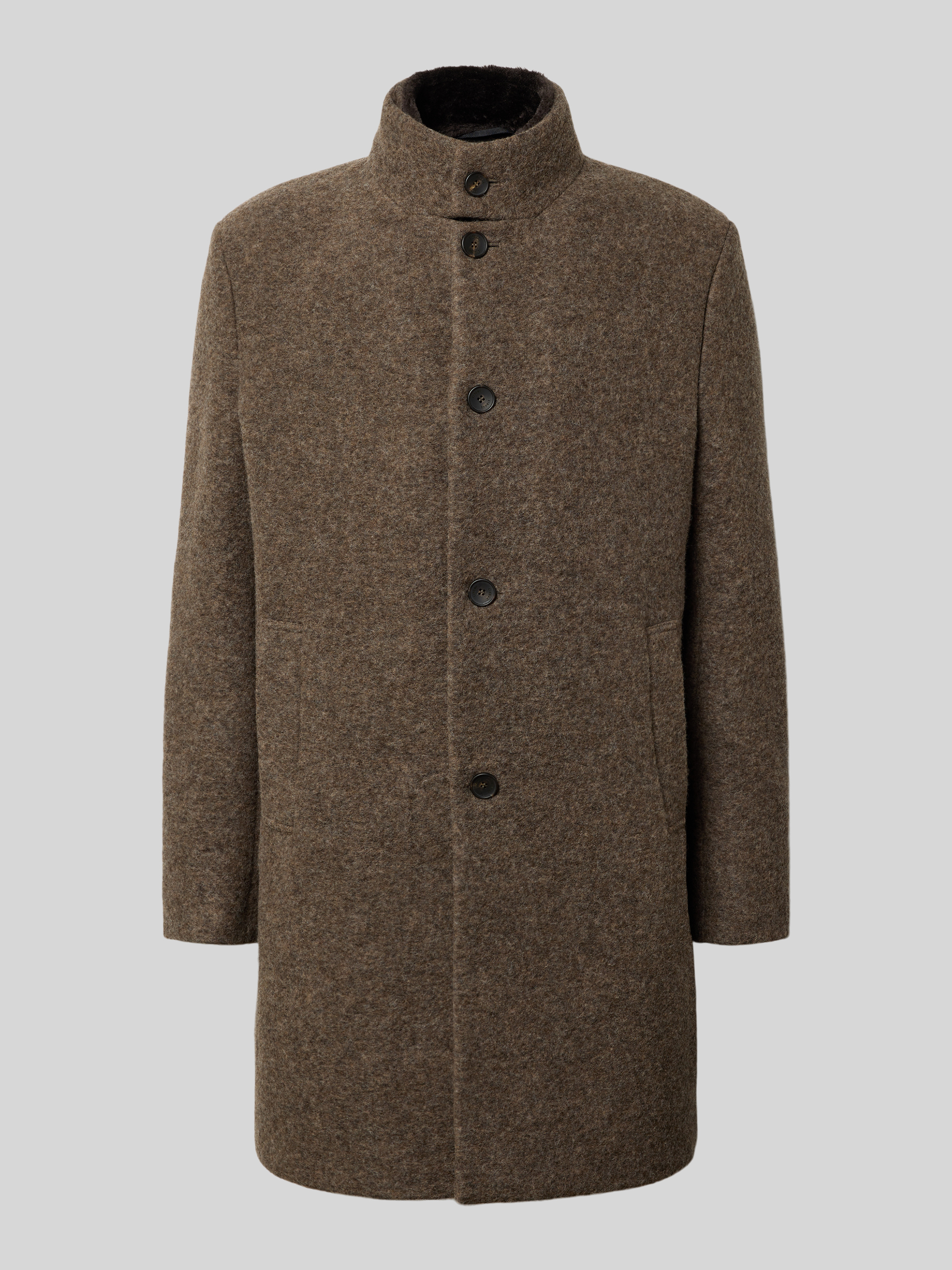 Der Herren Mantel von Cinque, Modell BURTON, verbindet einen Schurwoll-Mix mit einem Regular Fit, wodurch er angenehm sitzt und gleichzeitig ausreichend Bewegungsfreiheit lässt. Durch den Stehkragen erhält das klassische Design eine moderne Note, während praktische Eingrifftaschen für Alltagstauglichkeit sorgen. Mit seiner klaren Linie eignet sich dieser Mantel für verschiedenste Anlässe und ergänzt zahlreiche Outfits auf dezente Weise.