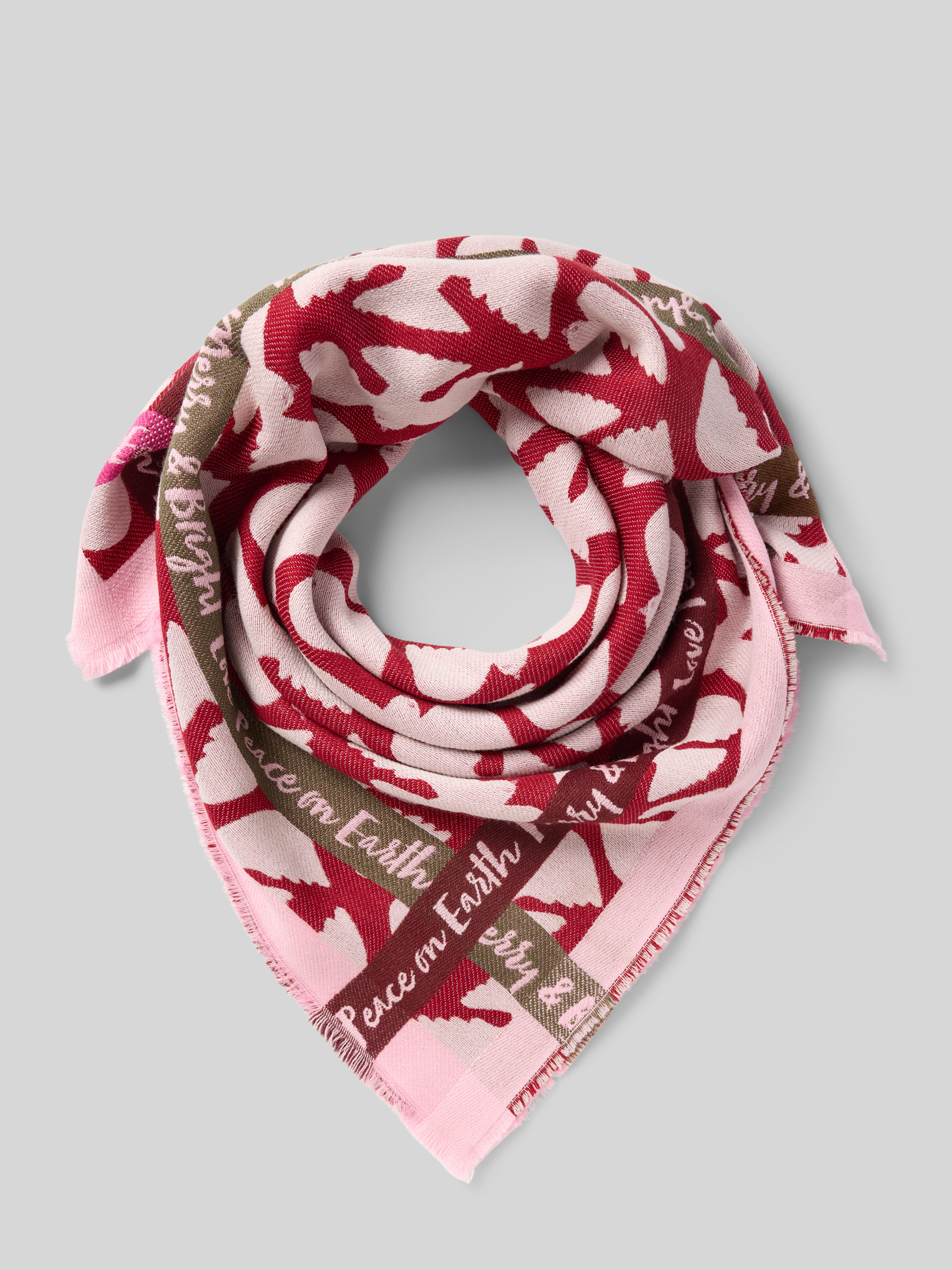 Der Damen Schal von Codello kombiniert einen angenehmen Material-Mix mit Baumwoll-Anteil und sorgt durch seine quadratische Form für vielseitige Tragemöglichkeiten. Ausfransungen an den Kanten und ein markanter Statement-Print setzen modische Akzente. So lässt sich das Accessoire unkompliziert in unterschiedliche Outfits integrieren.