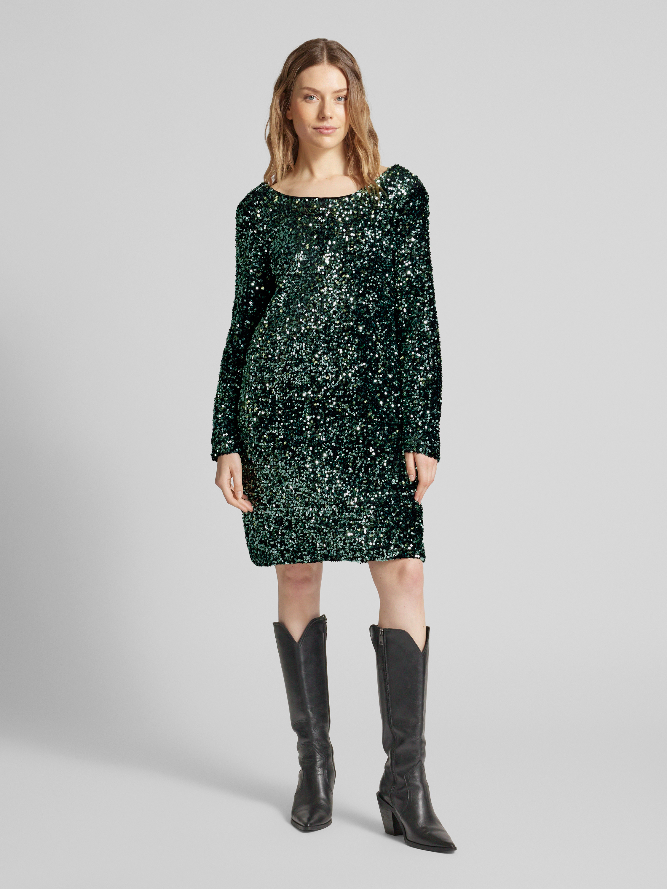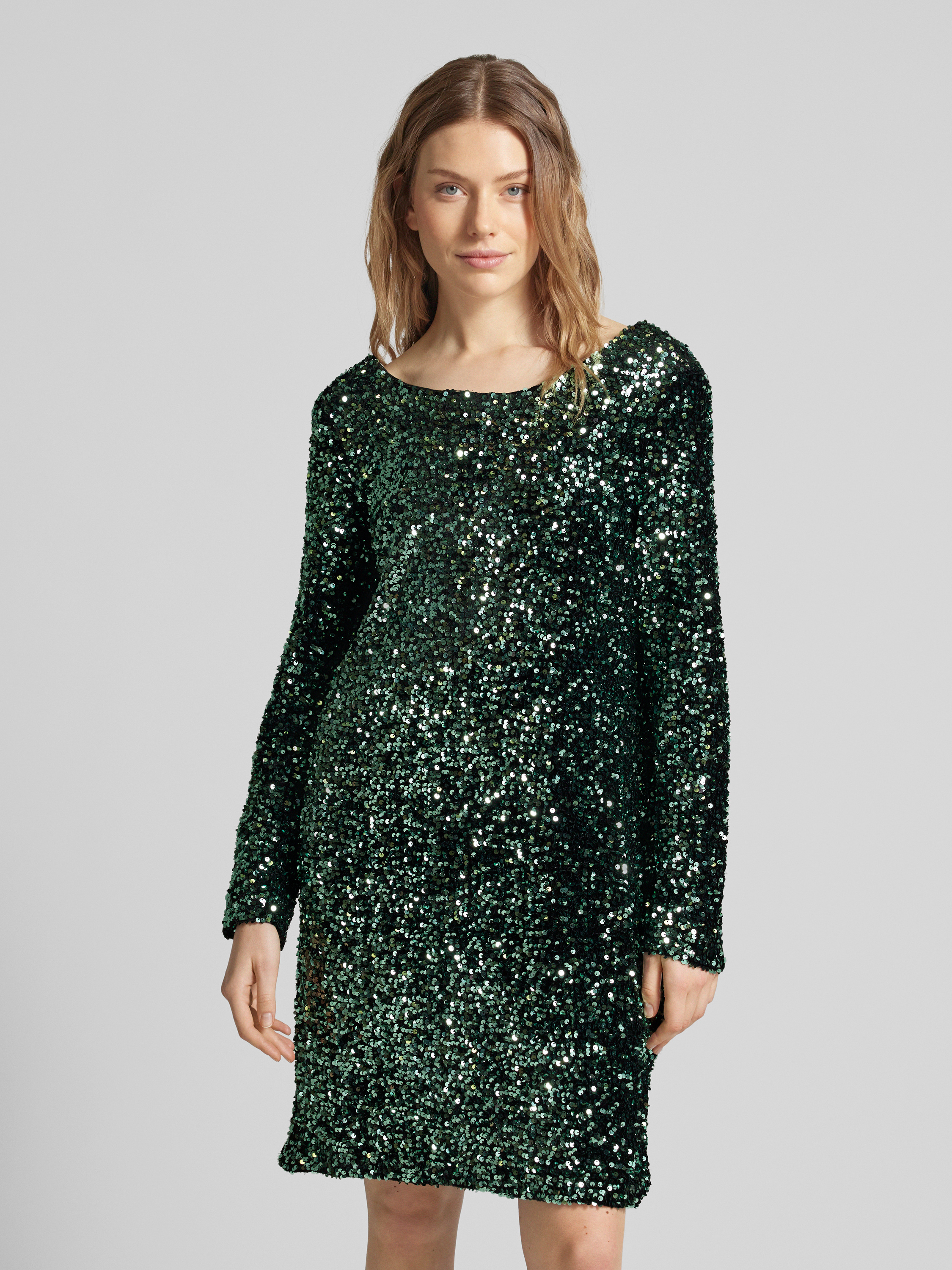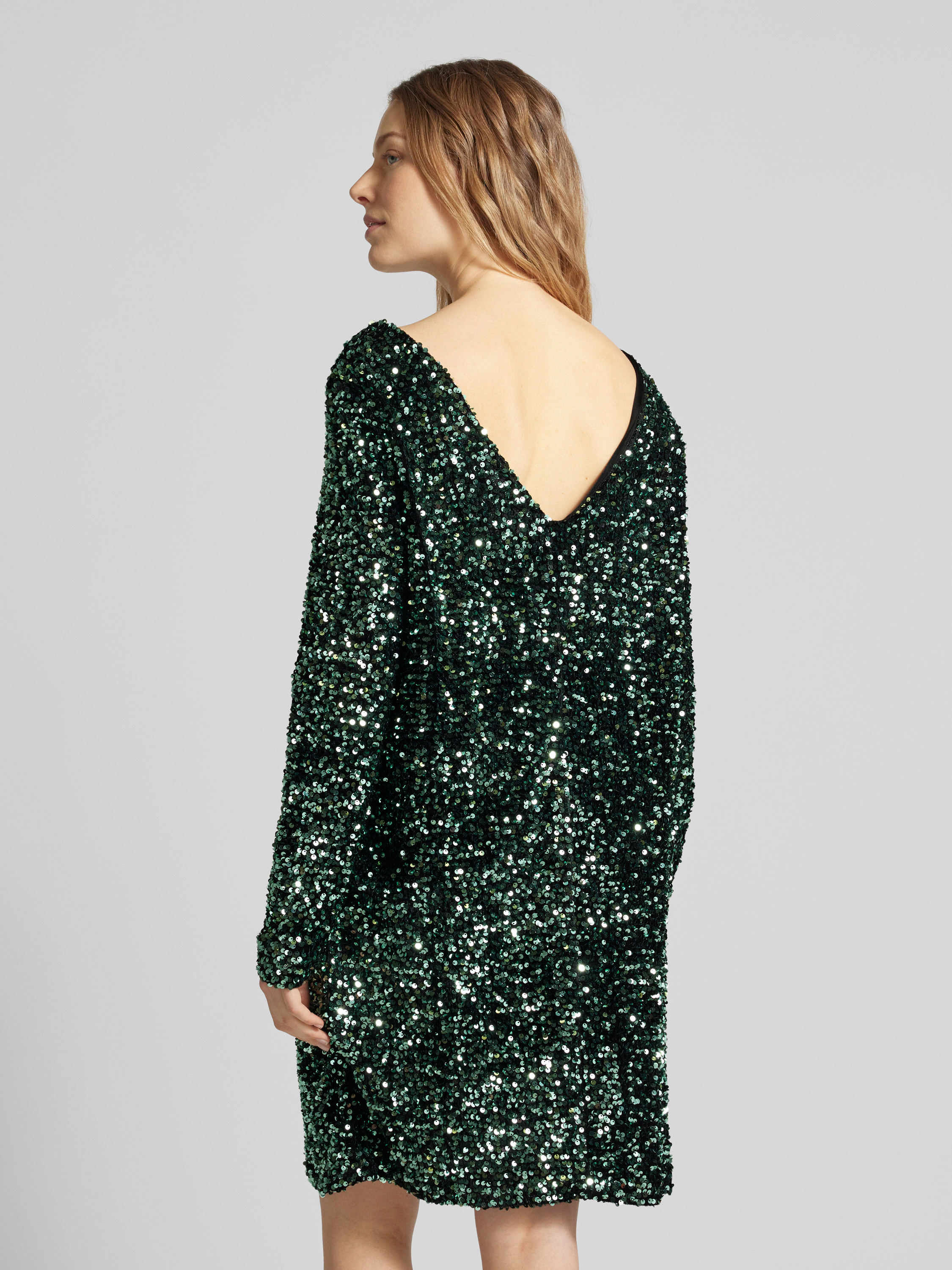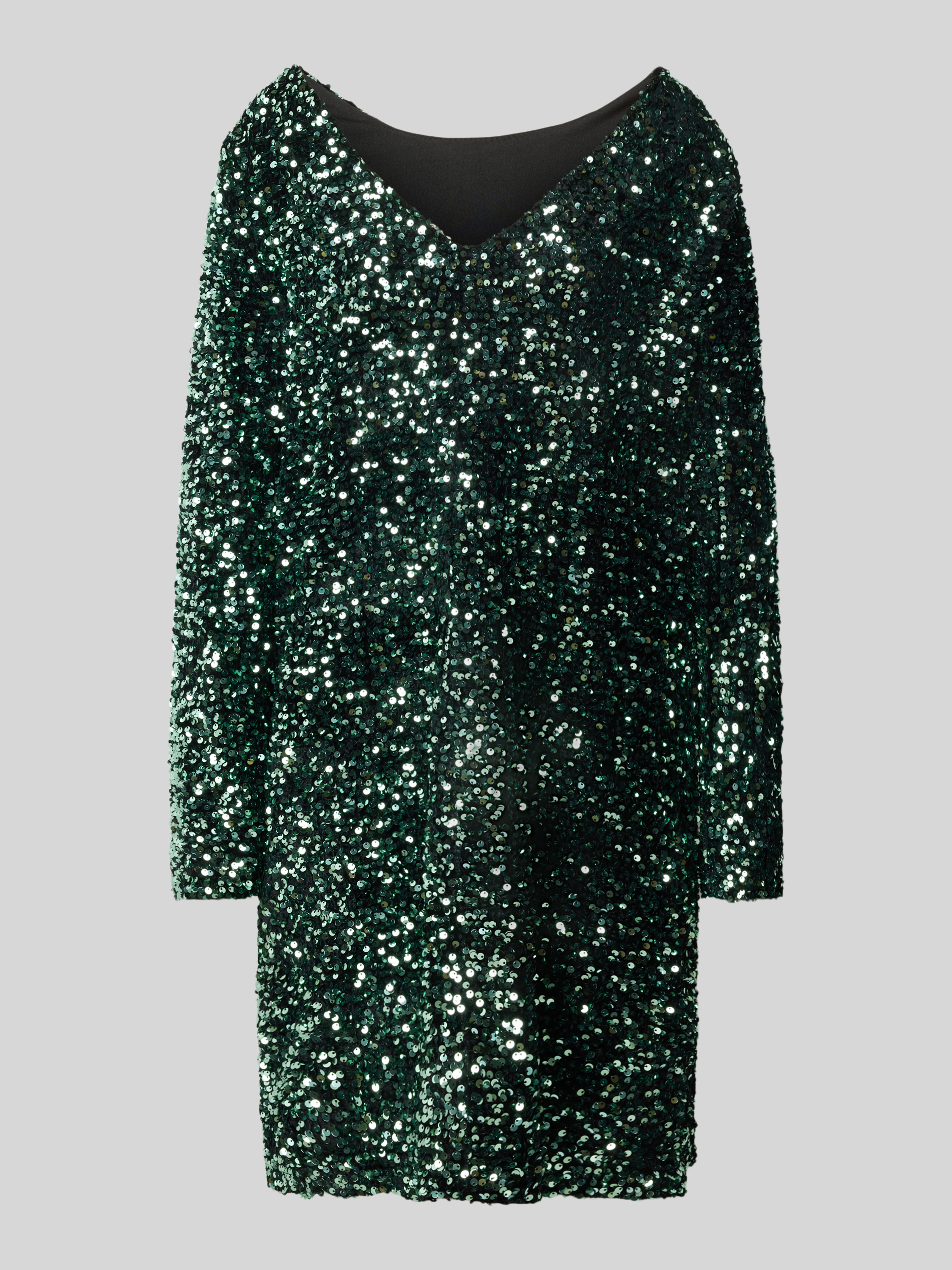 Das Minikleid von Colourful Rebel zeichnet sich durch seinen lockeren Schnitt und den eleganten V-Ausschnitt aus. Der Paillettenbesatz verleiht dem Kleid einen besonderen Glanz, während das langärmelige Design für angenehmen Tragekomfort sorgt. Ideal für besondere Anlässe.