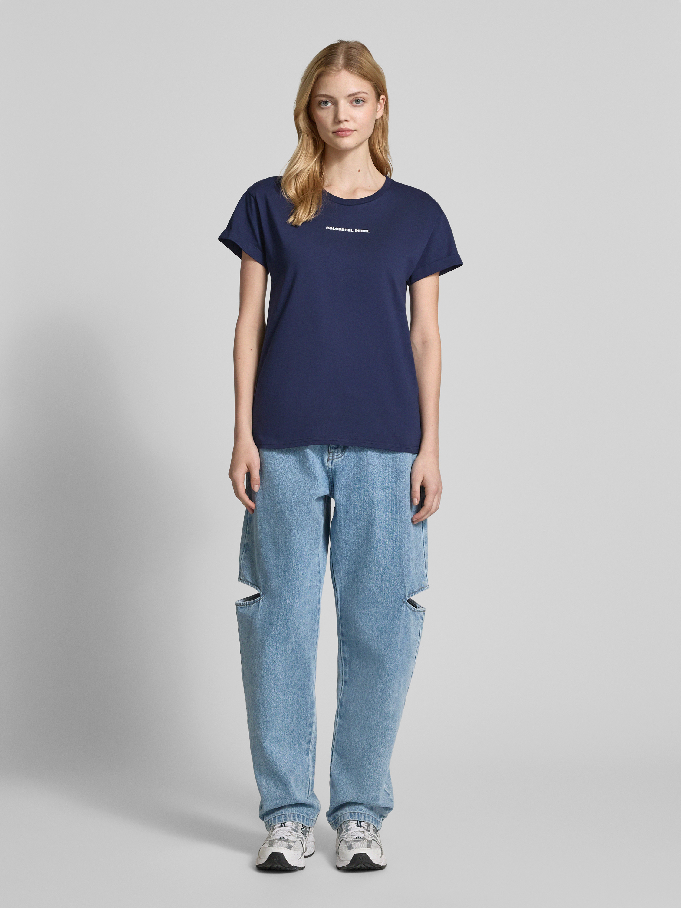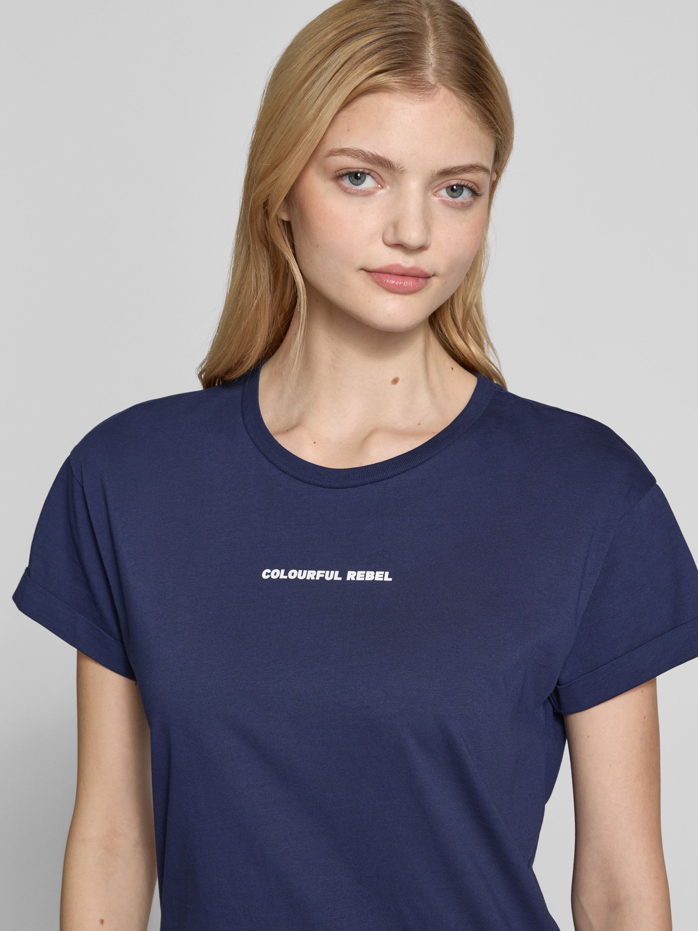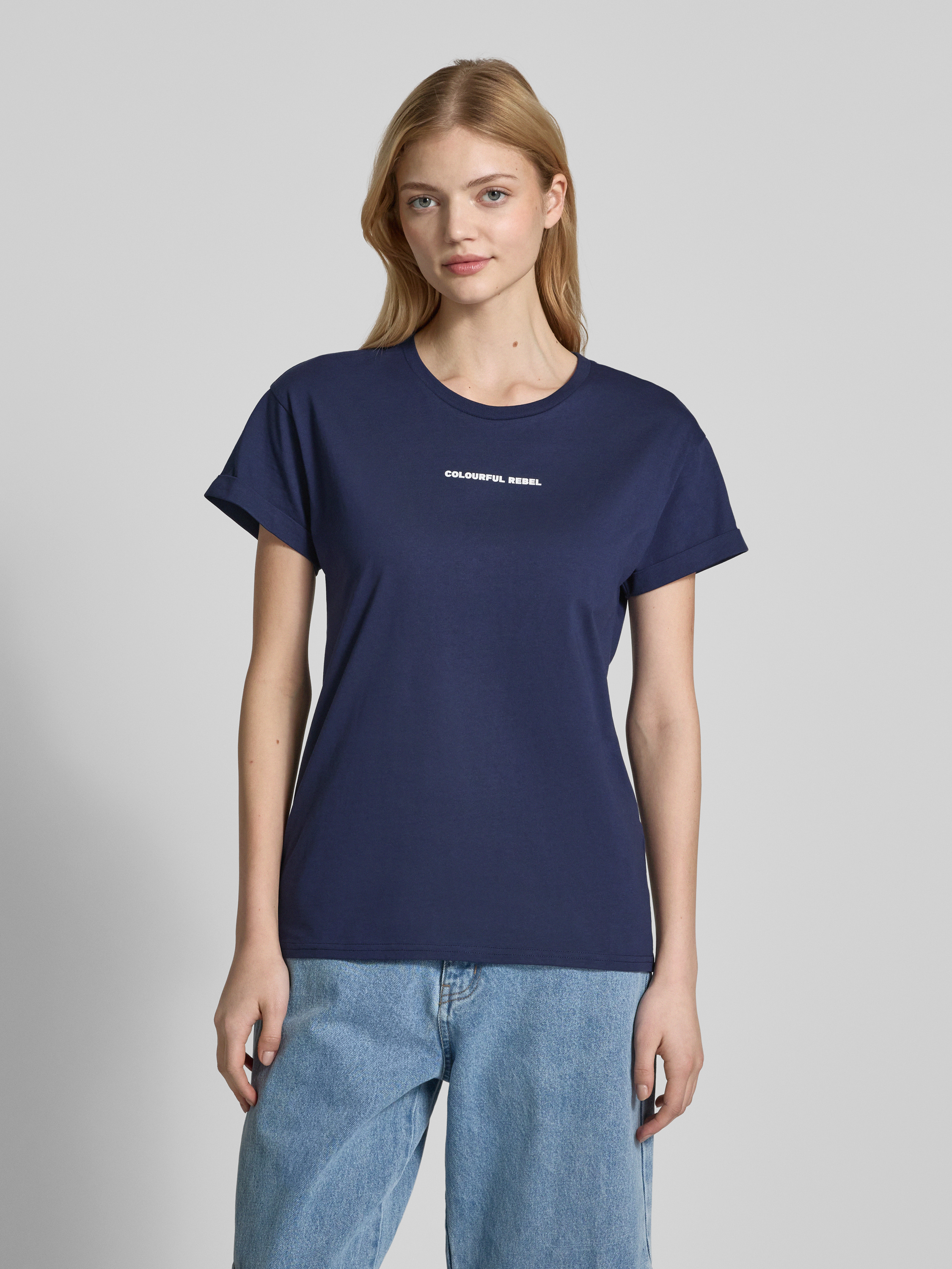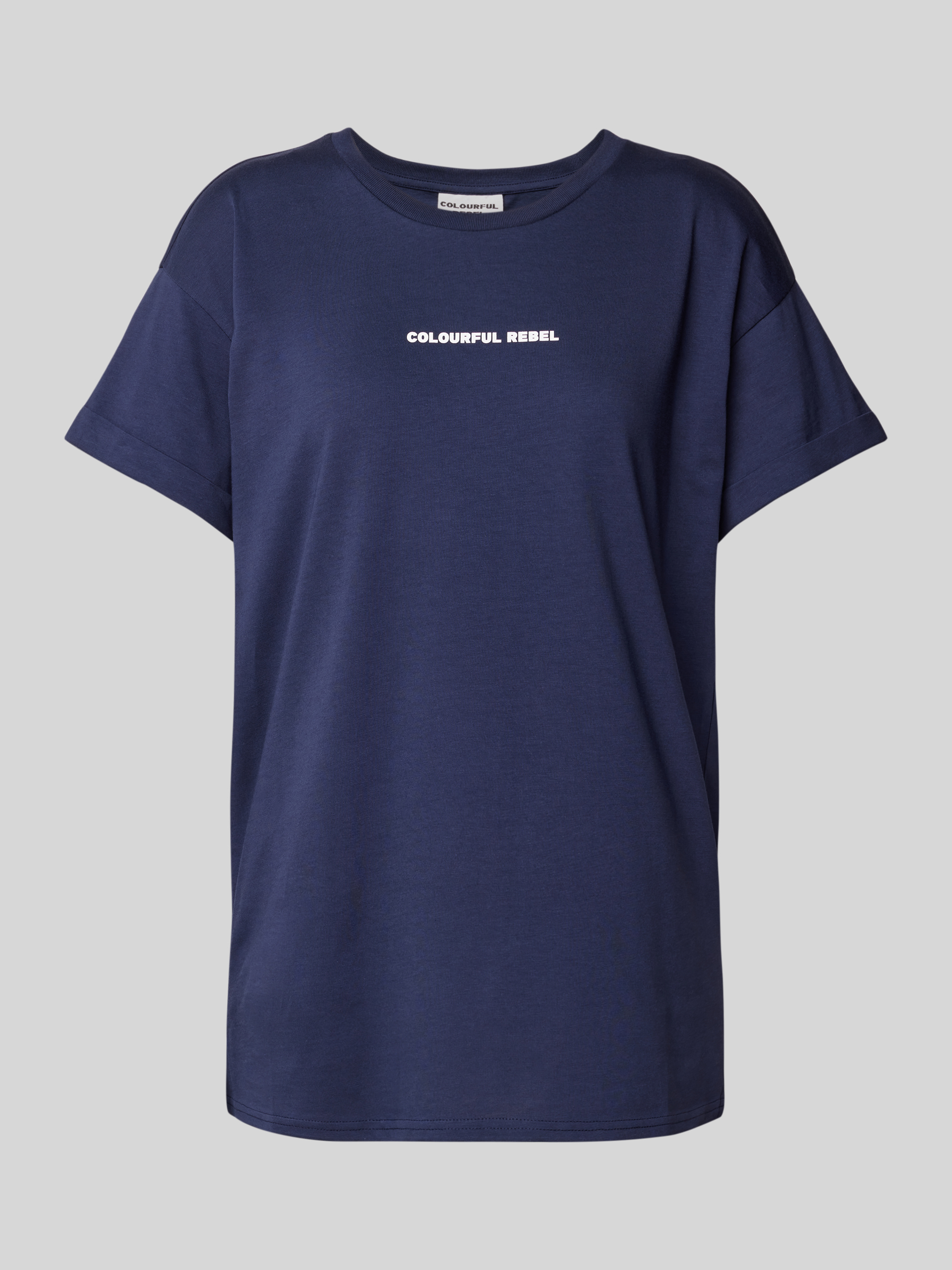 Das Damen T-Shirt von Colourful Rebel beeindruckt mit seiner reinen Baumwollqualität, die ein angenehmes Tragegefühl vermittelt. Der Regular Fit sorgt für eine bequeme Passform, während der gerippte Rundhalsausschnitt und der stilvolle Label-Print das Design abrunden. Ideal für legere Anlässe.
