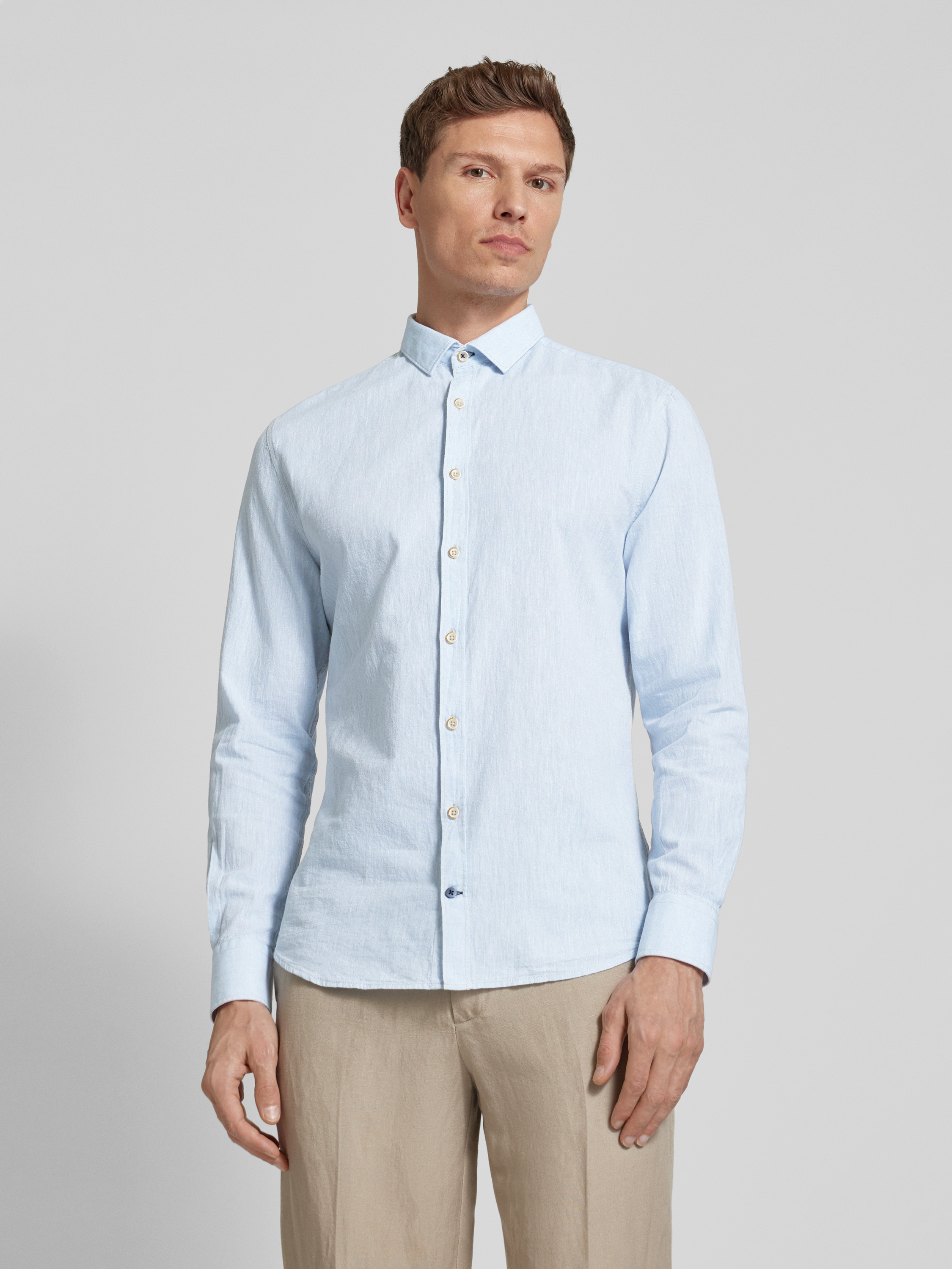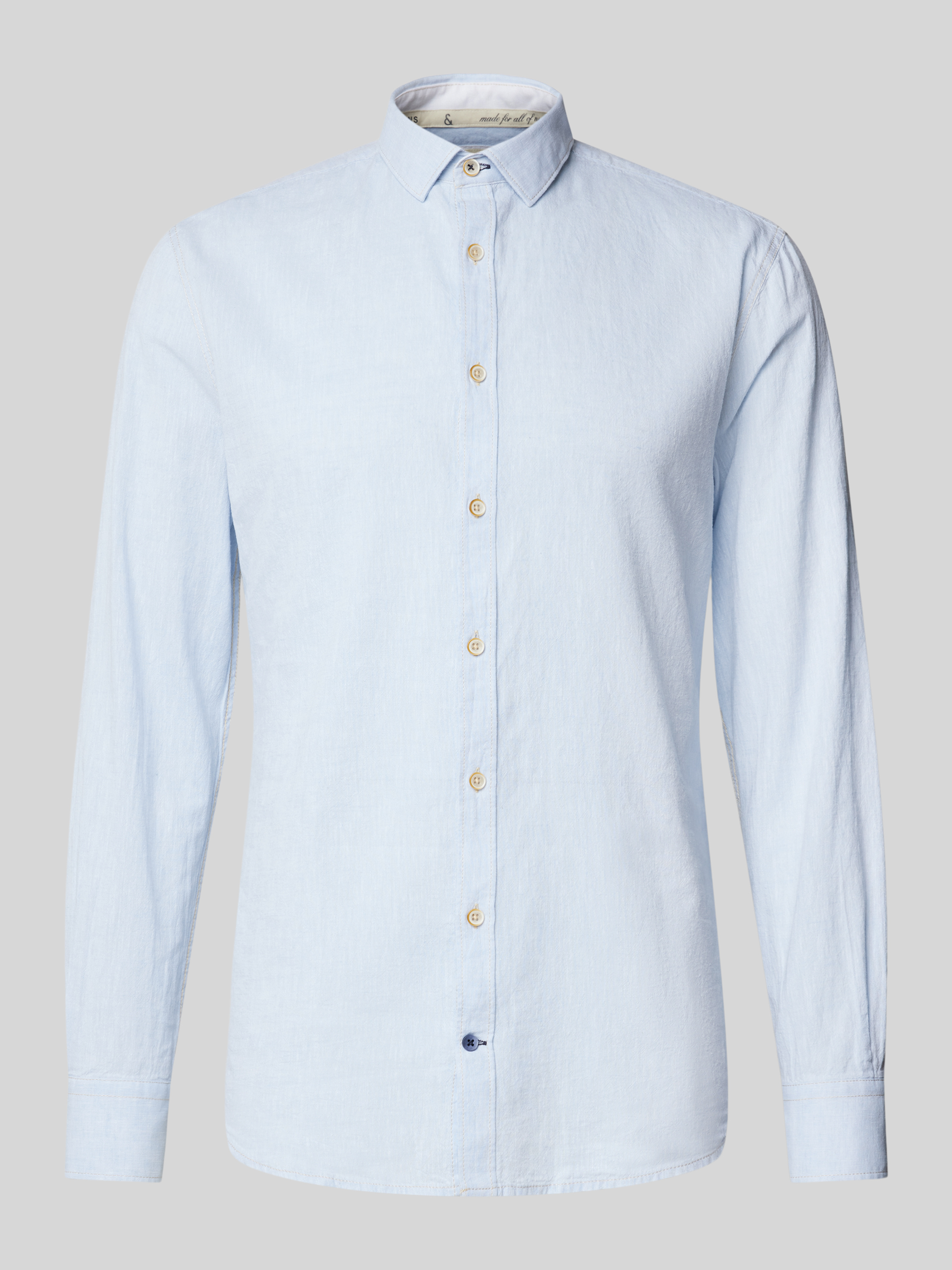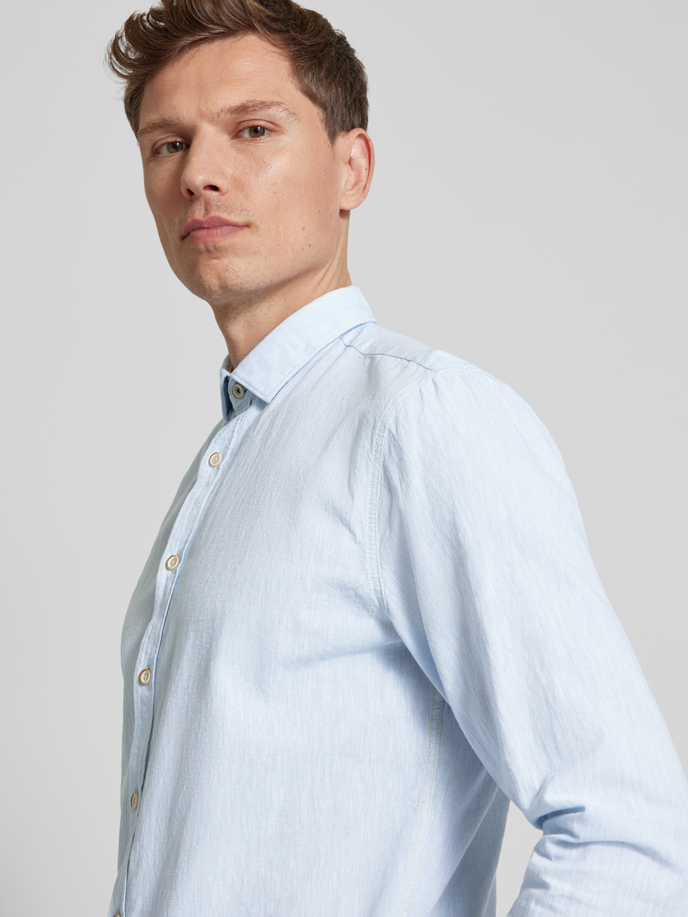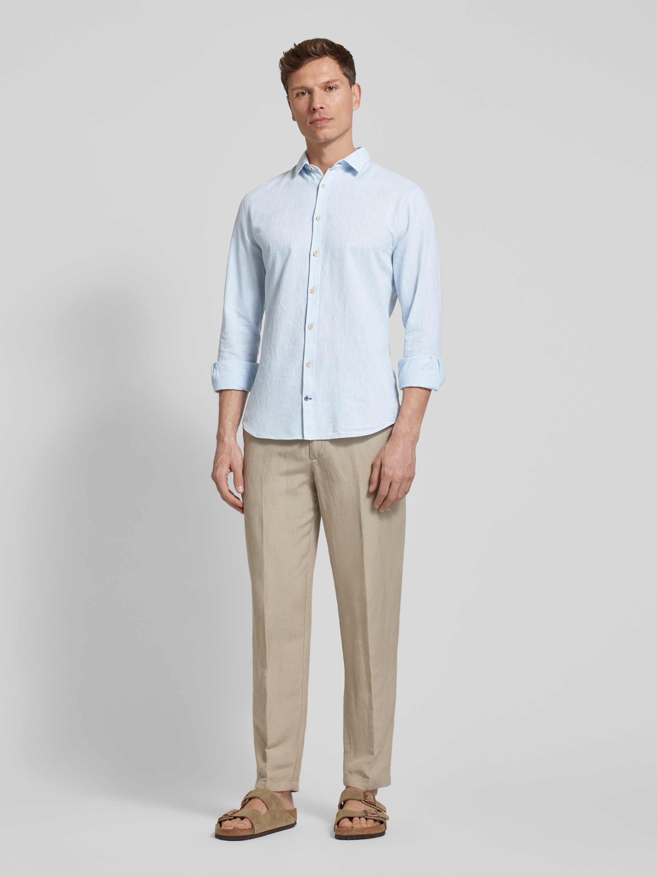 Colours & SonsSlim Fit Freizeithemd aus Baumwoll-Leinen-Mix in hellblau