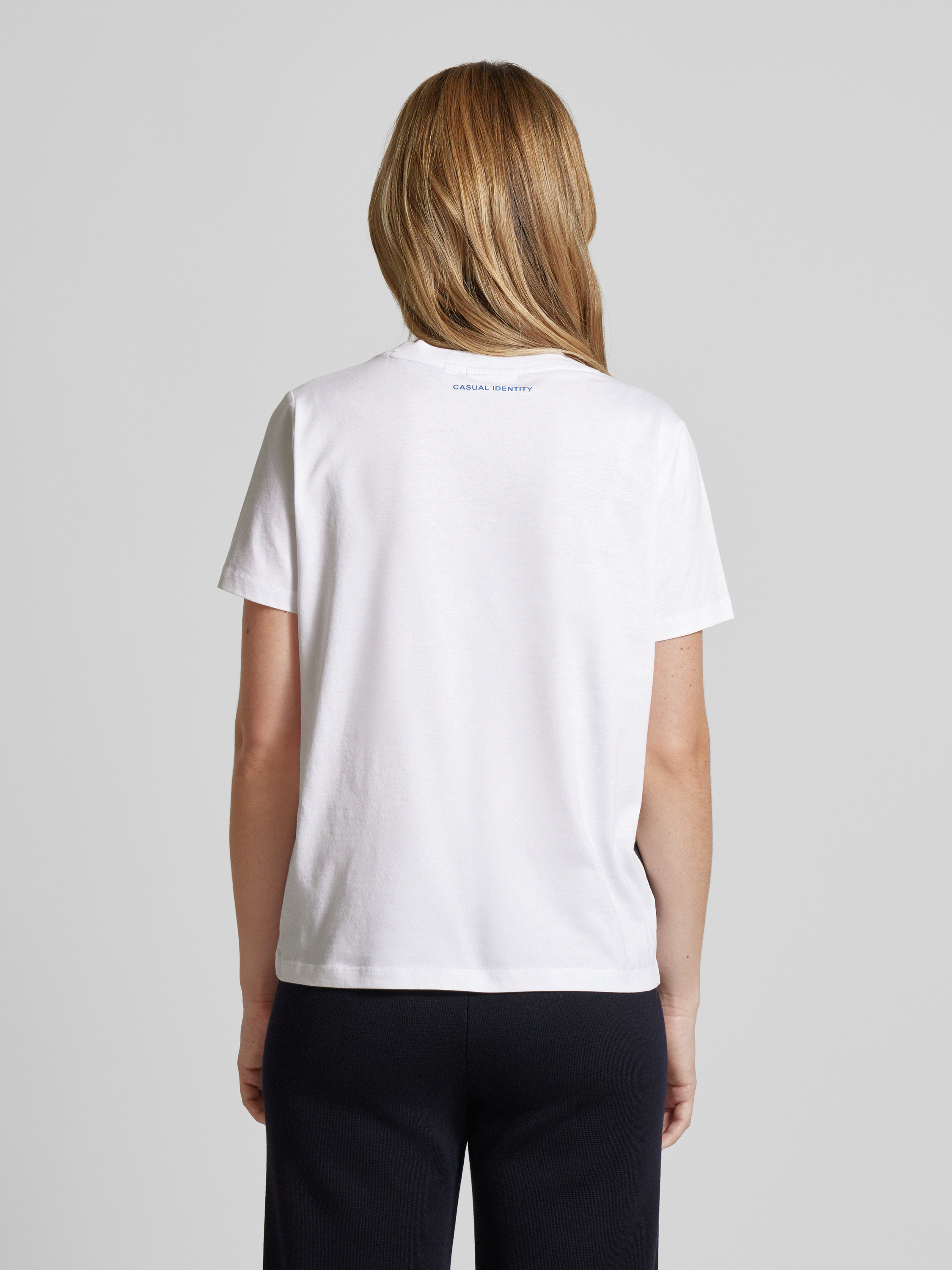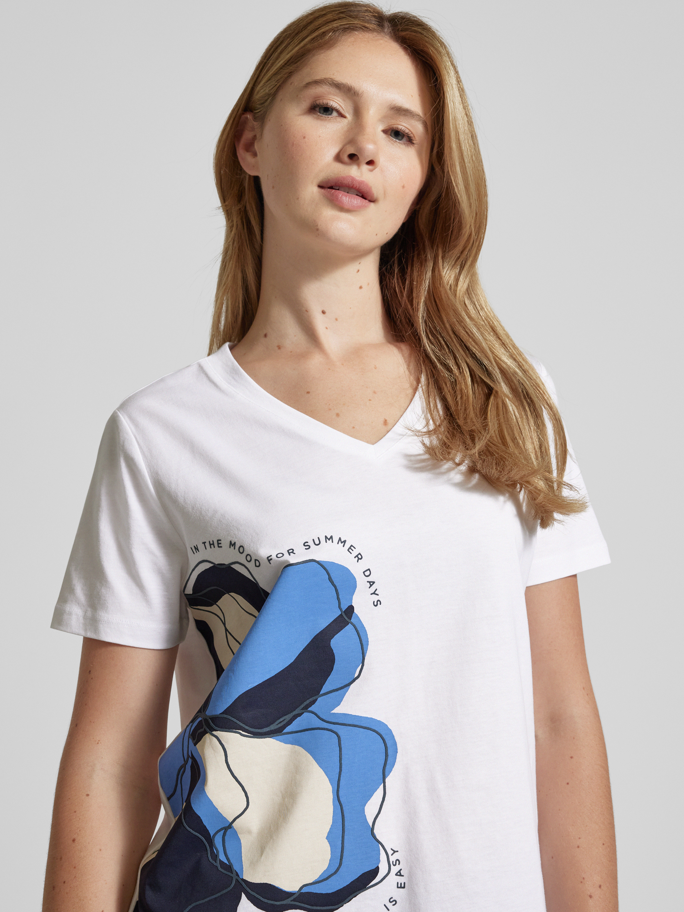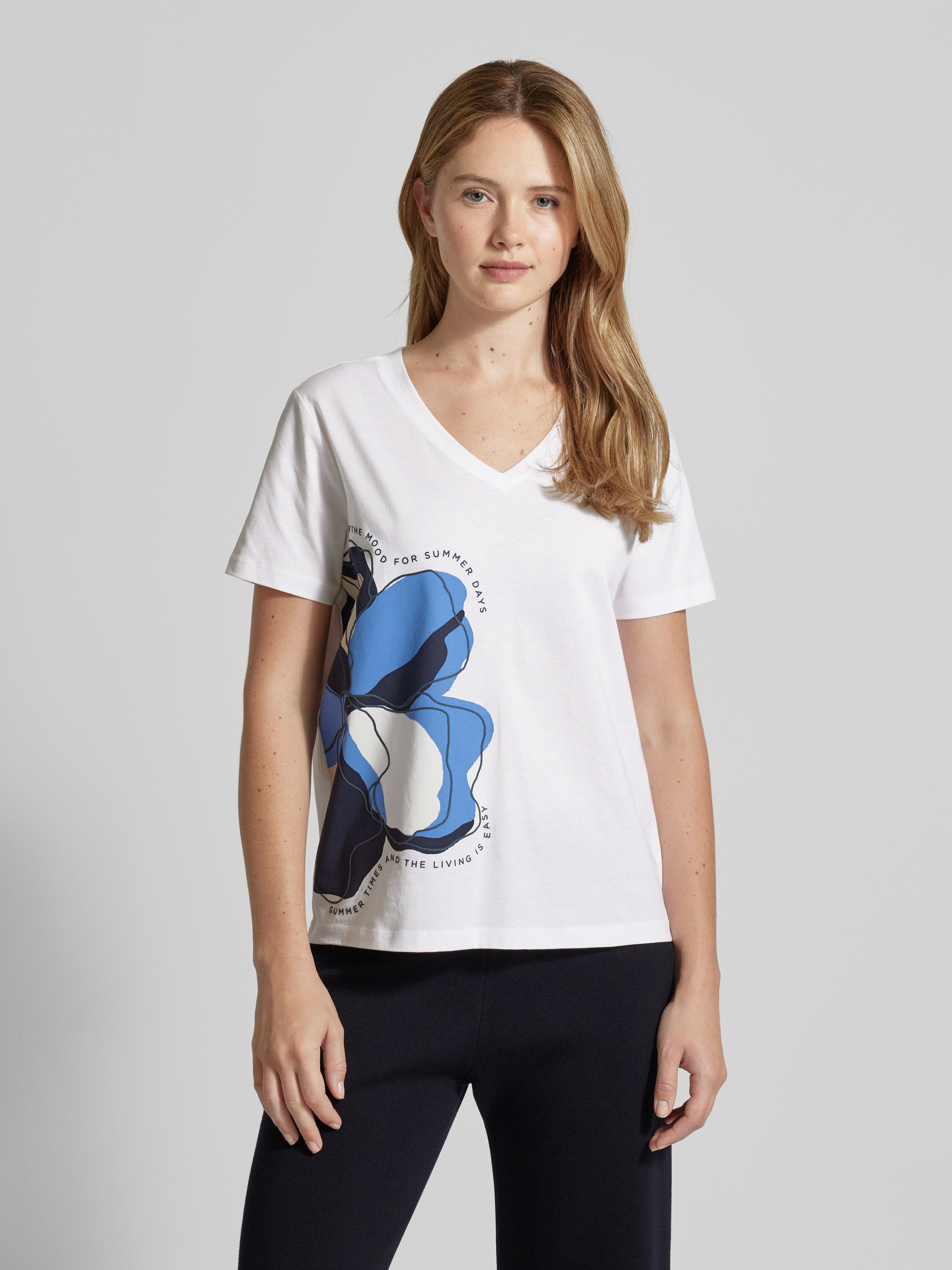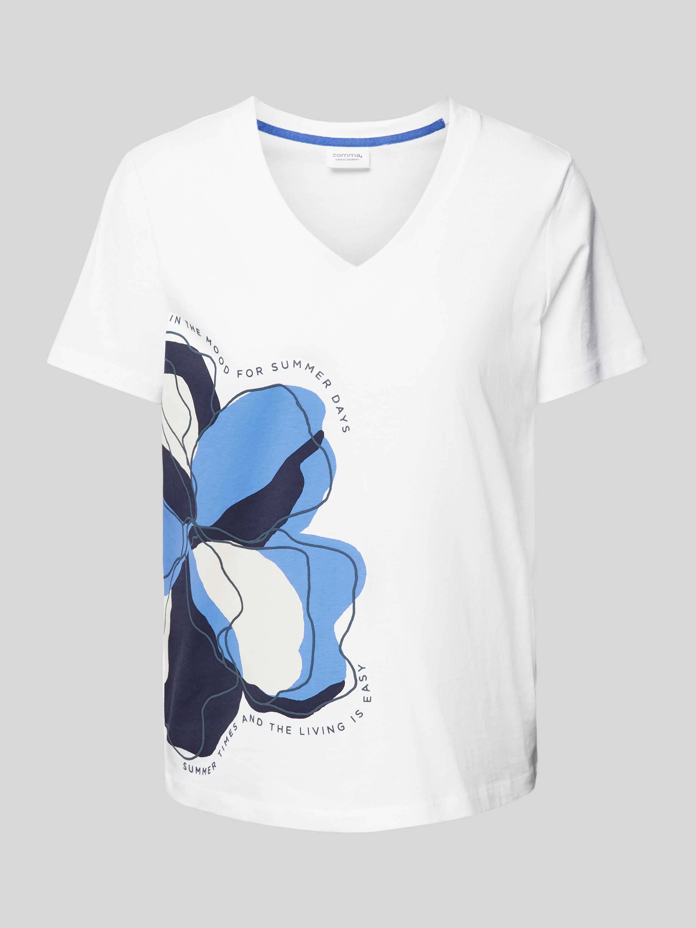 Das Damen T-Shirt von comma casual identity verbindet lässigen Stil mit hohem Tragekomfort durch seine reine Baumwollqualität. Ein gerader Schnitt und ein verspielter Motiv-Print sorgen für ein angenehmes Tragegefühl und eine lockere Passform. Der V-Ausschnitt verleiht dem Oberteil eine dezente Eleganz.