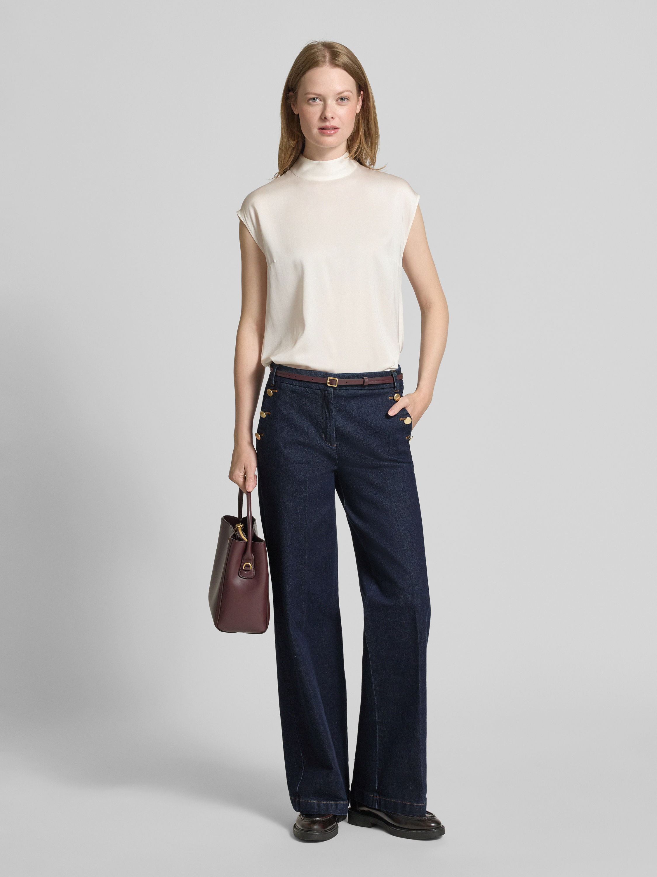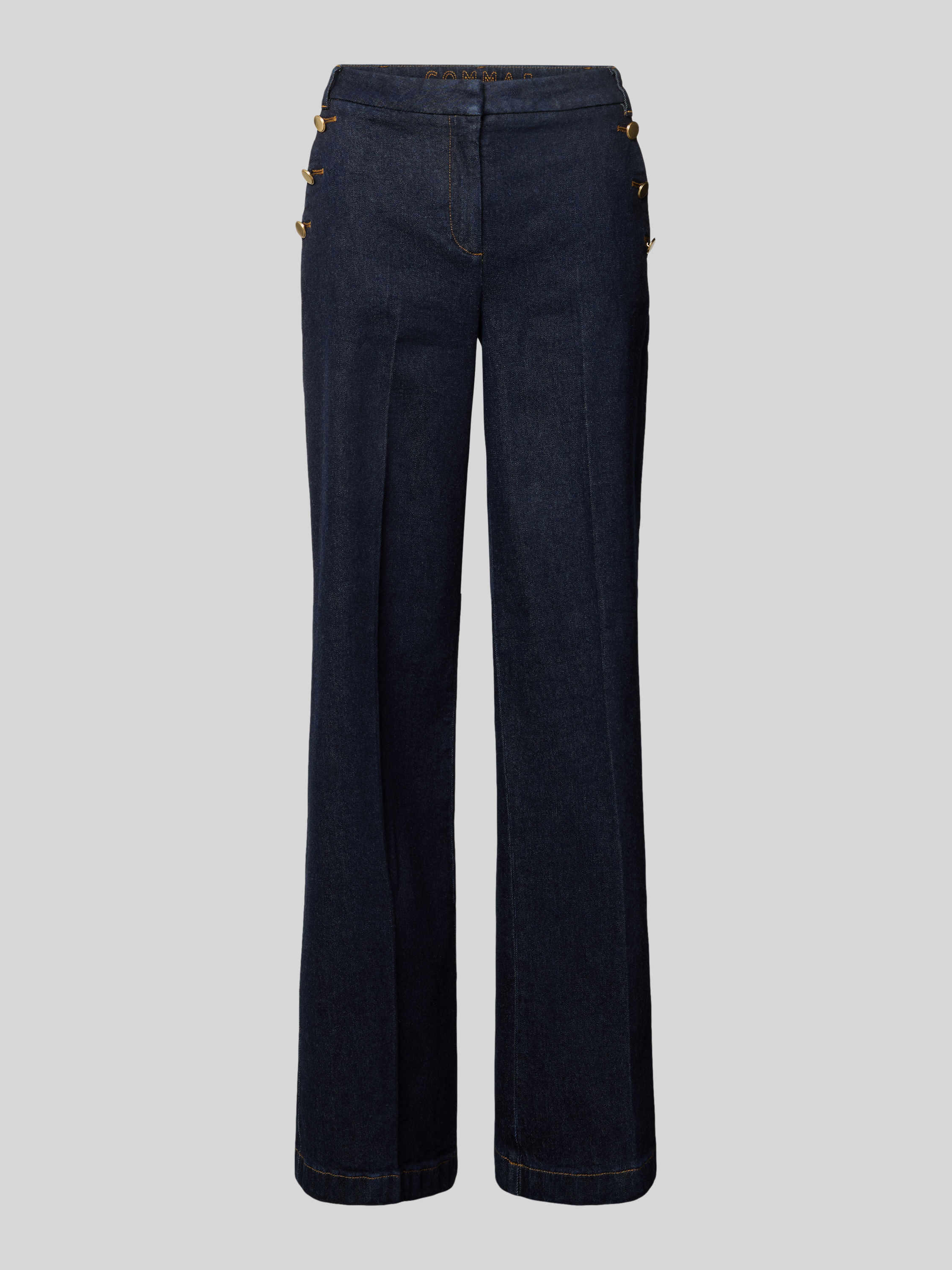 Die Flared Jeans mit Zierknöpfen von comma zeichnet sich durch ihren ausgestellten Schnitt aus, der Bewegungsfreiheit und eine lässige Silhouette ermöglicht. Dank des Baumwoll-Mix mit Stretch-Anteil sitzt sie angenehm und passt sich dem Körper flexibel an. Dezente Zierknöpfe setzen optische Akzente, während Gürtelschlaufen vielseitige Stylingoptionen eröffnen.