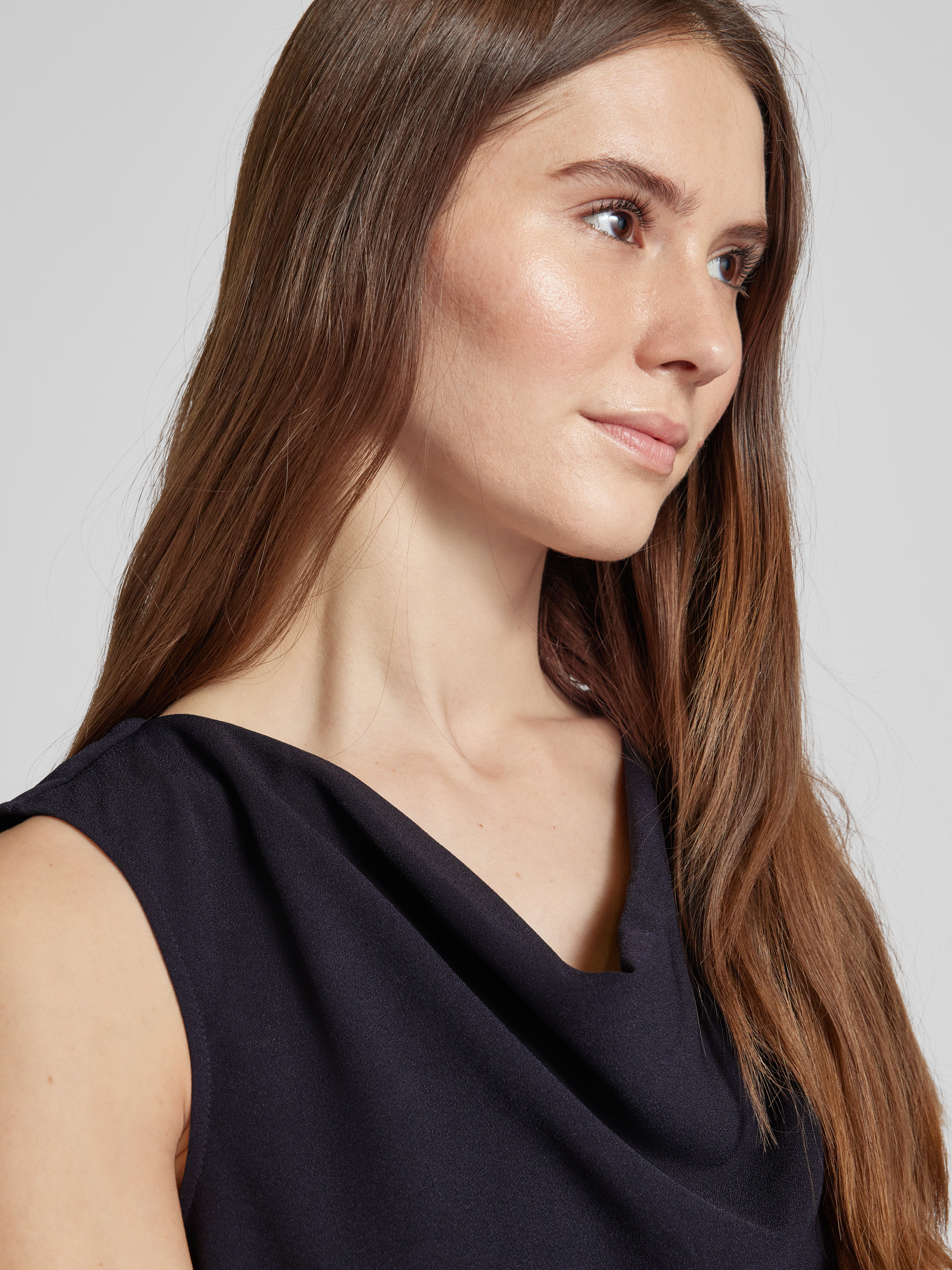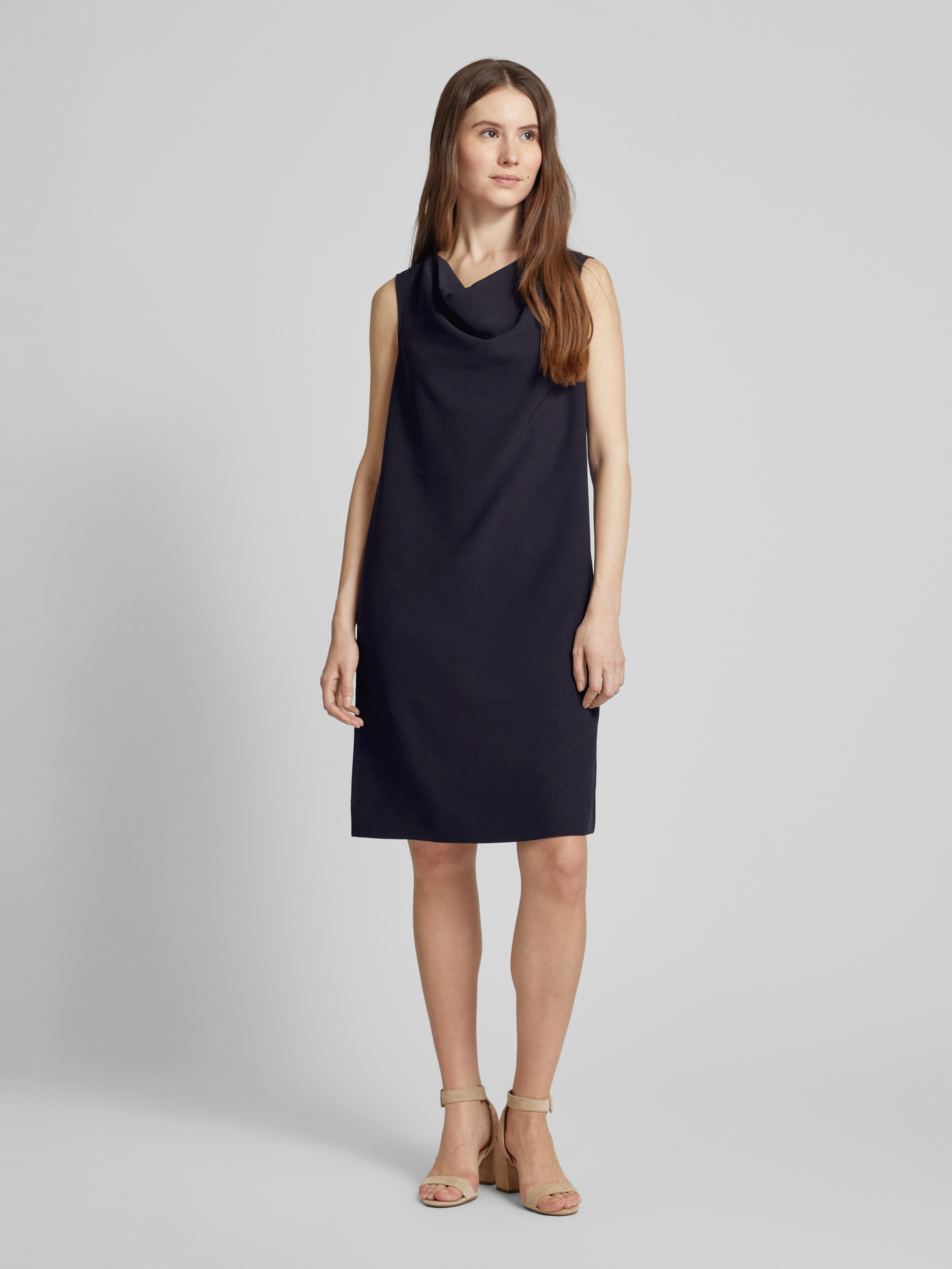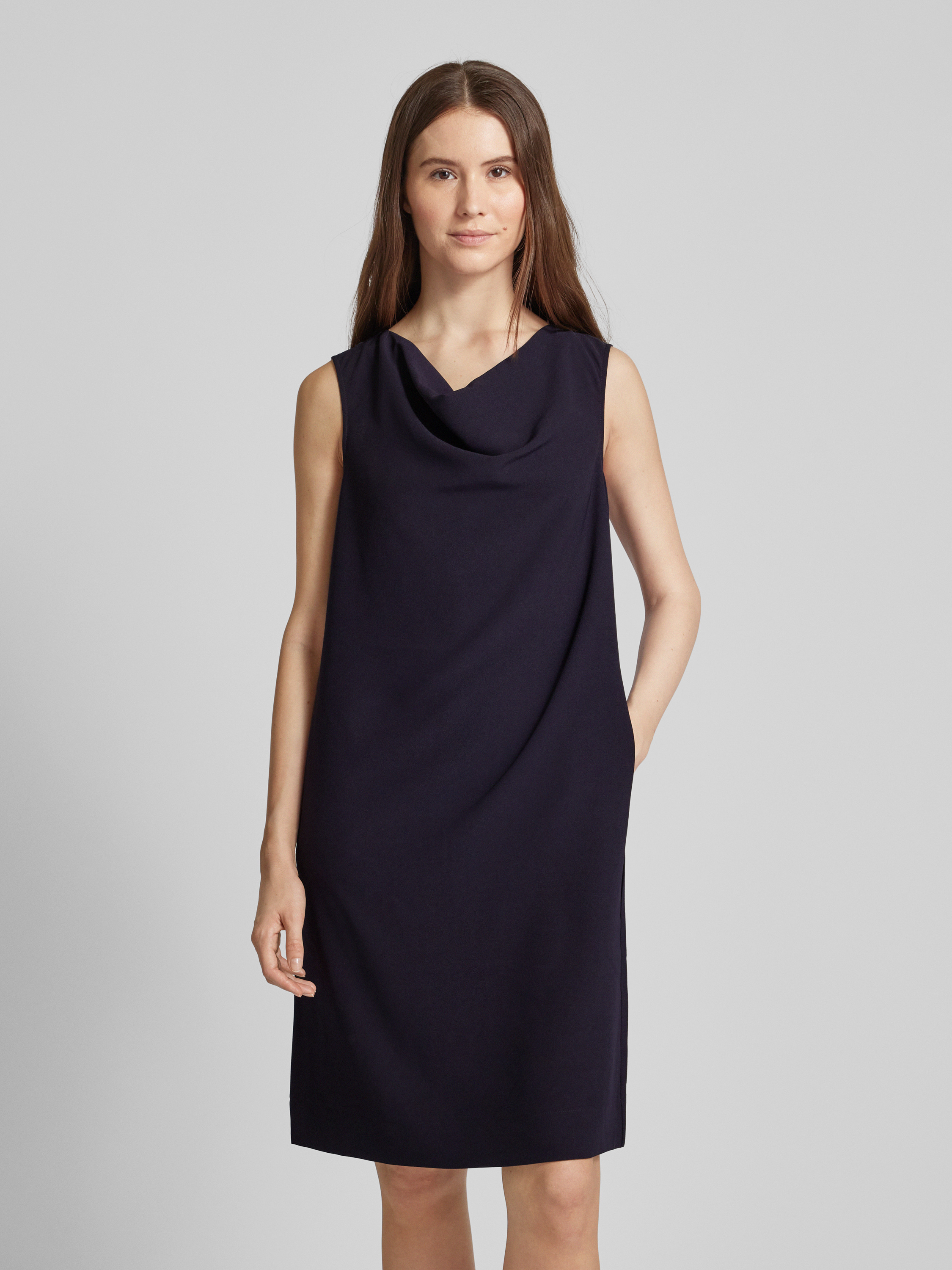 commaKnielanges Kleid mit Wasserfall-Ausschnitt in marine