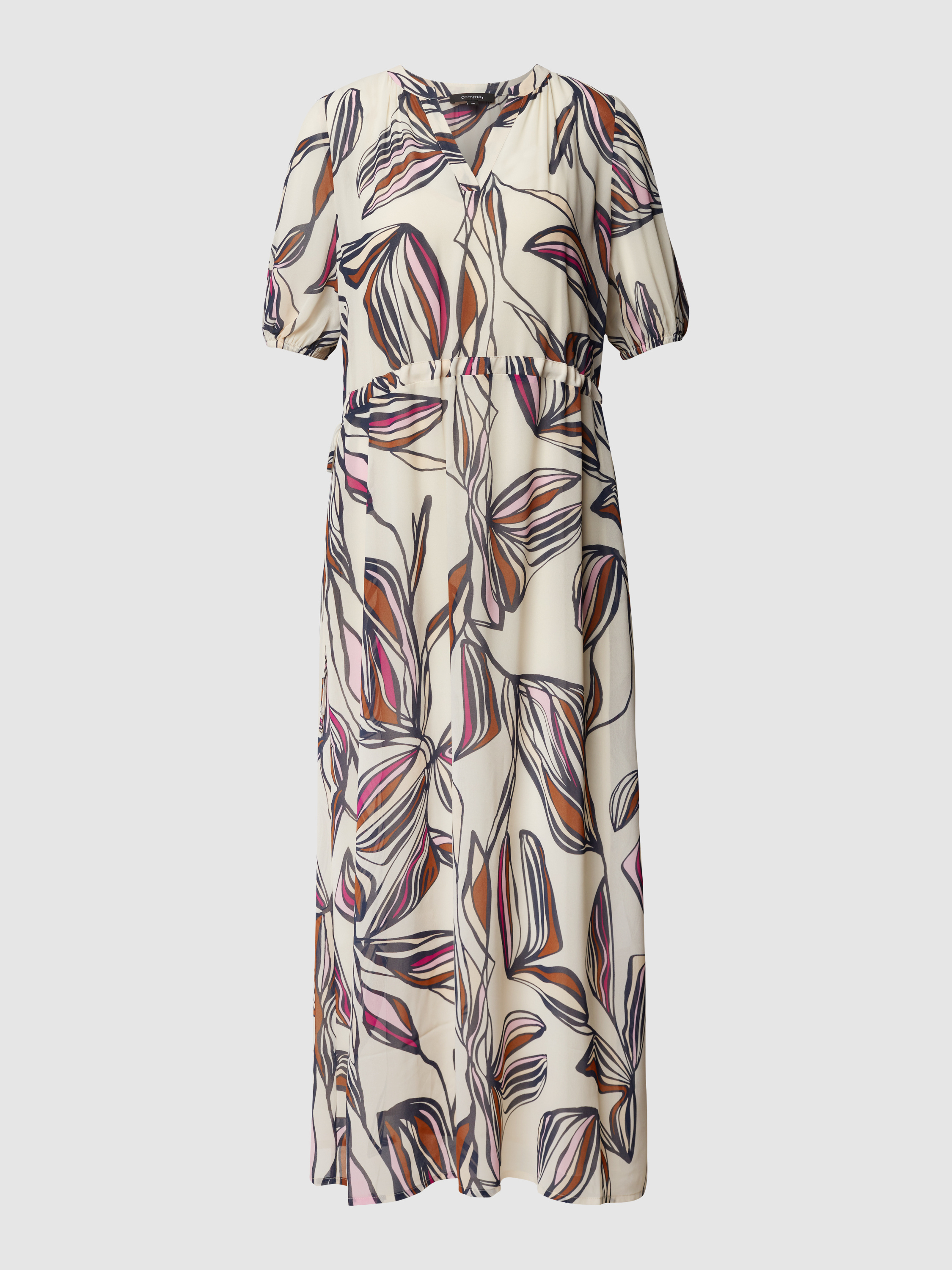 commaLoose Fit Maxikleid mit Tunnelzug und Puffärmeln in ecru