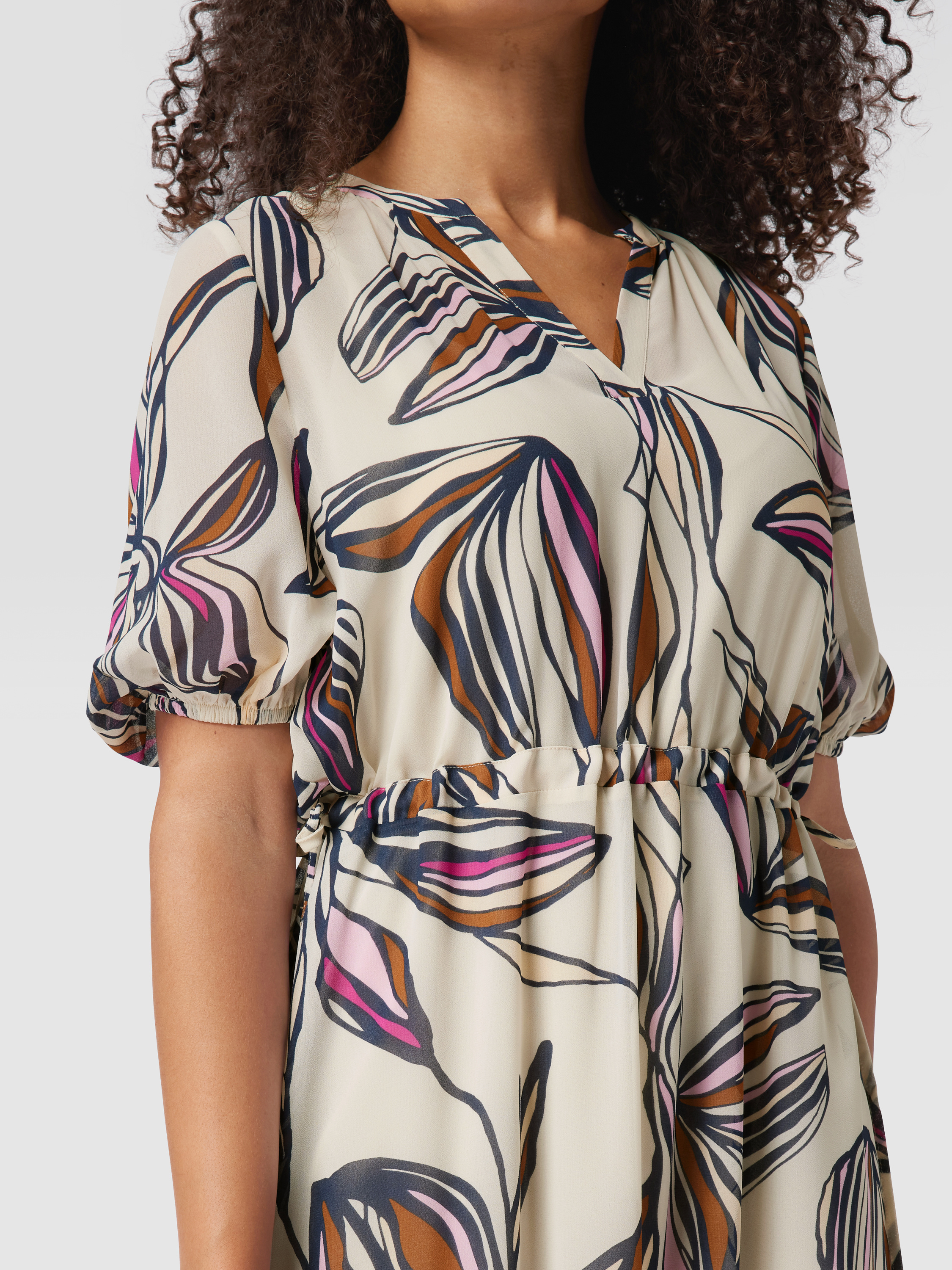 Das Loose Fit Maxikleid von comma vereint Komfort und Stil durch seinen luftigen Schnitt und das grafische Allover-Muster. Der Tunnelzug in der Taille ermöglicht eine individuelle Anpassung, während das blickdichte Unterkleid für angenehme Tragbarkeit sorgt. Die Puffärmel verleihen dem Kleid eine charmante Note.