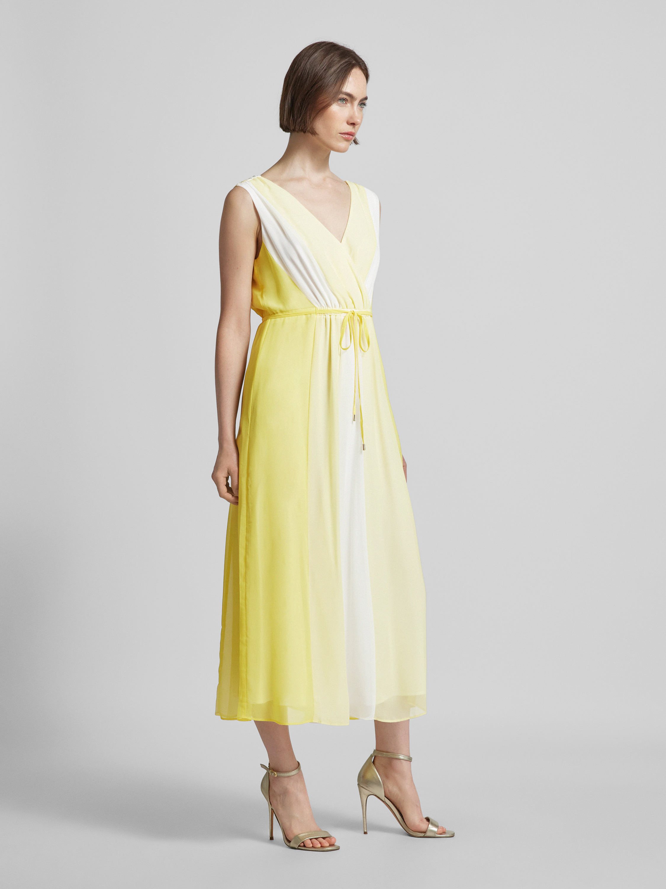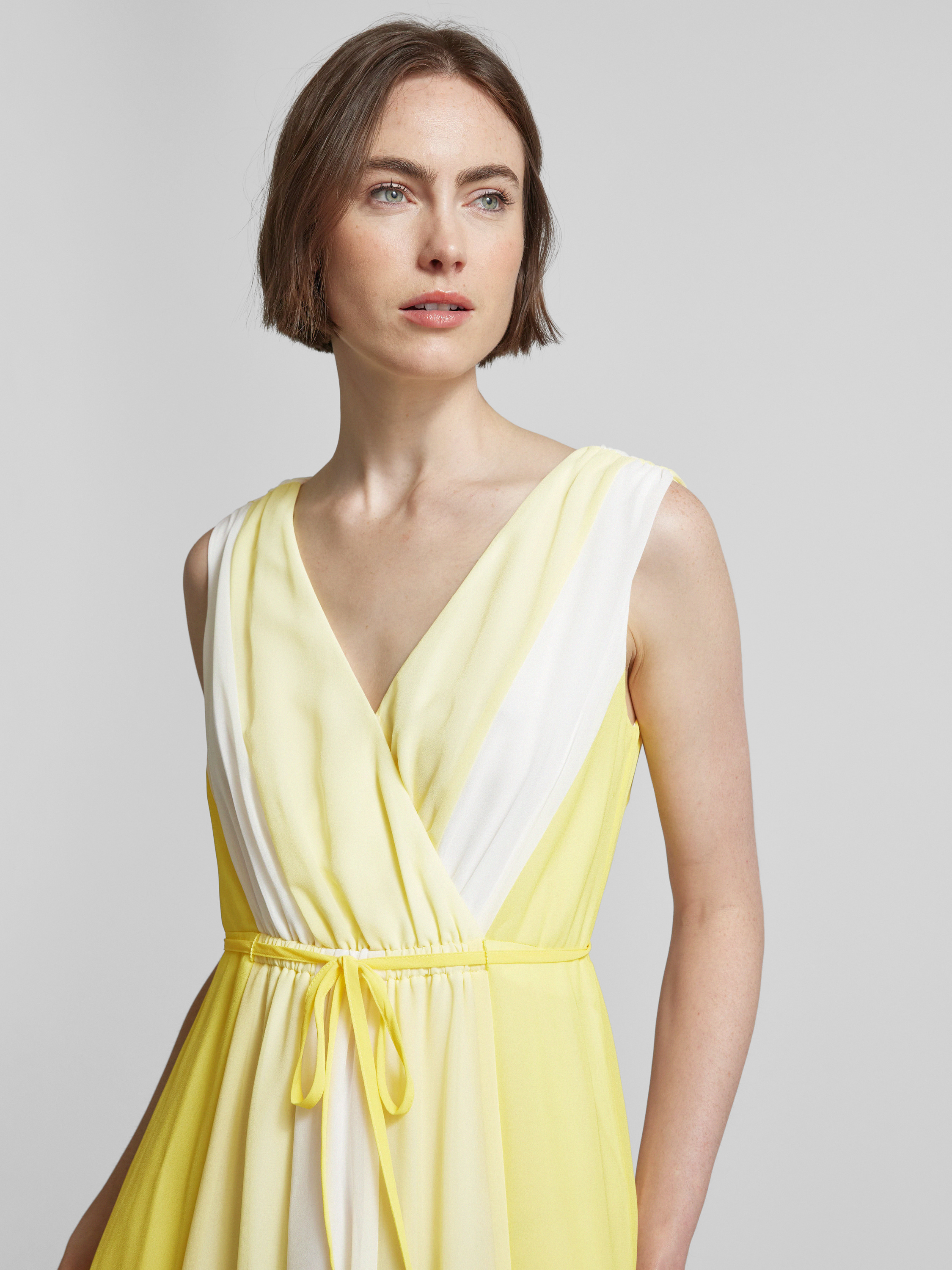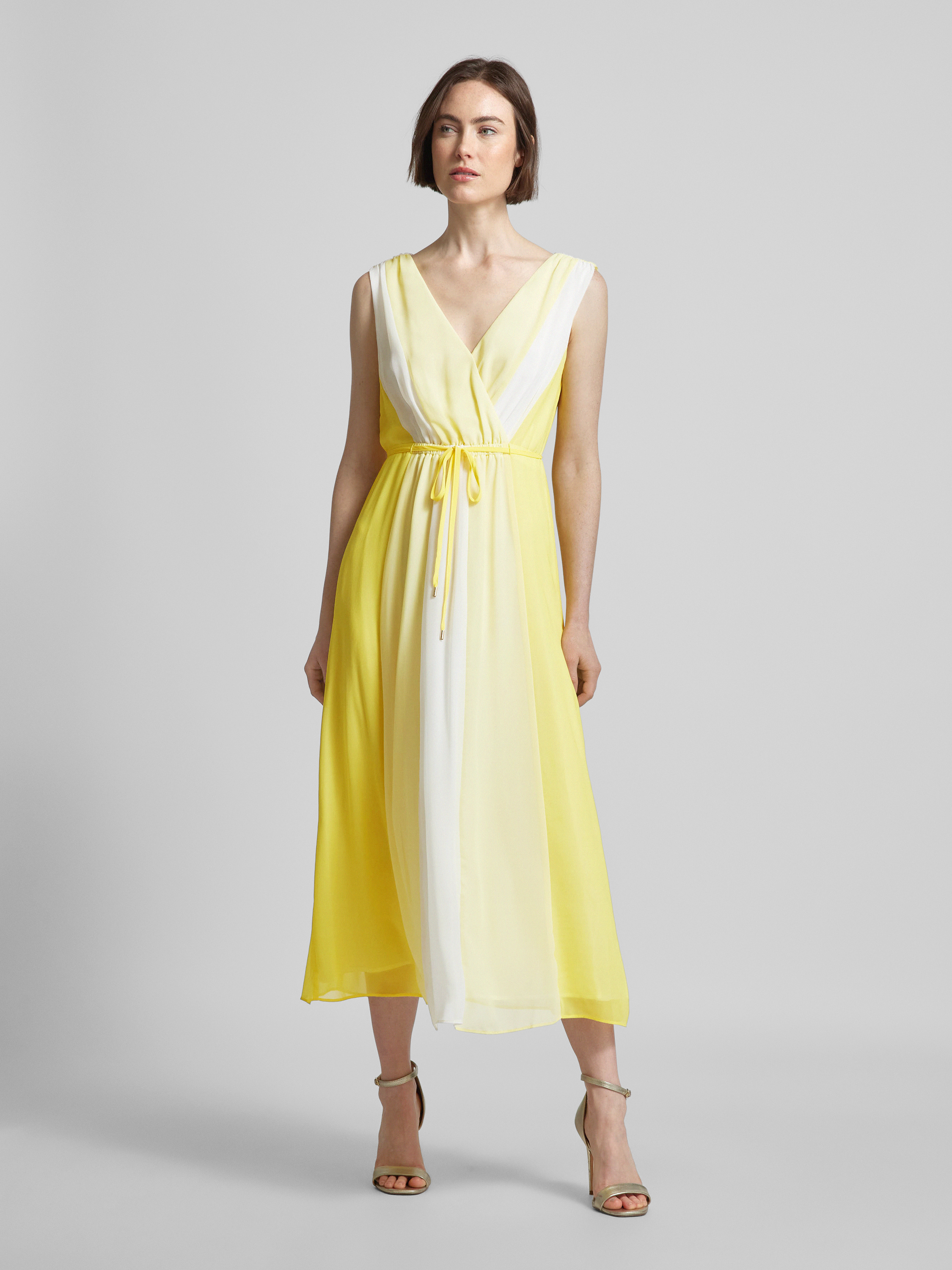 Das Midikleid von comma vereint Eleganz und Komfort durch seinen fließenden Chiffonstoff und die schmeichelhafte A-Linie. Der V-Ausschnitt und die Wickel-Optik verleihen dem Kleid eine feminine Note, während der Bindegürtel die Silhouette dezent betont und anpasst. Ideal für vielseitige Anlässe.