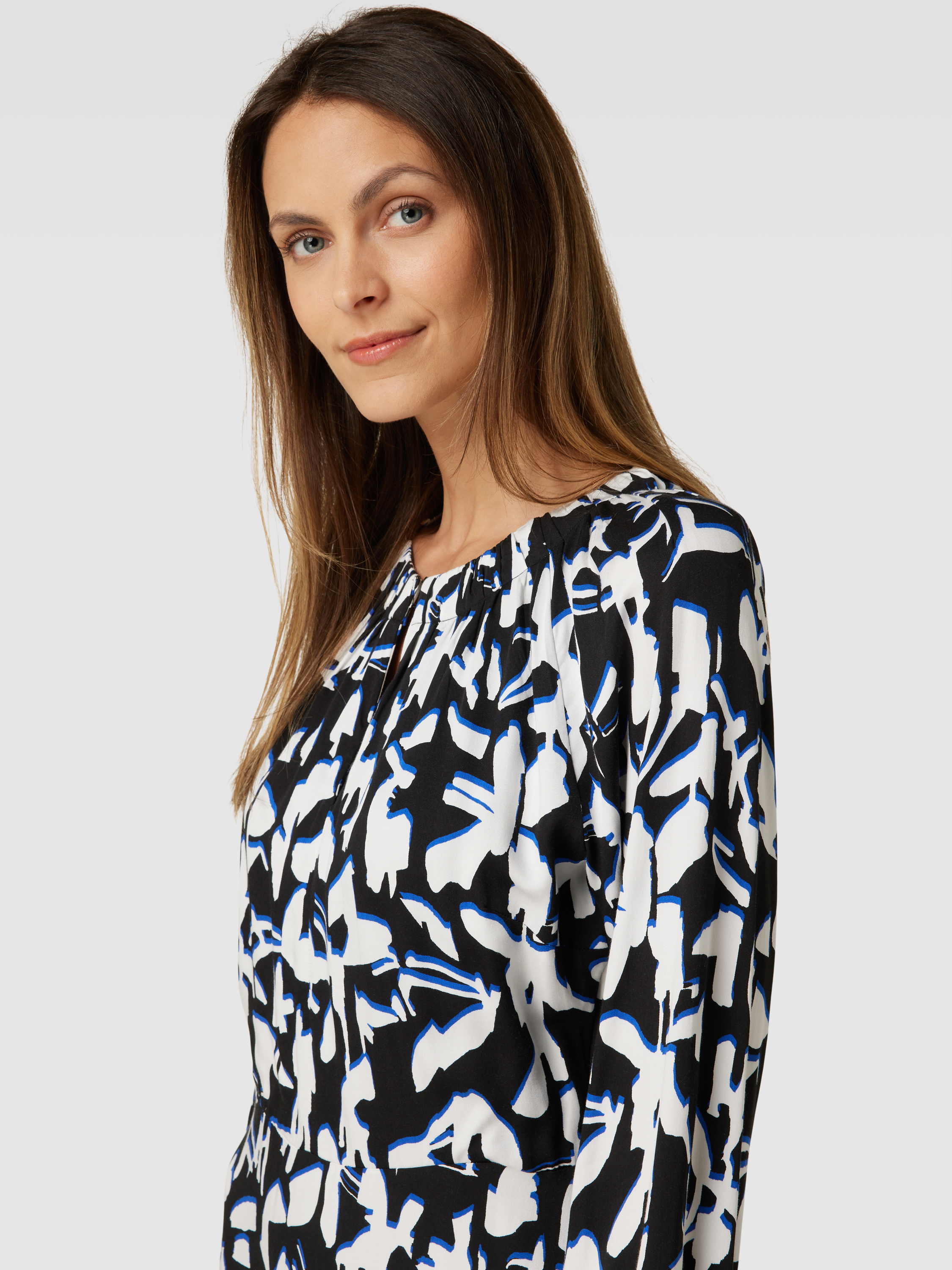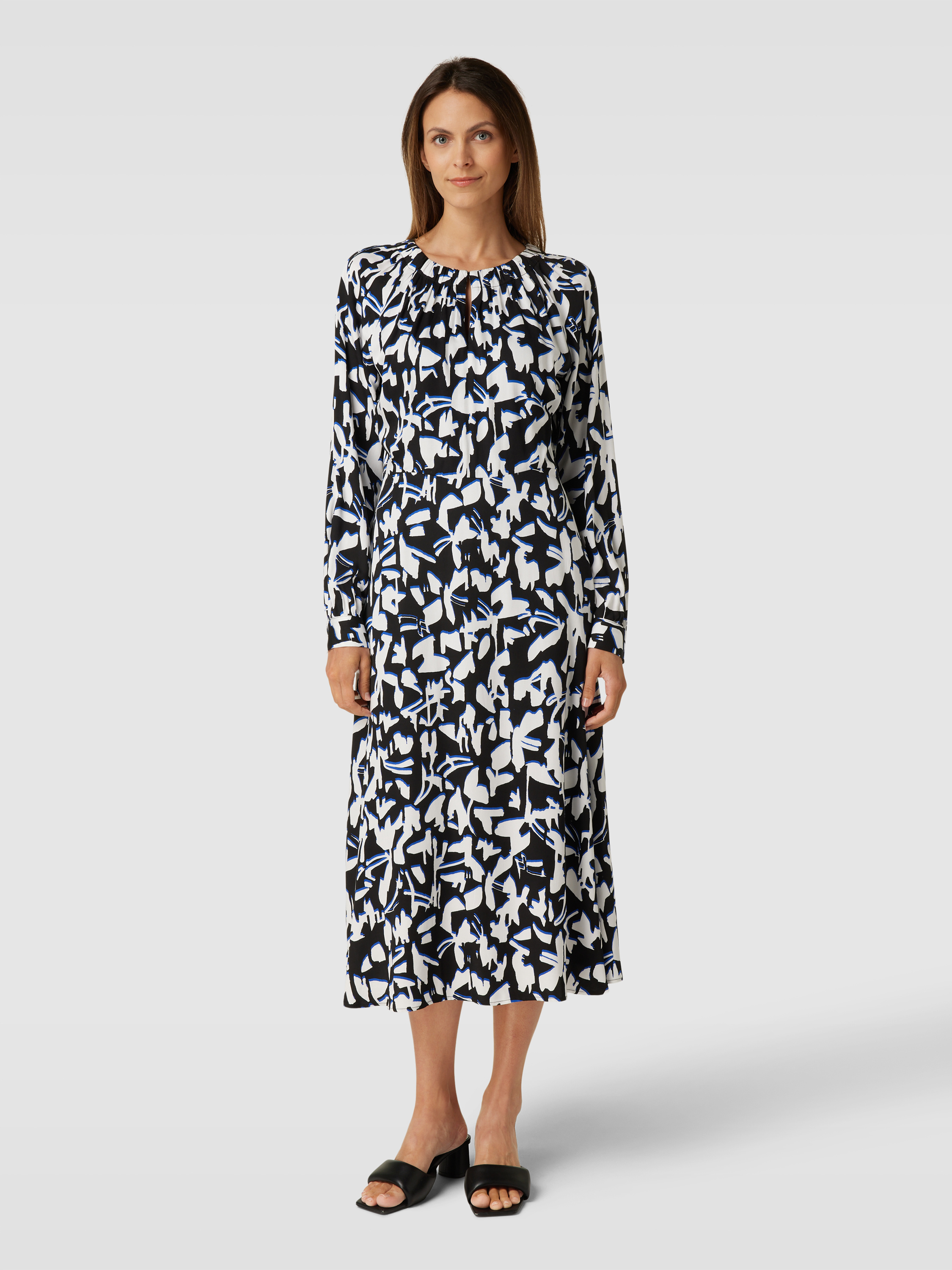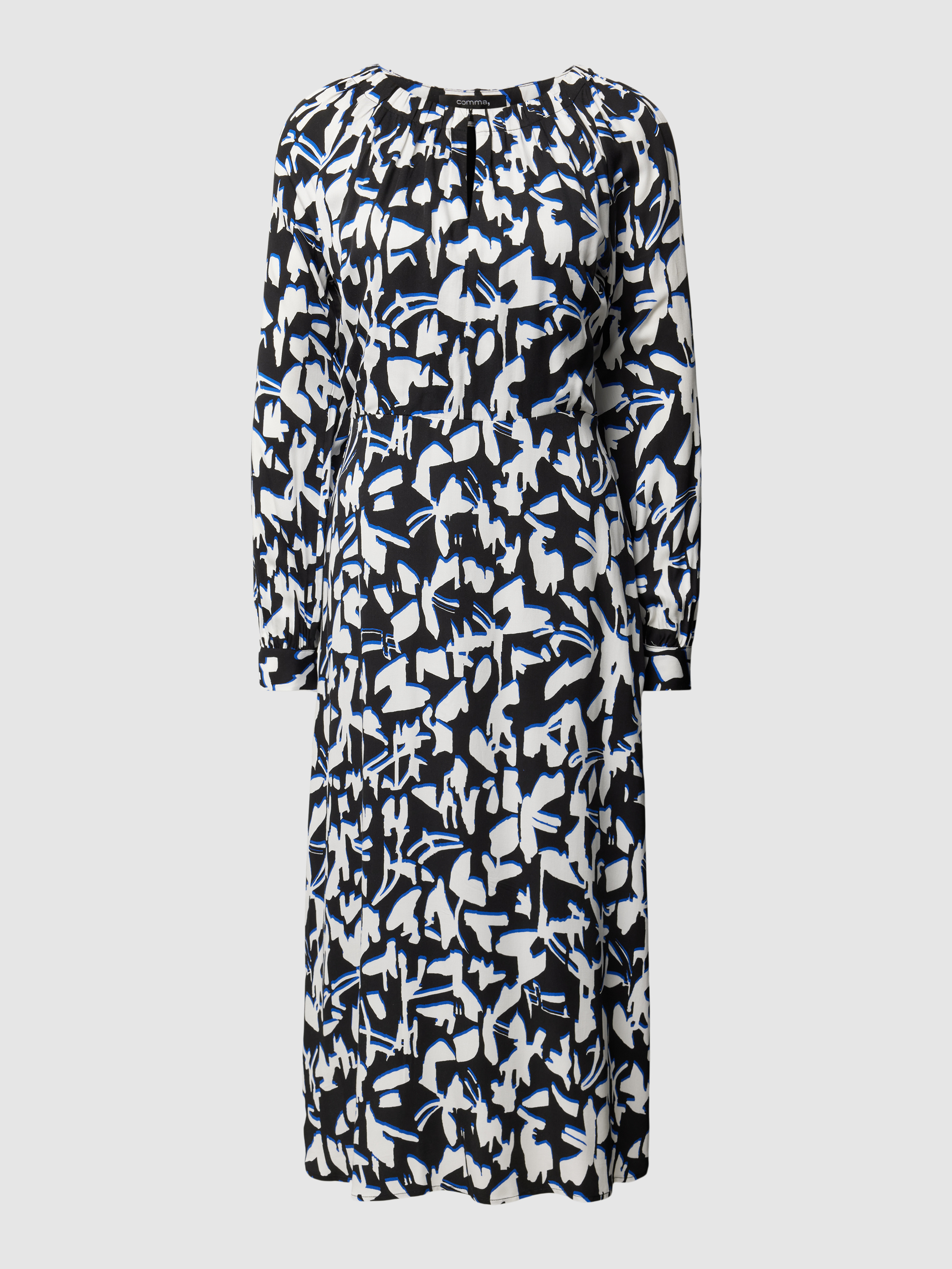 Das Midikleid von comma aus reiner Viskose überzeugt durch seinen taillierten Schnitt und das lebendige Allover-Muster. Der Rundhalsausschnitt und das dezente Cut-Out-Detail verleihen dem Kleid eine besondere Note. Ideal für einen eleganten, aber dennoch lässigen Auftritt.