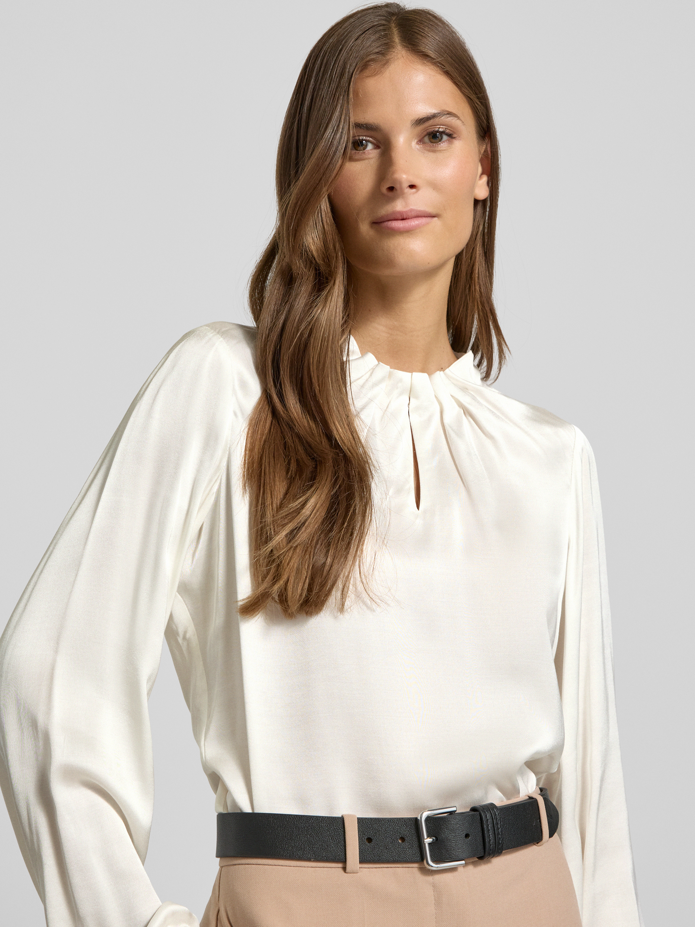 commaRegular Fit Bluse aus Viskose mit gelegten Falten in weiss