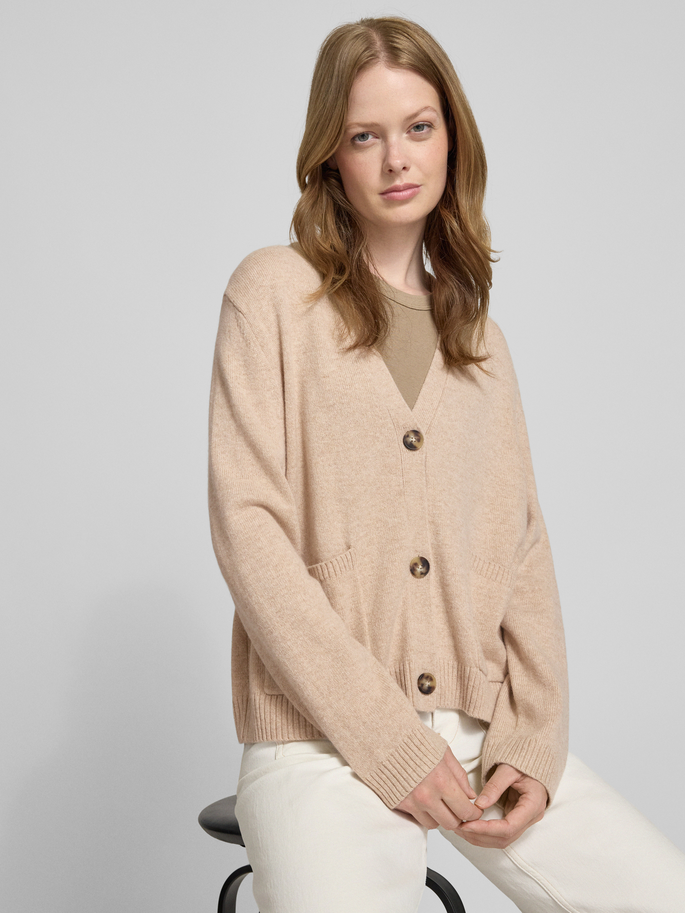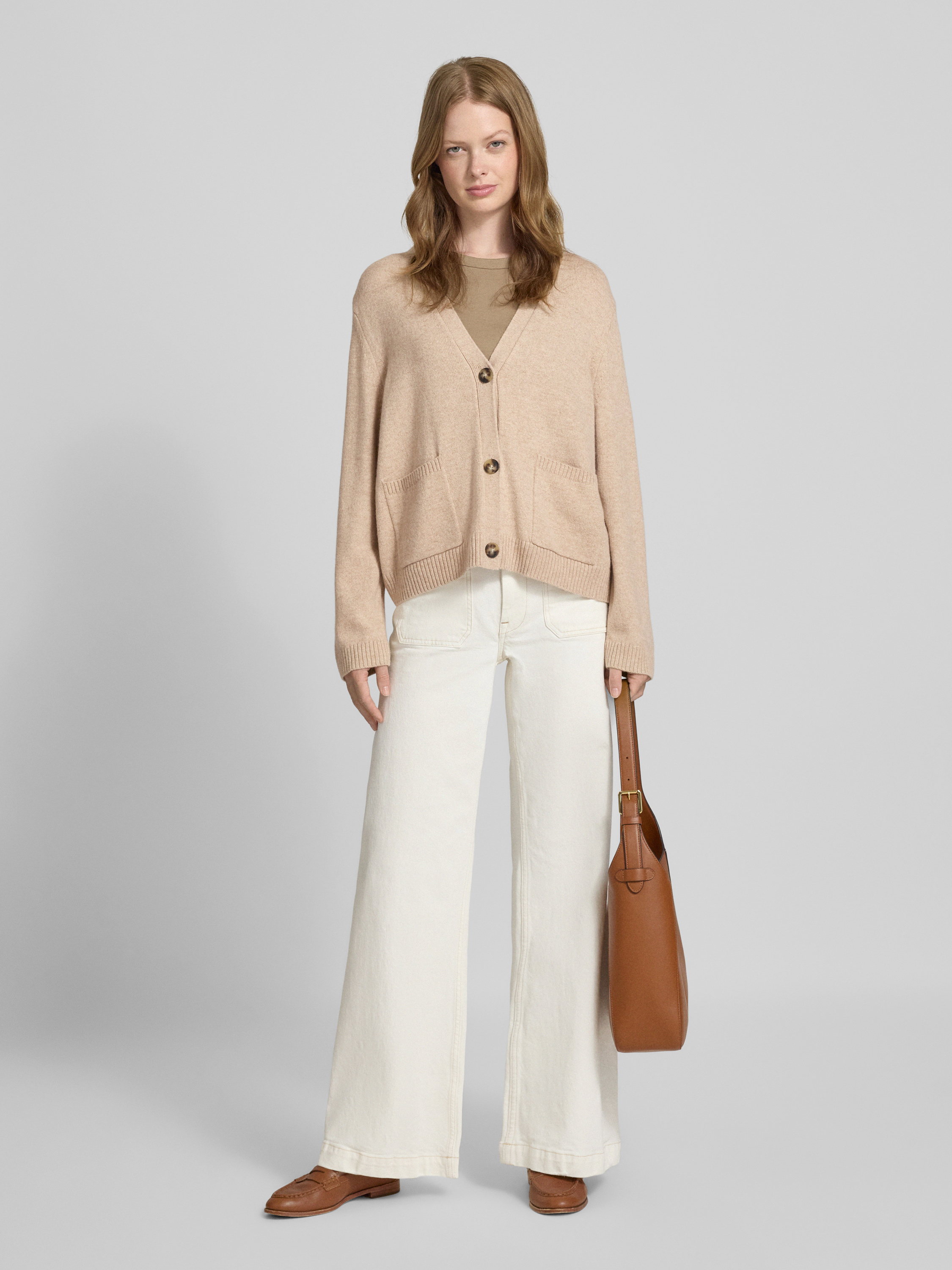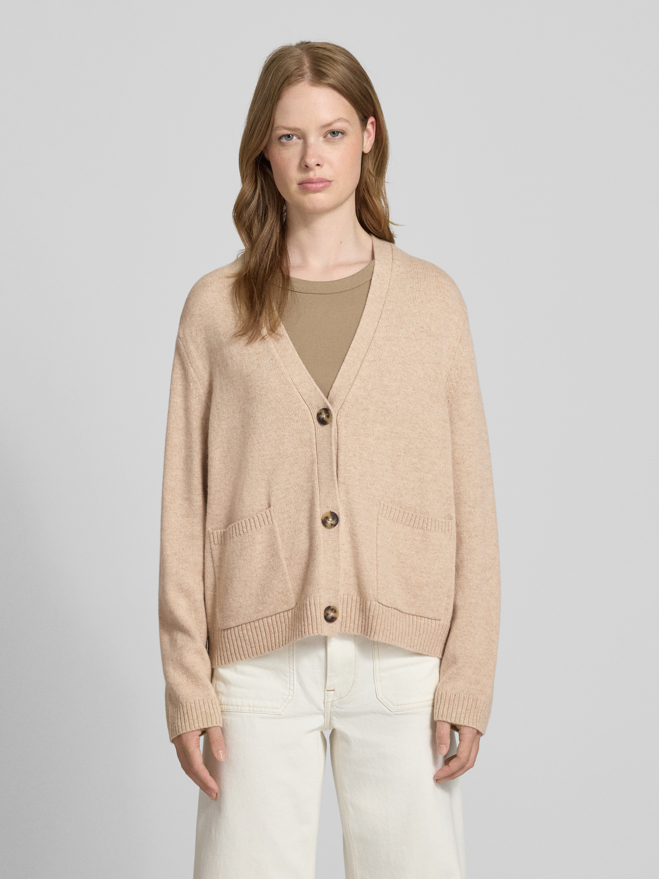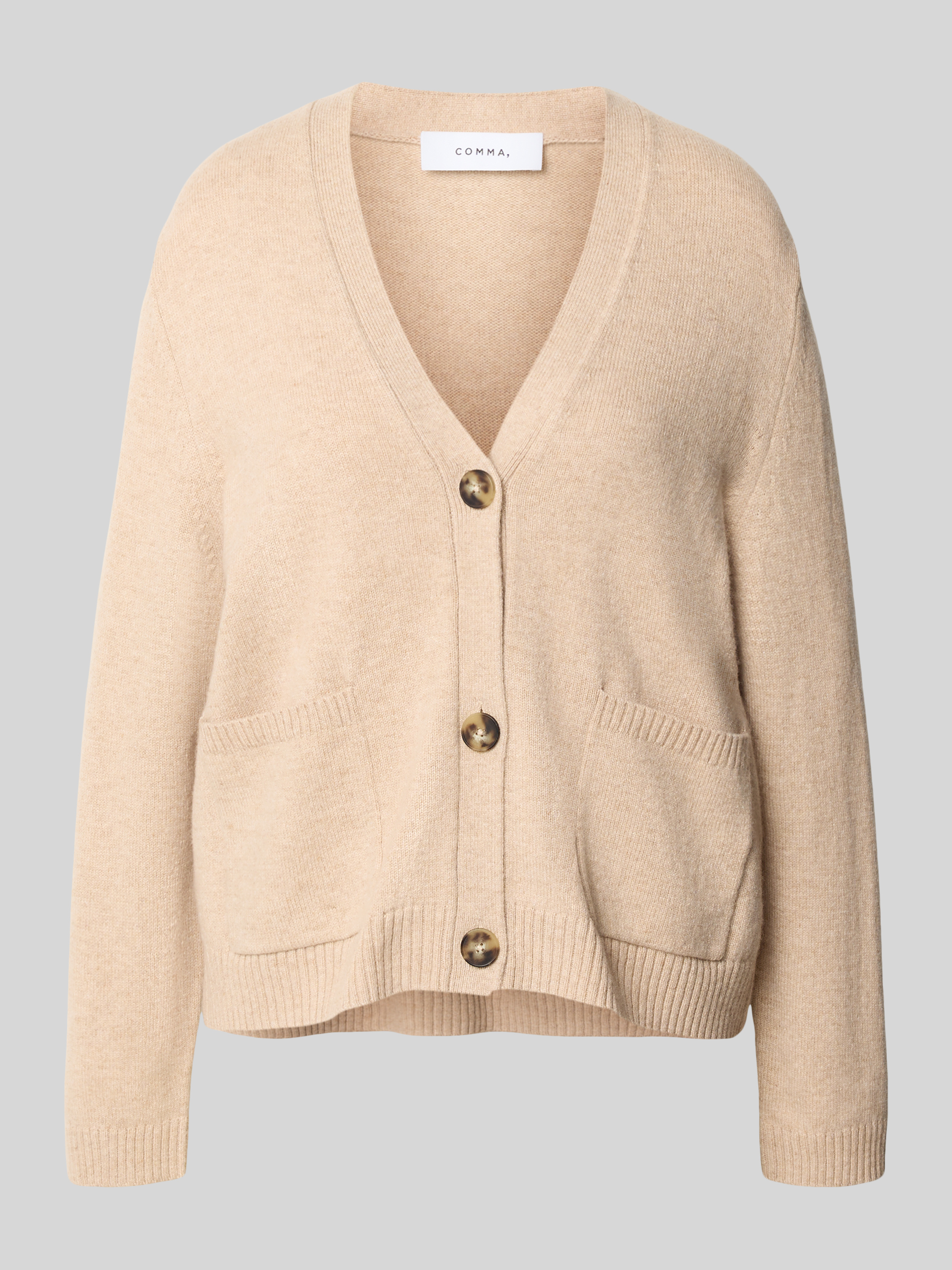 commaStrickjacke aus Woll-Mix mit V-Ausschnitt in sand