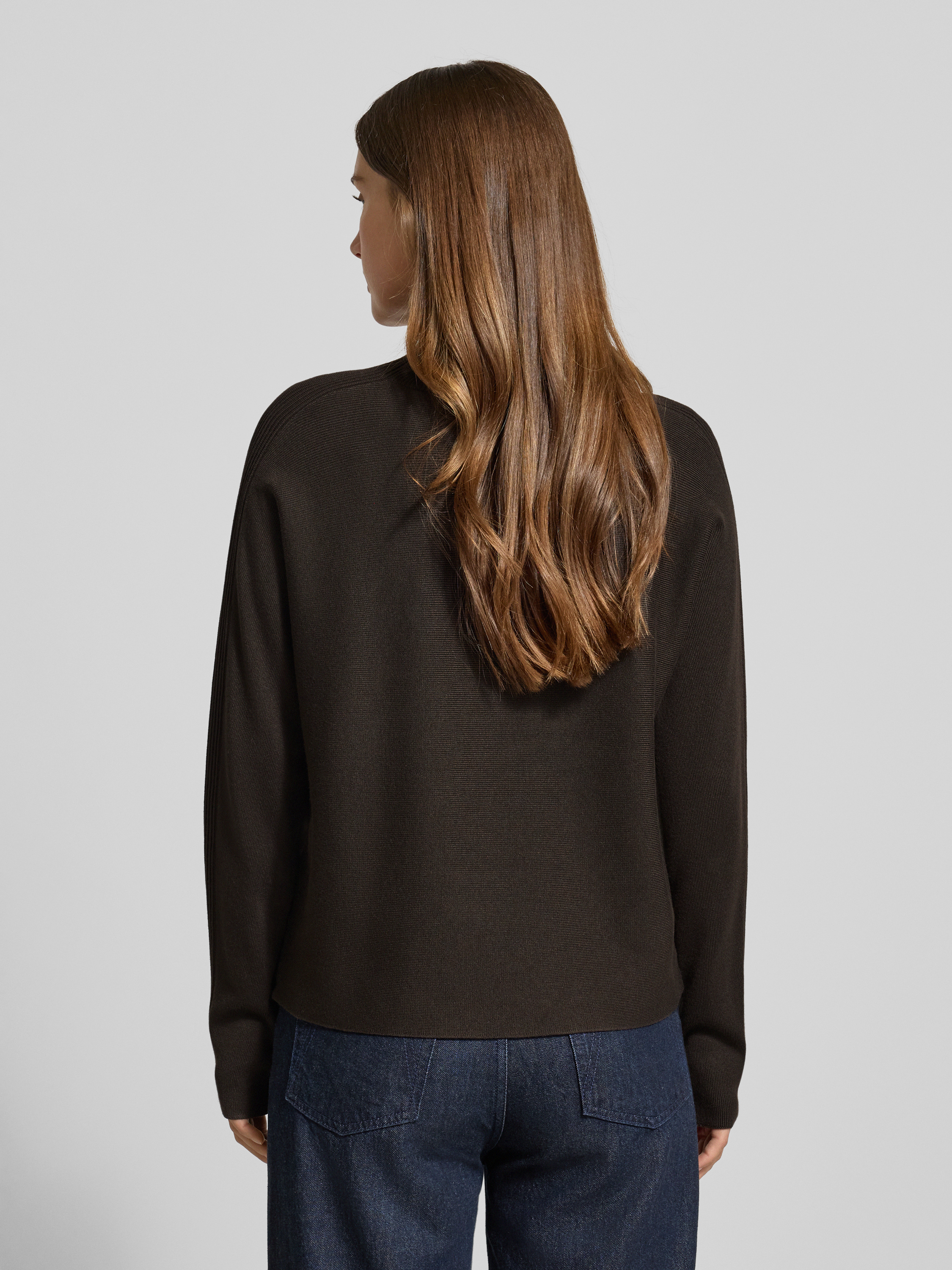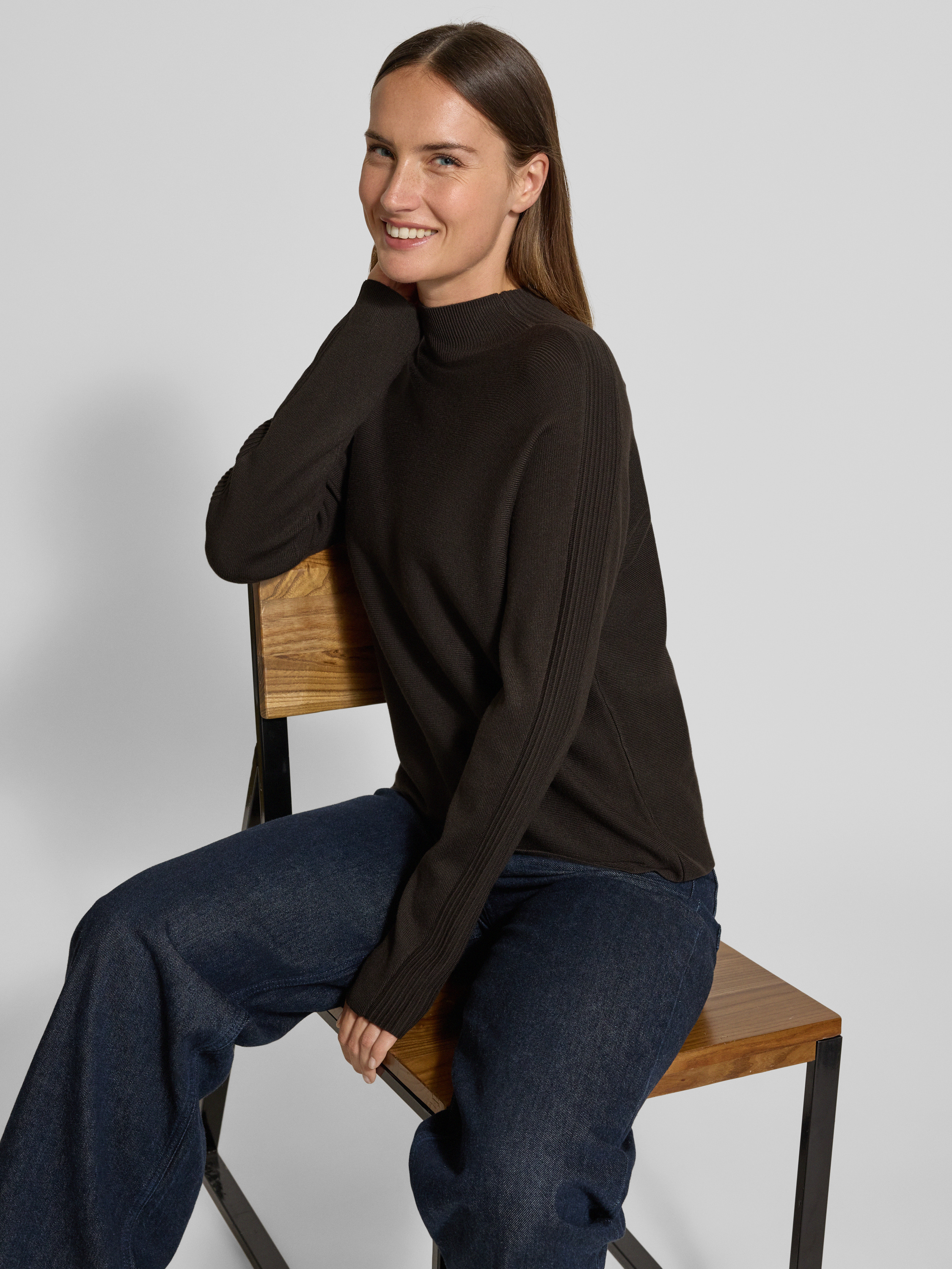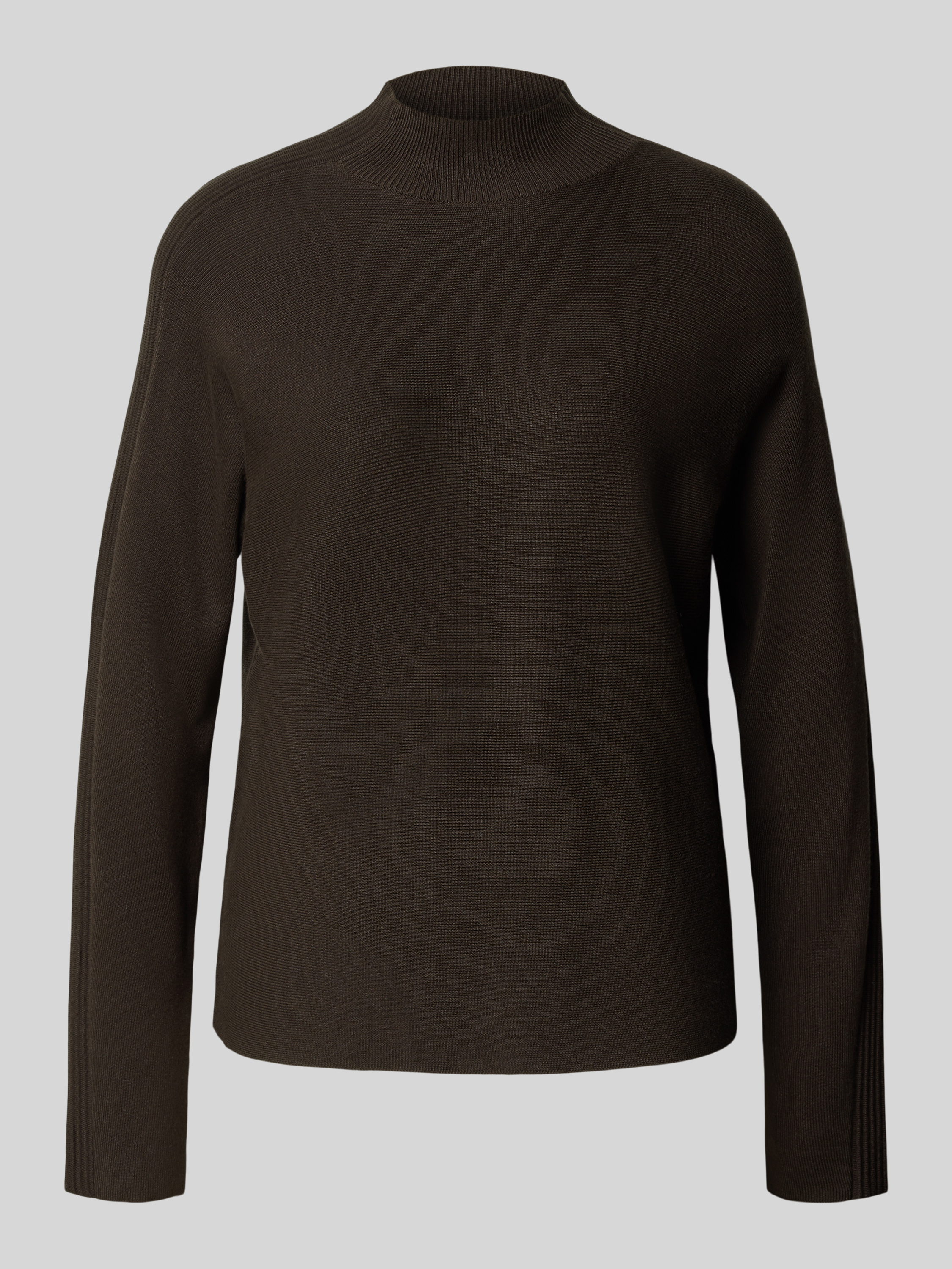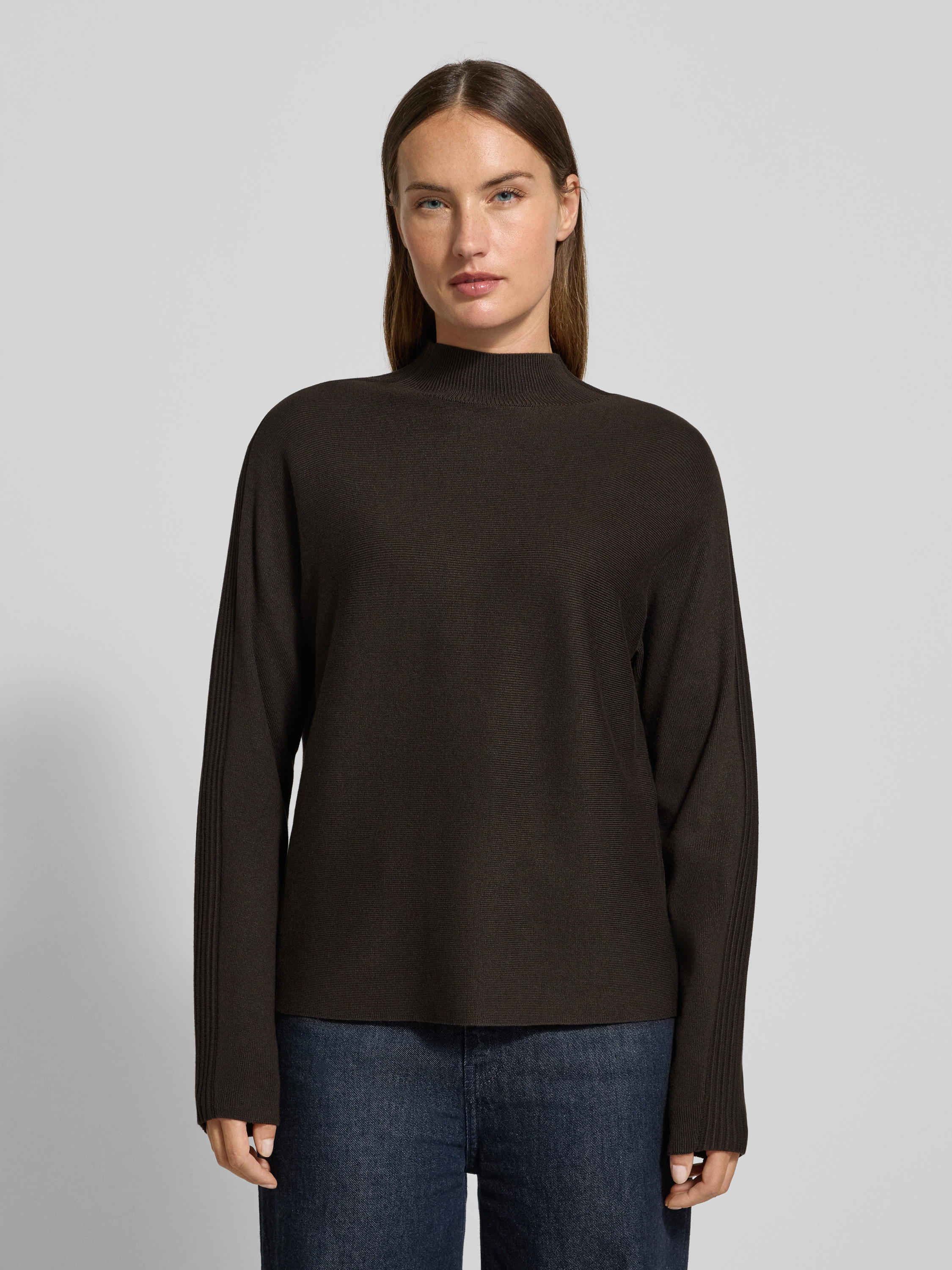 • comma Strickpullover aus Viskose-Mix mit Stehkragen Dunkelbraun