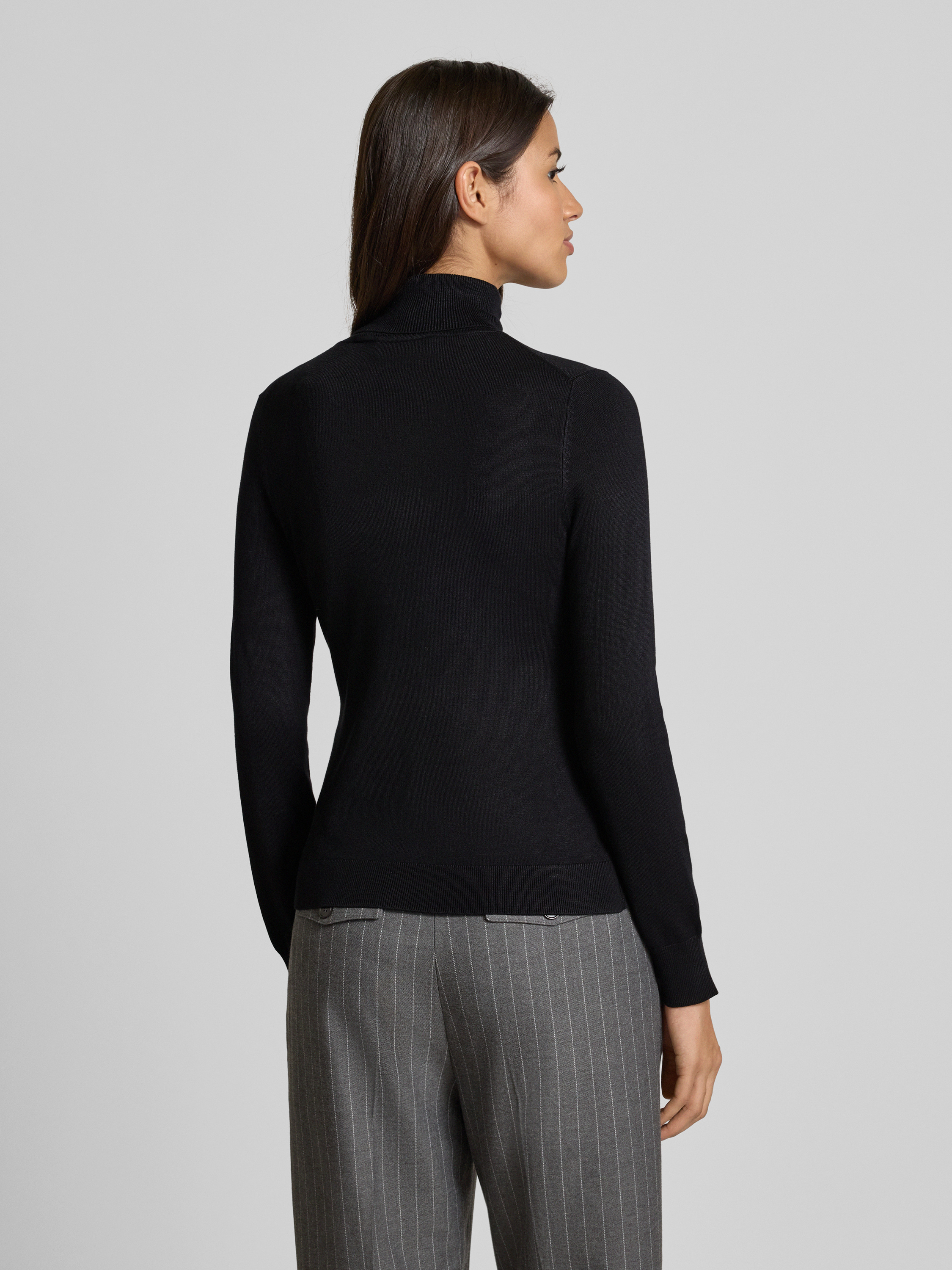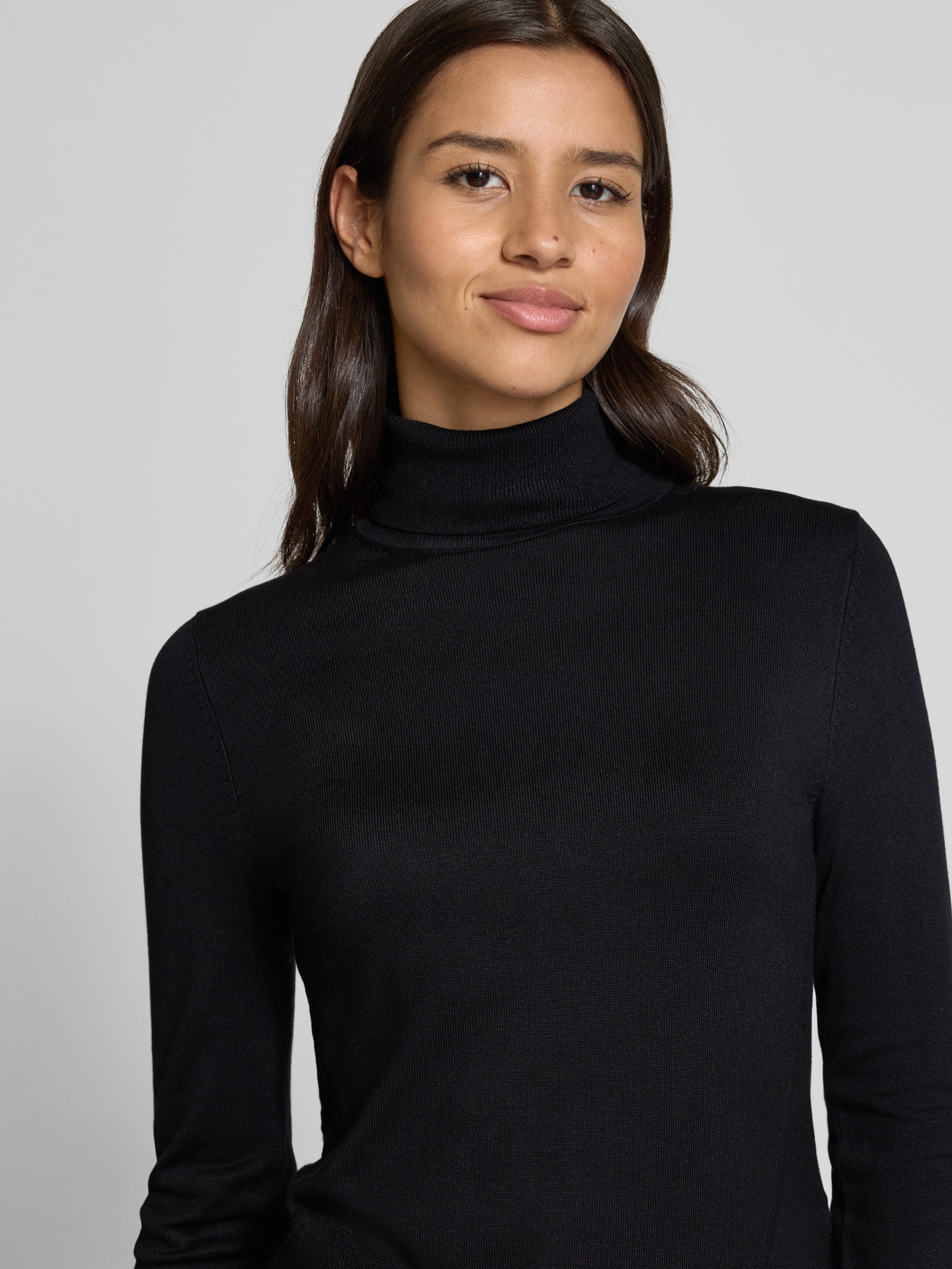 Der Damen Strickpullover von Comma aus Viskose-Mix zeigt sich im Regular-Fit und sorgt durch den Rollkragen für ein angenehmes Tragegefühl. Die gerippten Abschlüsse runden das Design dezent ab, wodurch der Pullover vielseitig kombiniert werden kann. So entsteht ein unkomplizierter Begleiter für den Alltag.