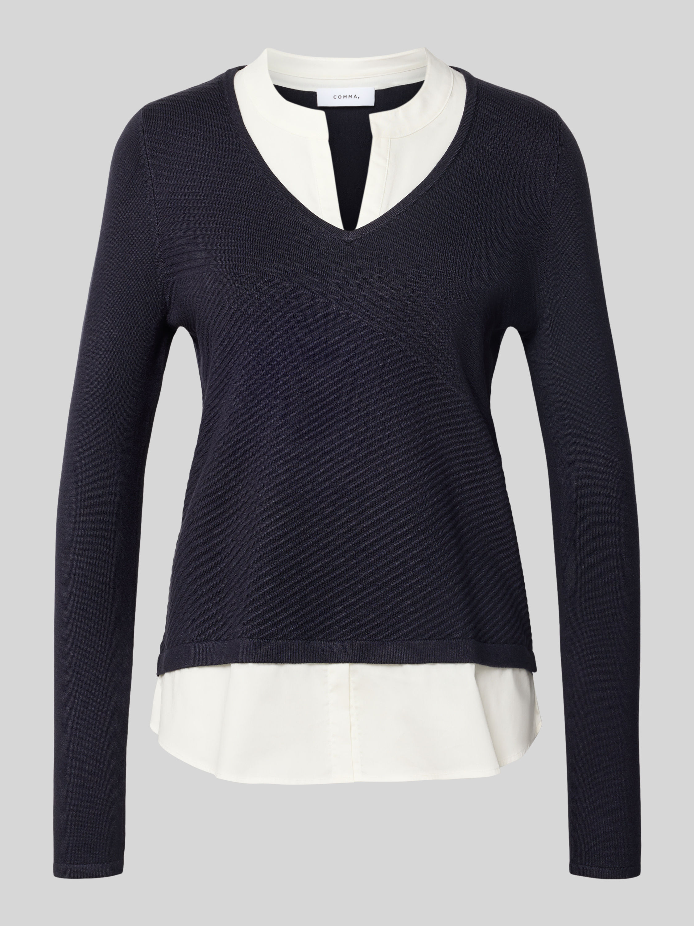 Der Strickpullover mit Strukturmuster von comma legt sich dank des Baumwoll-Mix angenehm an die Haut und bringt durch seine körpernahe Form eine moderne Linie in jedes Outfit. Das markante Muster unterstreicht die schlichte Eleganz, während der abgerundete V-Ausschnitt den Look abrundet. Für Tage, an denen Bewegungsfreiheit und Komfort gefragt sind, eignet sich dieser Pullover besonders.
