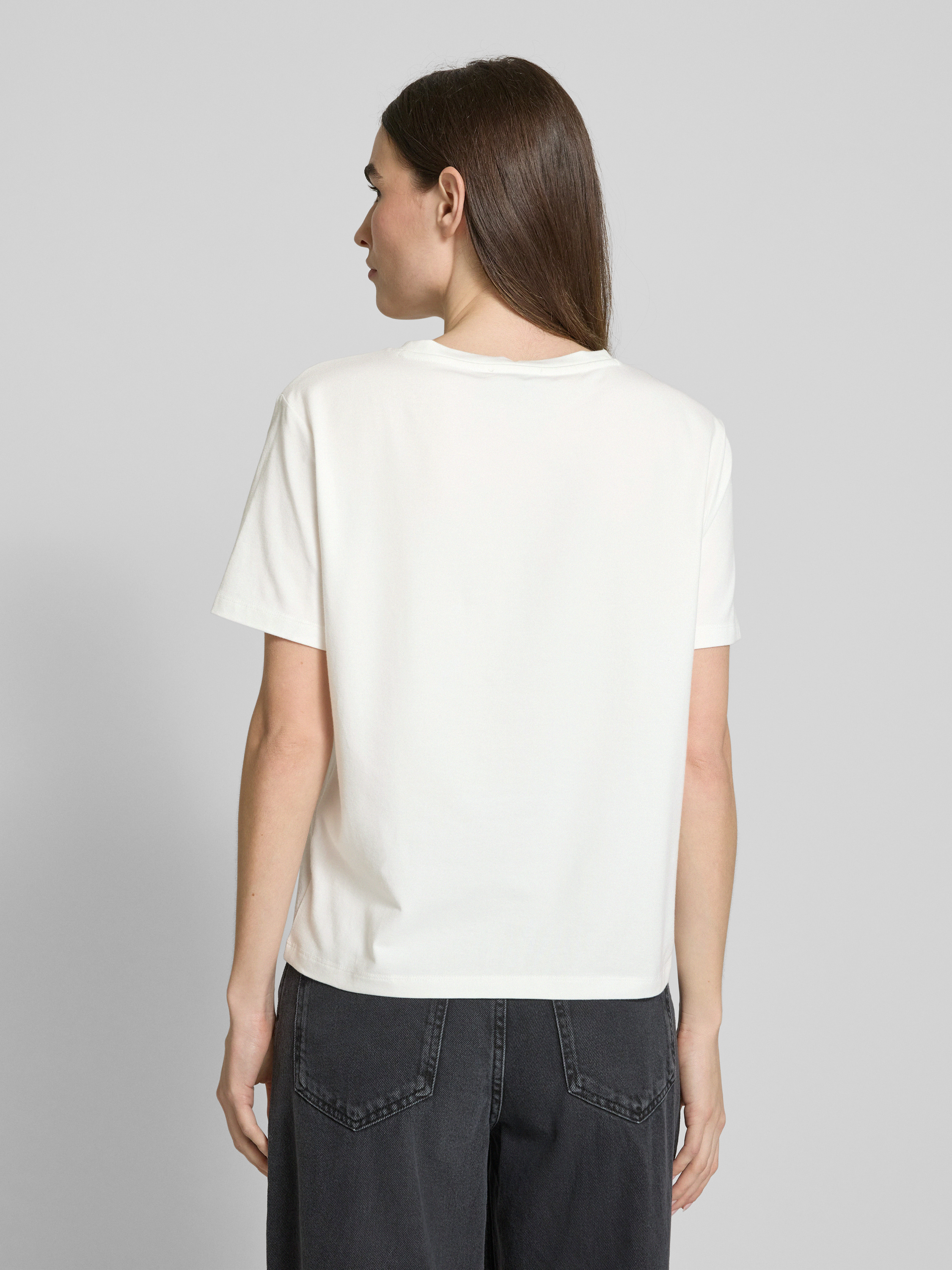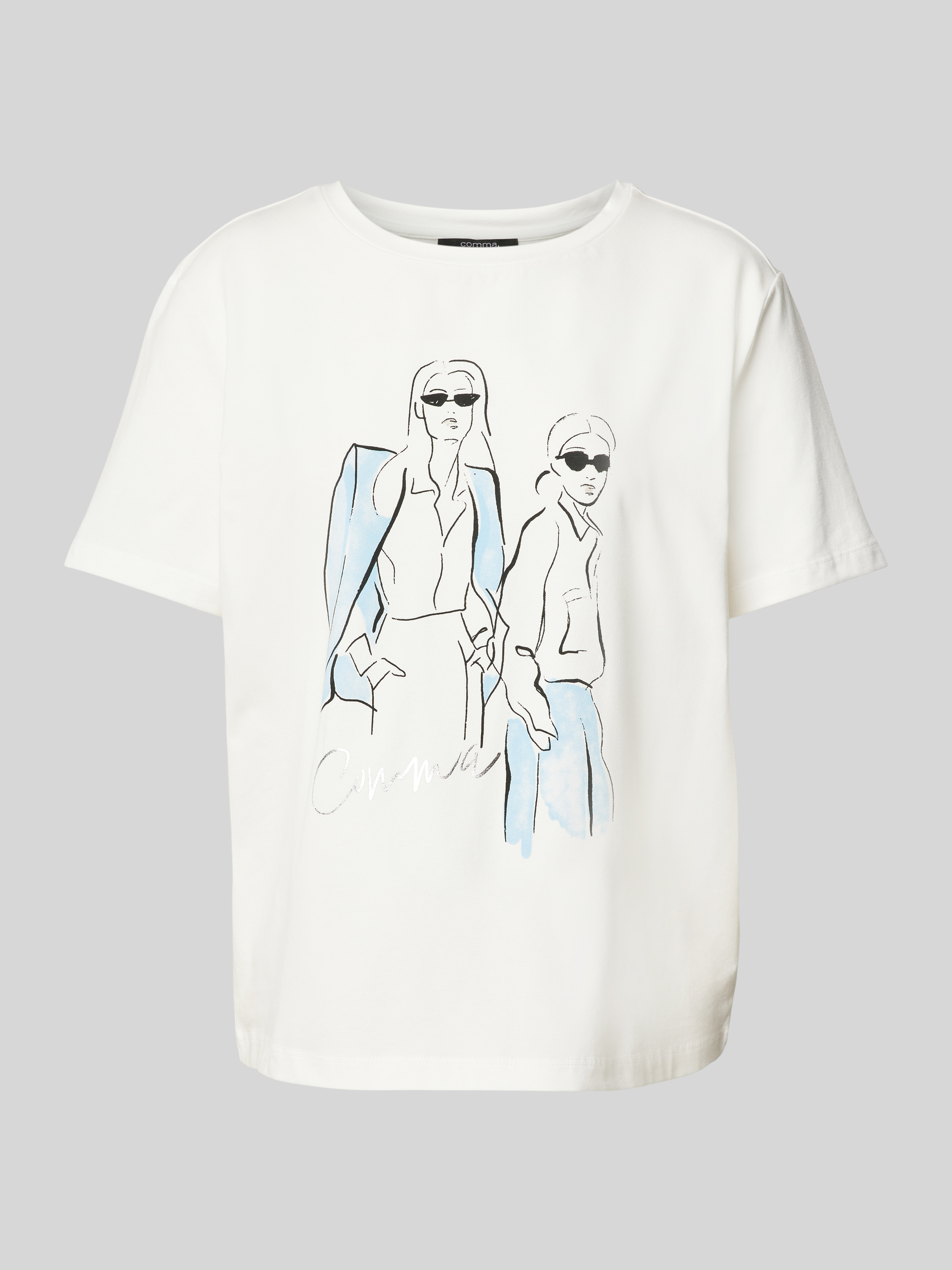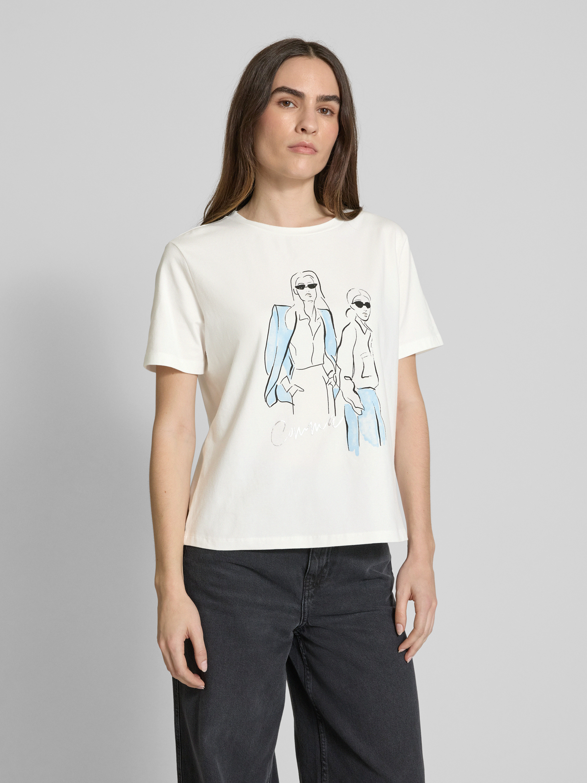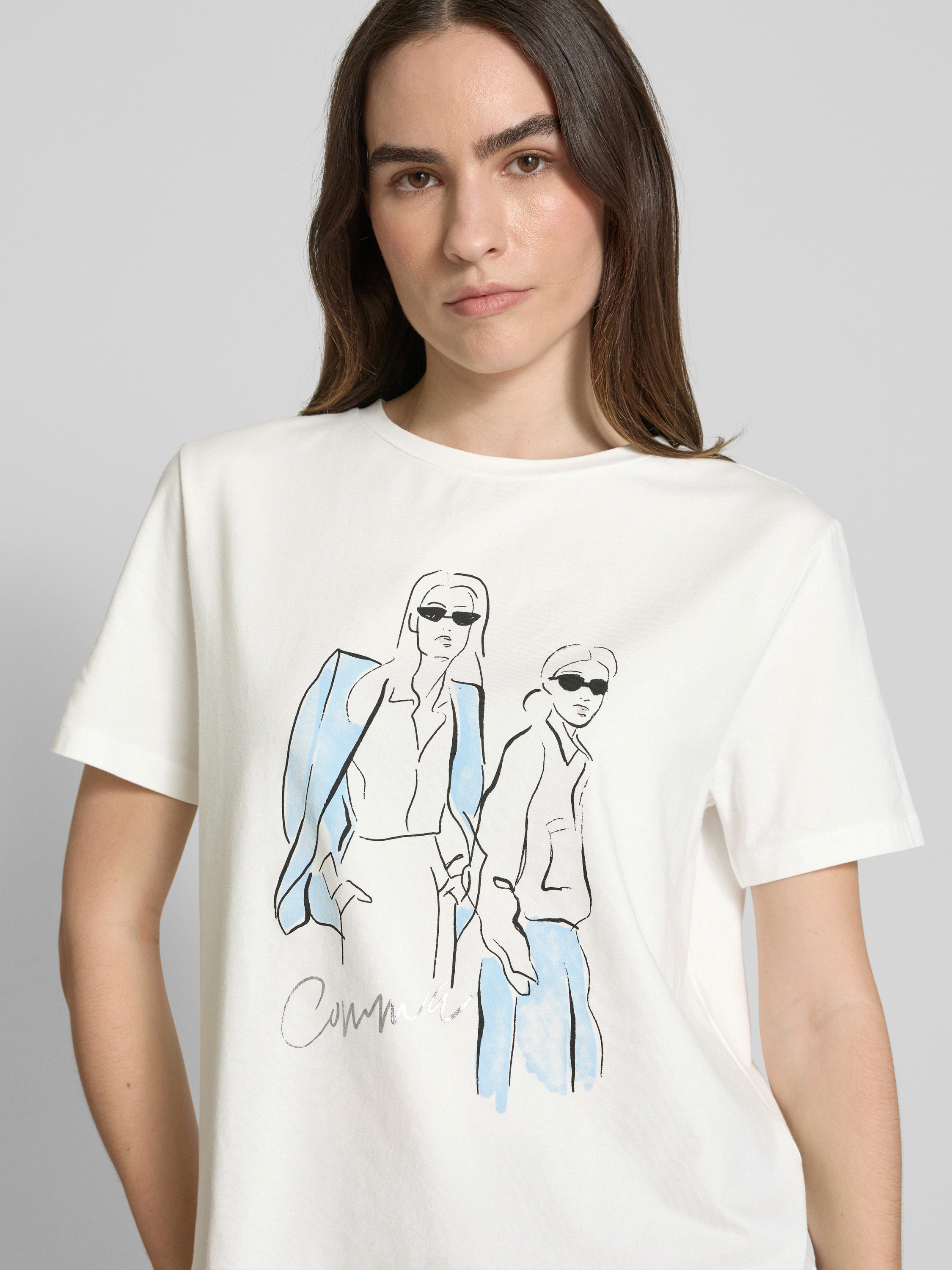Das Damen T-Shirt von comma kombiniert einen Baumwoll-Modal-Mix mit Stretch-Anteil, was für ein angenehmes Tragegefühl sorgt. Der Regular Fit und der gerippte Rundhalsausschnitt bieten eine bequeme Passform. Ein origineller Motiv-Print verleiht dem Kleidungsstück eine kreative Note.