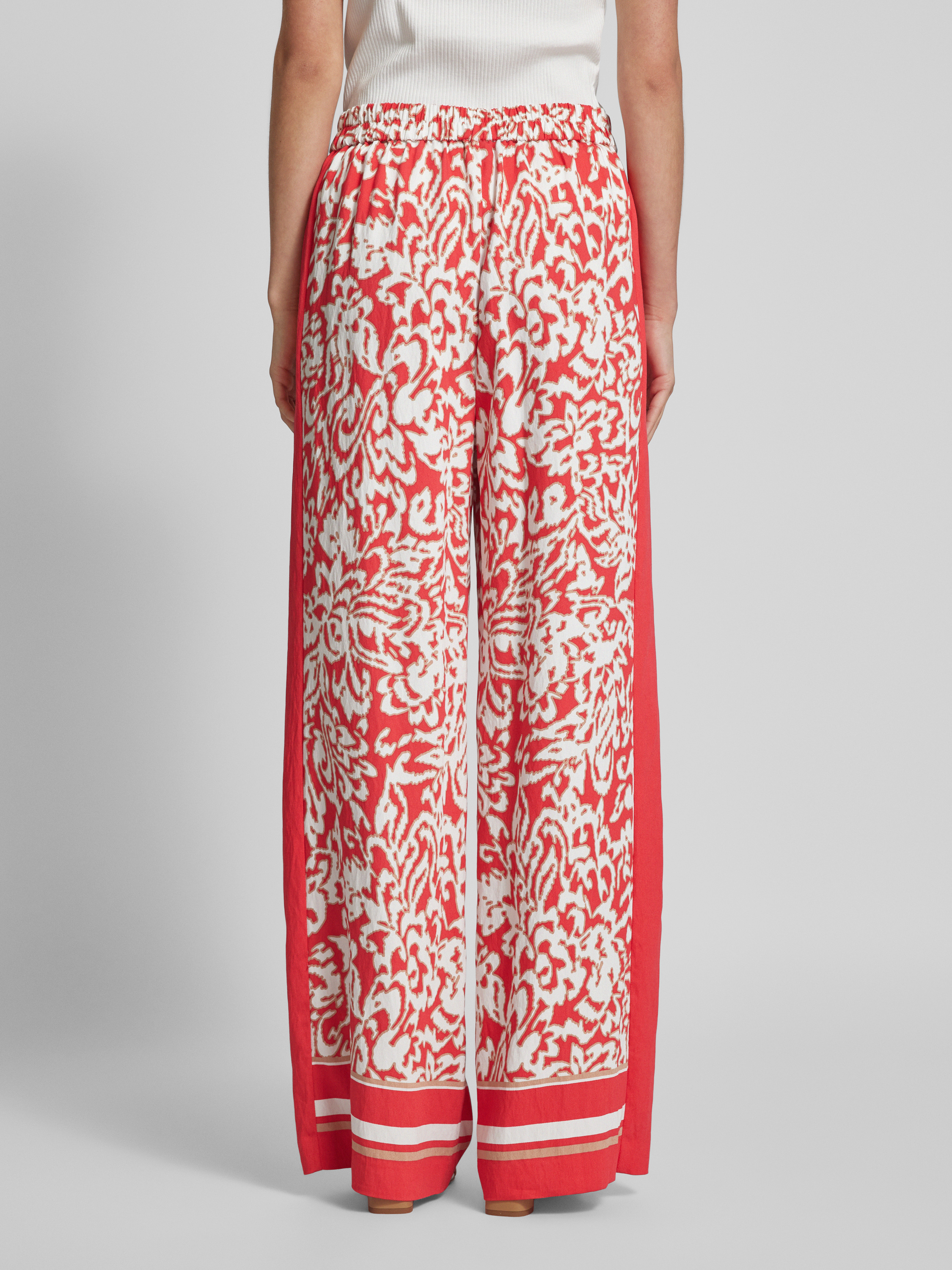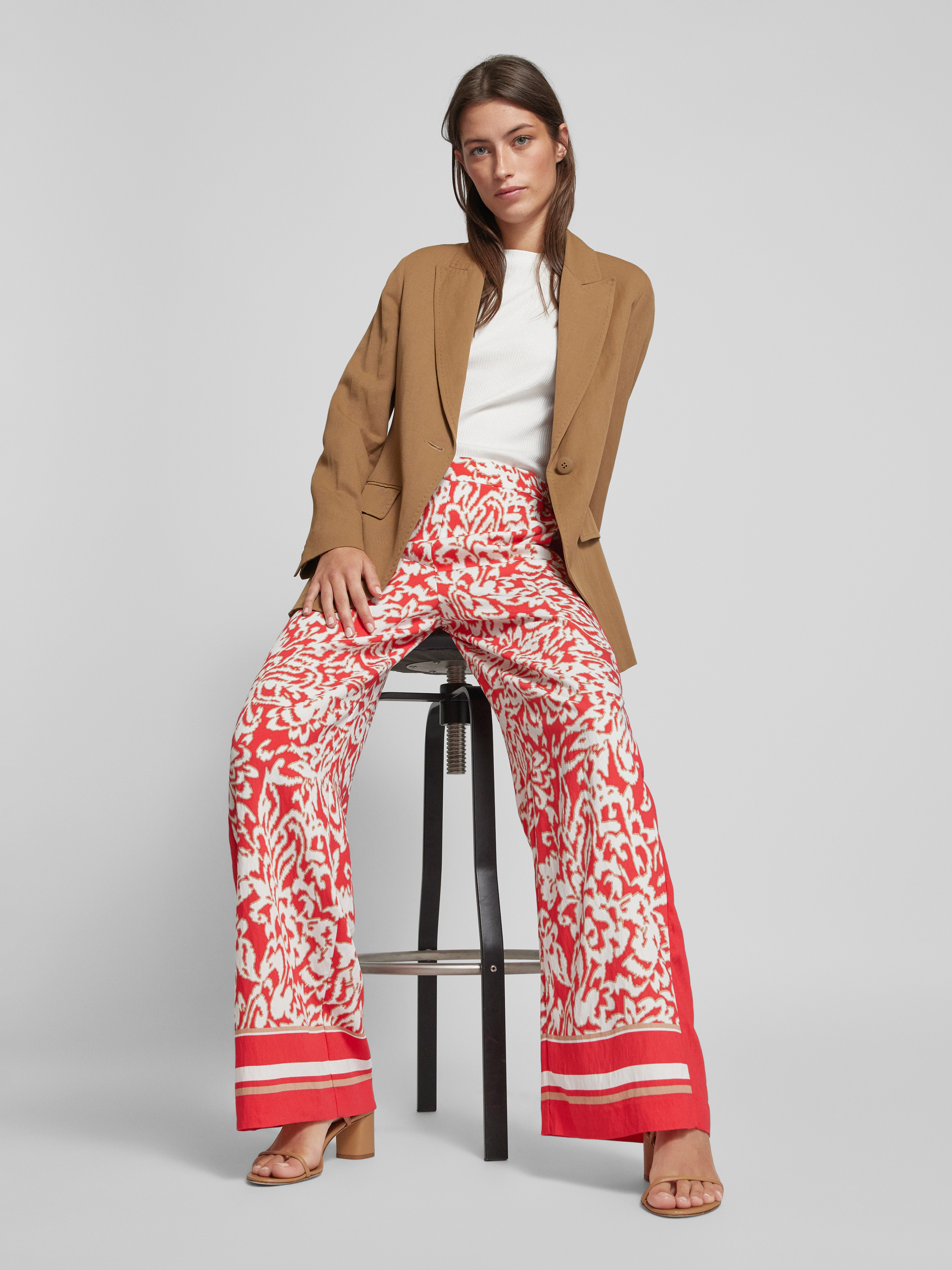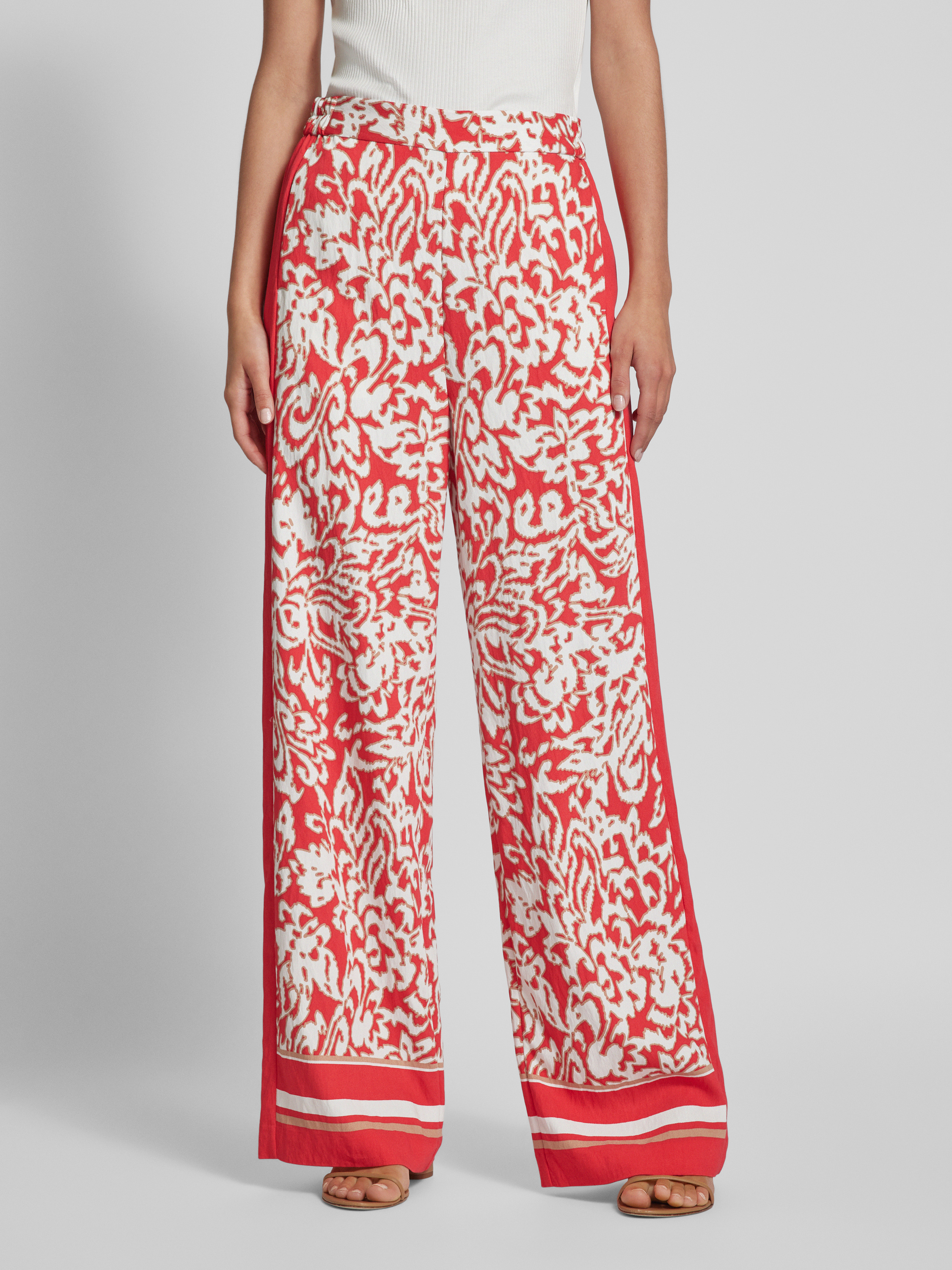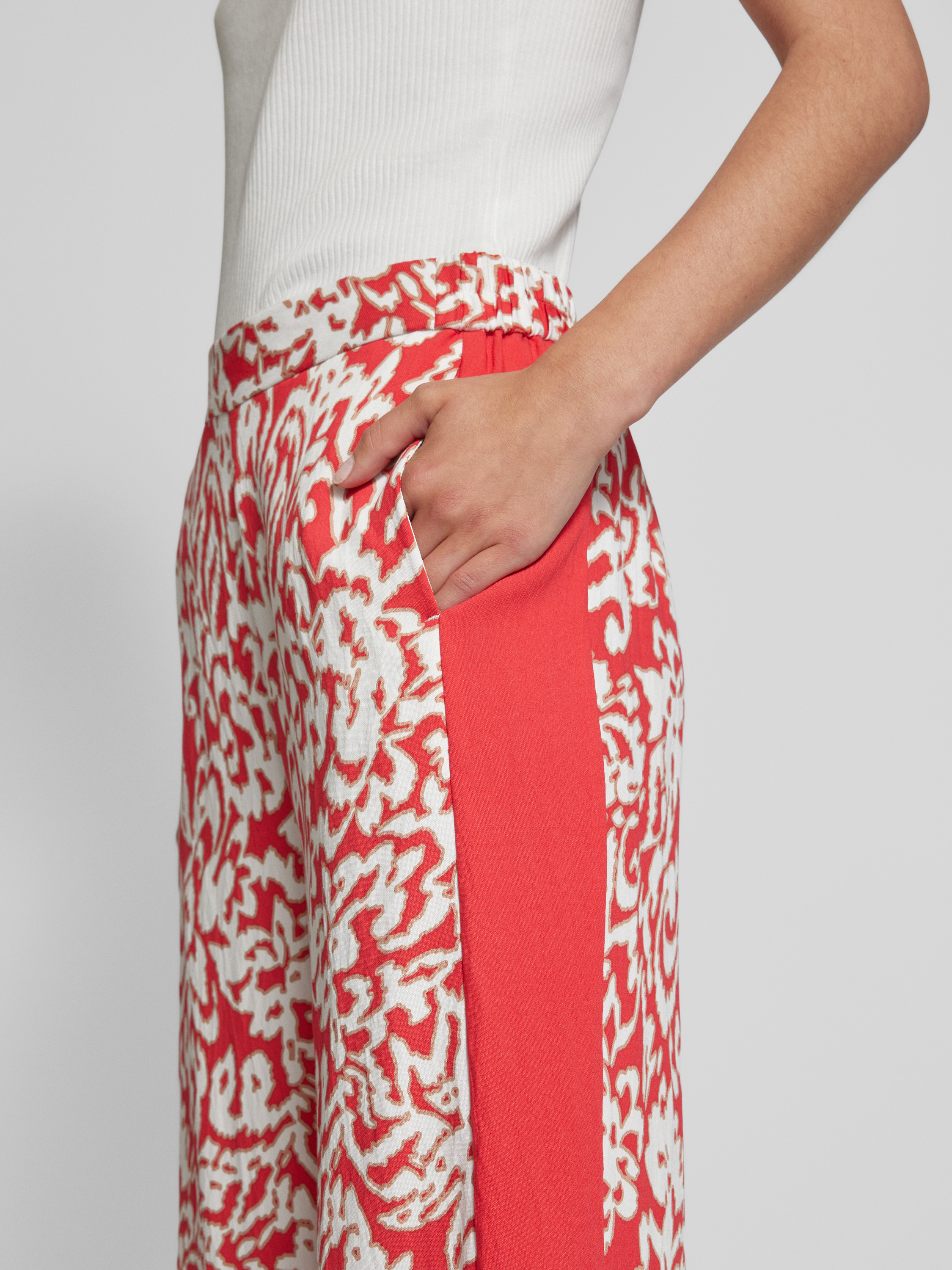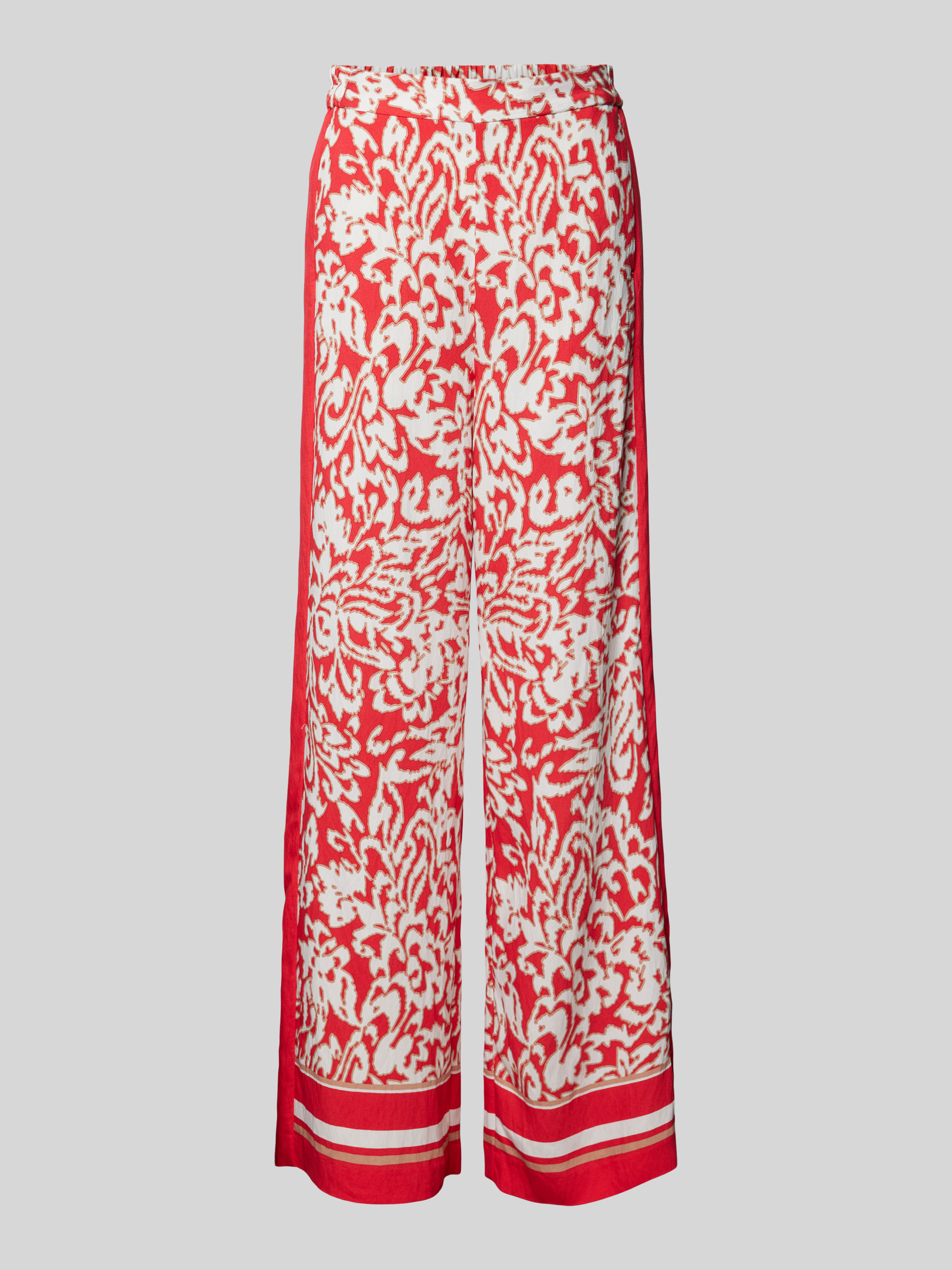 Die Wide Leg Stoffhose von comma kombiniert einen fließenden Viskose-Mix mit einem lebendigen Allover-Print, was sie zu einem vielseitigen Begleiter macht. Der weite Schnitt sorgt für angenehmen Tragekomfort und Bewegungsfreiheit. Dank des elastischen Bundes passt sie sich mühelos an.
