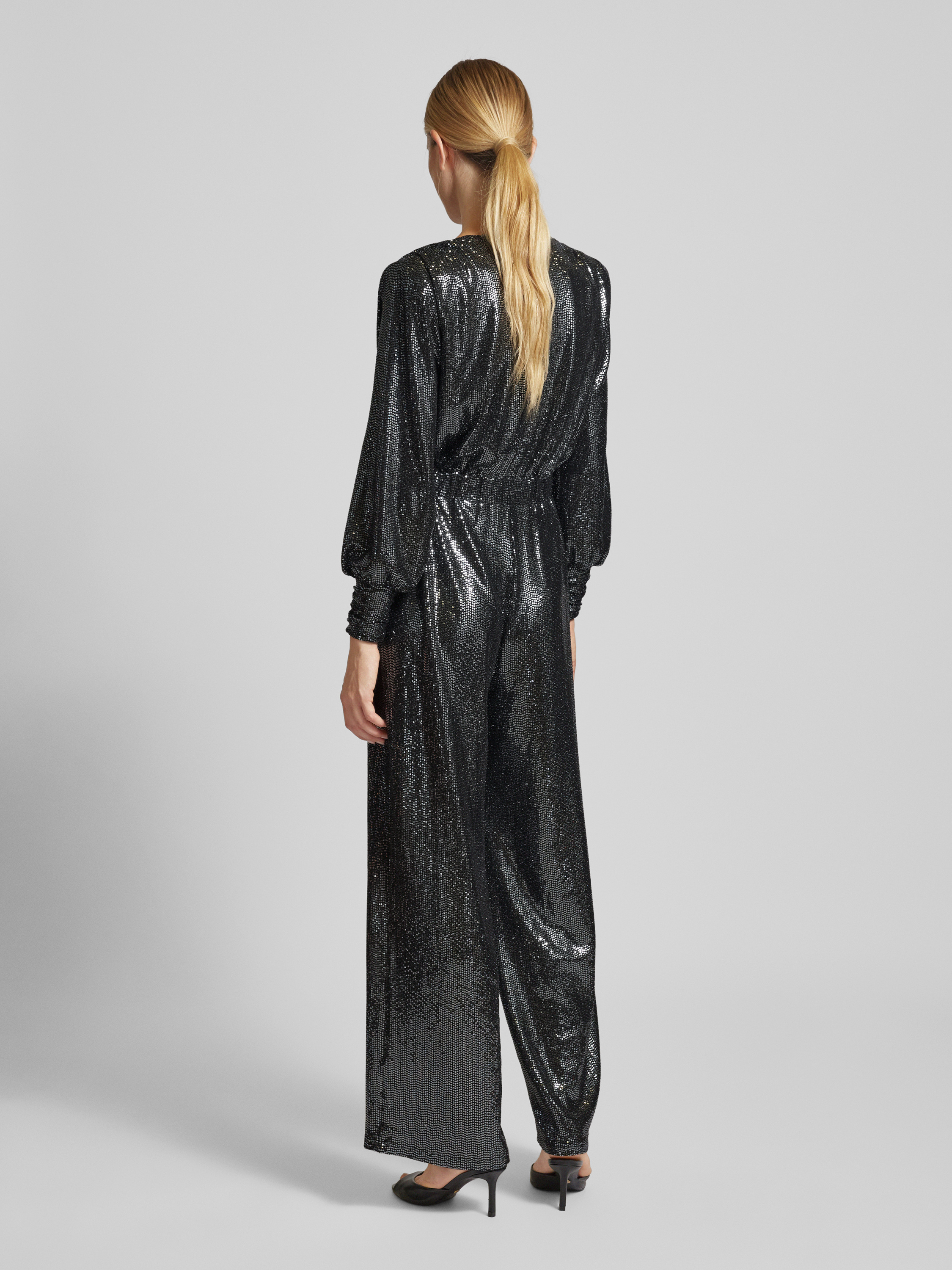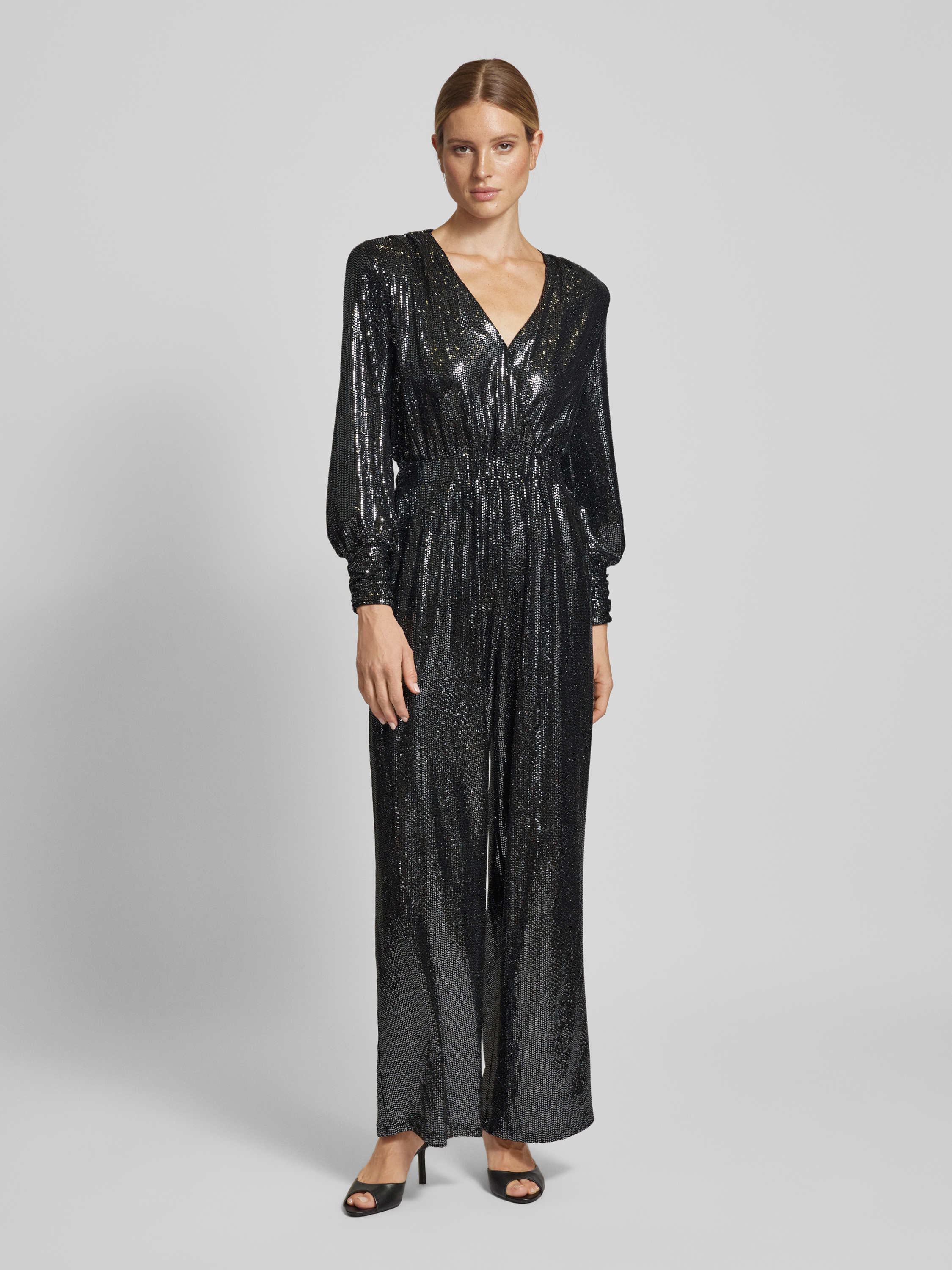 Der elegante Jumpsuit von Constantly K x P&C kombiniert einen taillierten Schnitt mit einem funkelnden Paillettenbesatz, der dem Outfit eine besondere Note verleiht. Der V-Ausschnitt und die Schulterpolster unterstreichen die Silhouette, während leichte Puffärmel für zusätzlichen Komfort sorgen. Perfekt für Anlässe, bei denen man stilvoll auftreten möchte.