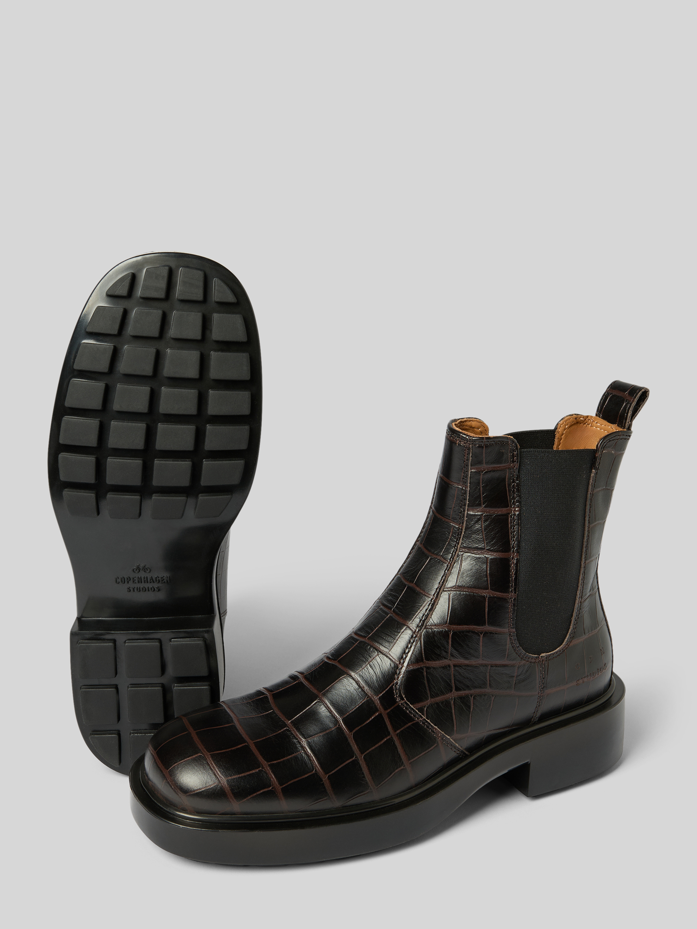Die Damen Boots von Copenhagen zeigen sich mit abgerundeter Spitze und Blockabsatz, wodurch ein angenehmer Tragekomfort entsteht. Durch den elastischen Einsatz sitzt der Schuh bequem am Fuß und lässt sich leicht anpassen. Die profilierte Sohle sorgt für sicheren Halt im Alltag.