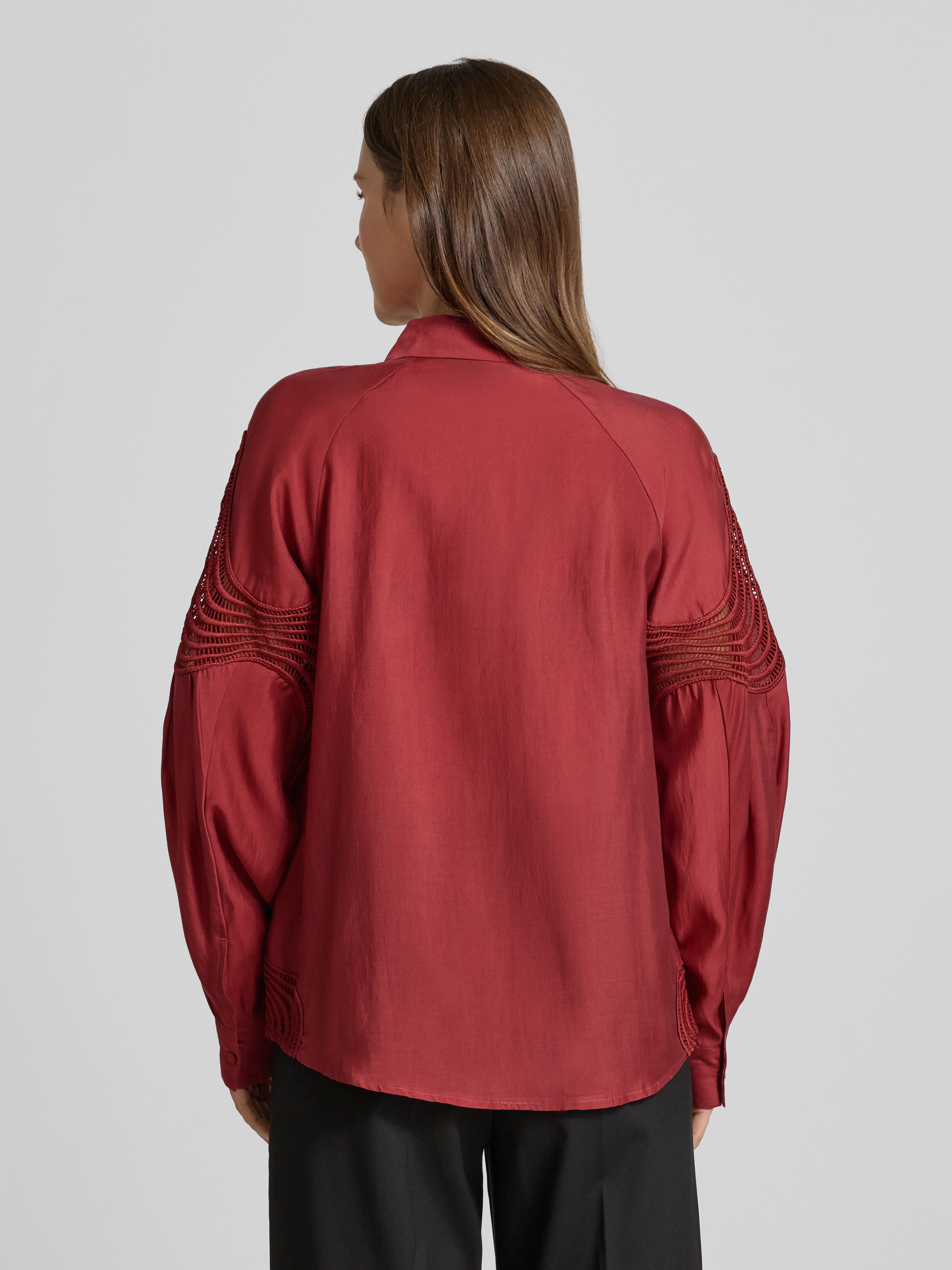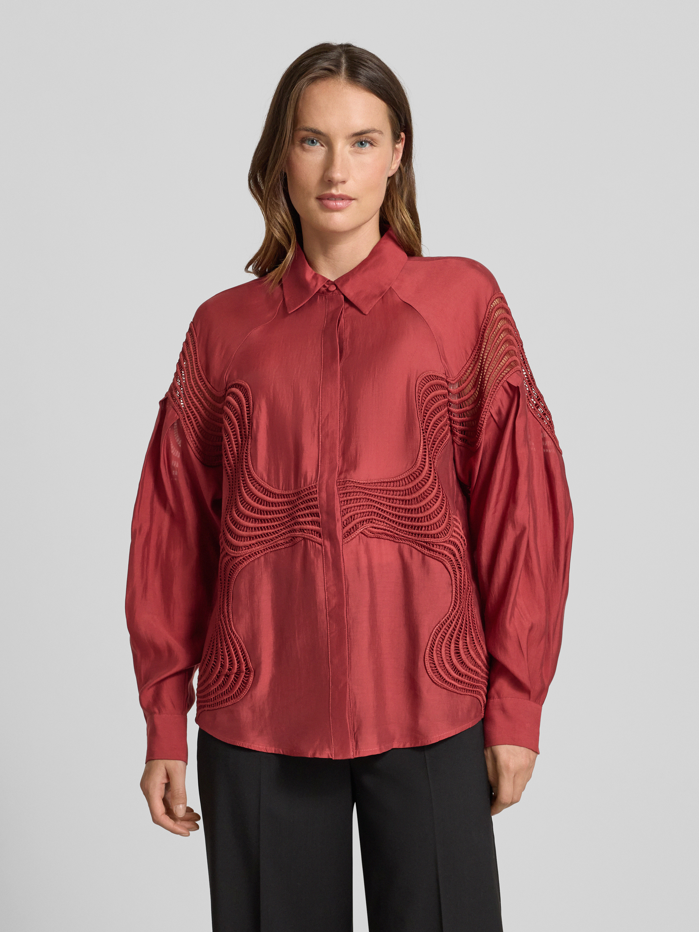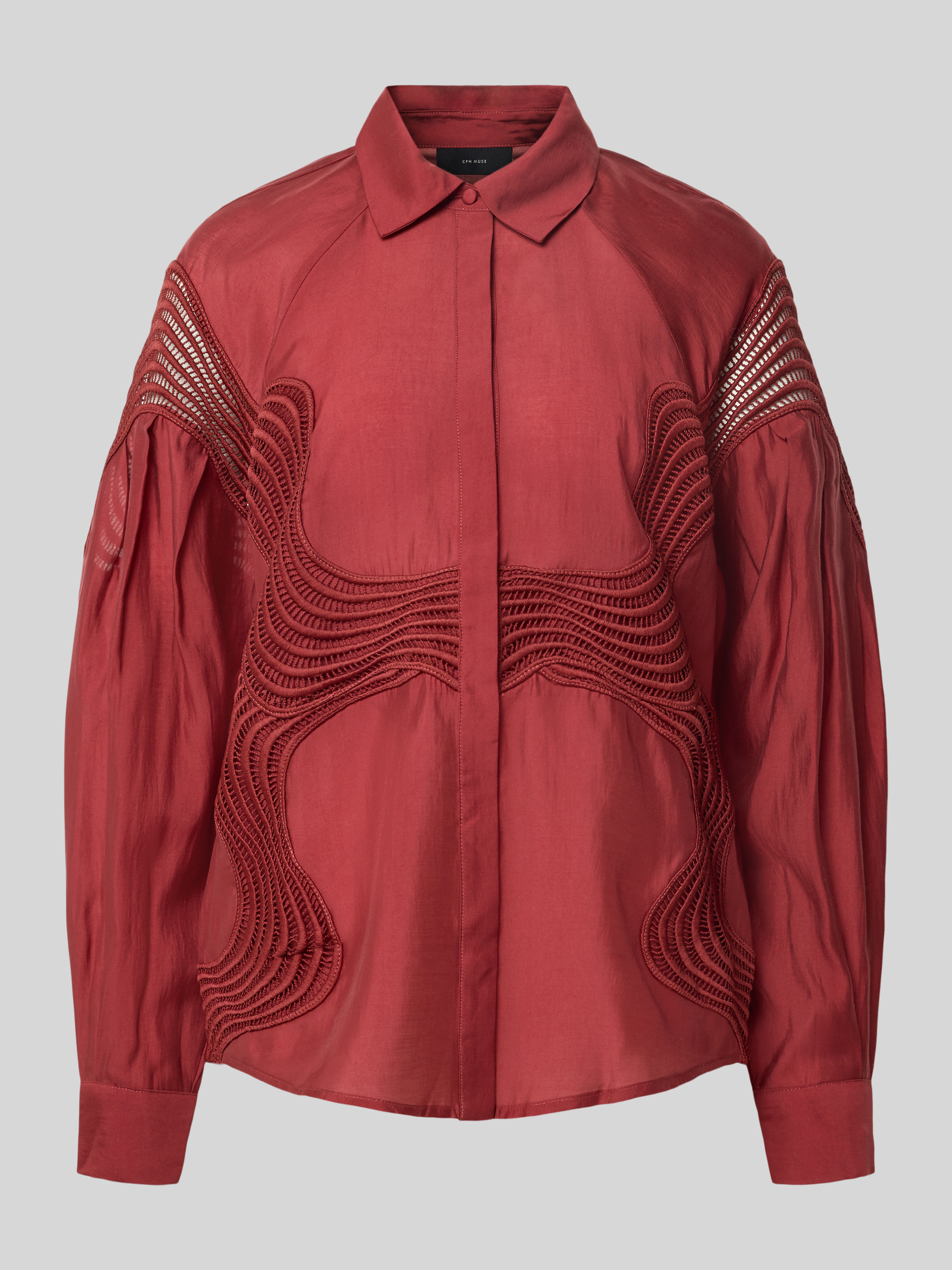 Copenhagen MuseBluse mit Häkelspitze und Hemdblusenkragen Modell 'MOLLY' in dunkelrot