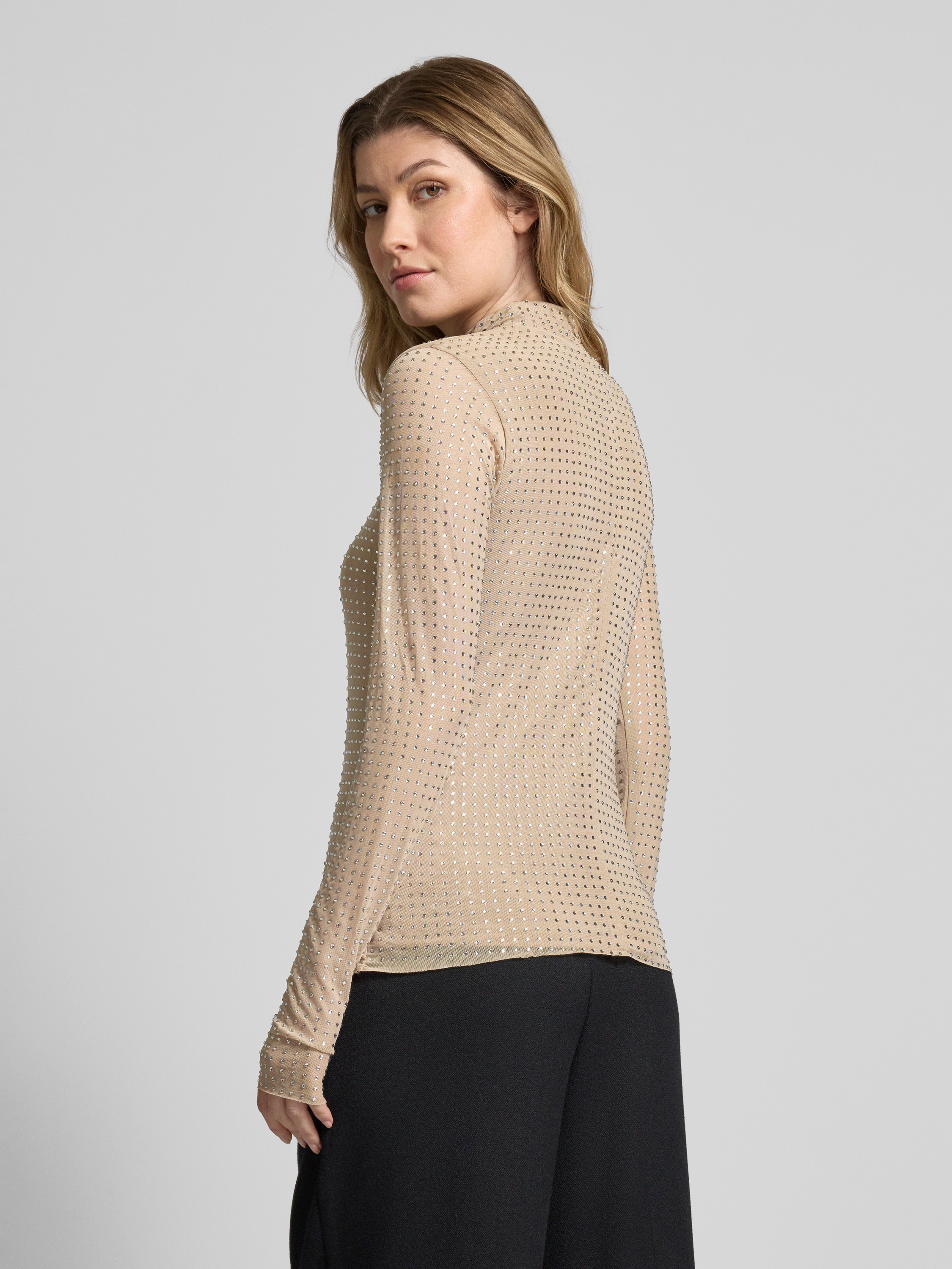 Copenhagen MuseLongsleeve mit Ziersteinbesatz Modell 'STORNO' in sand