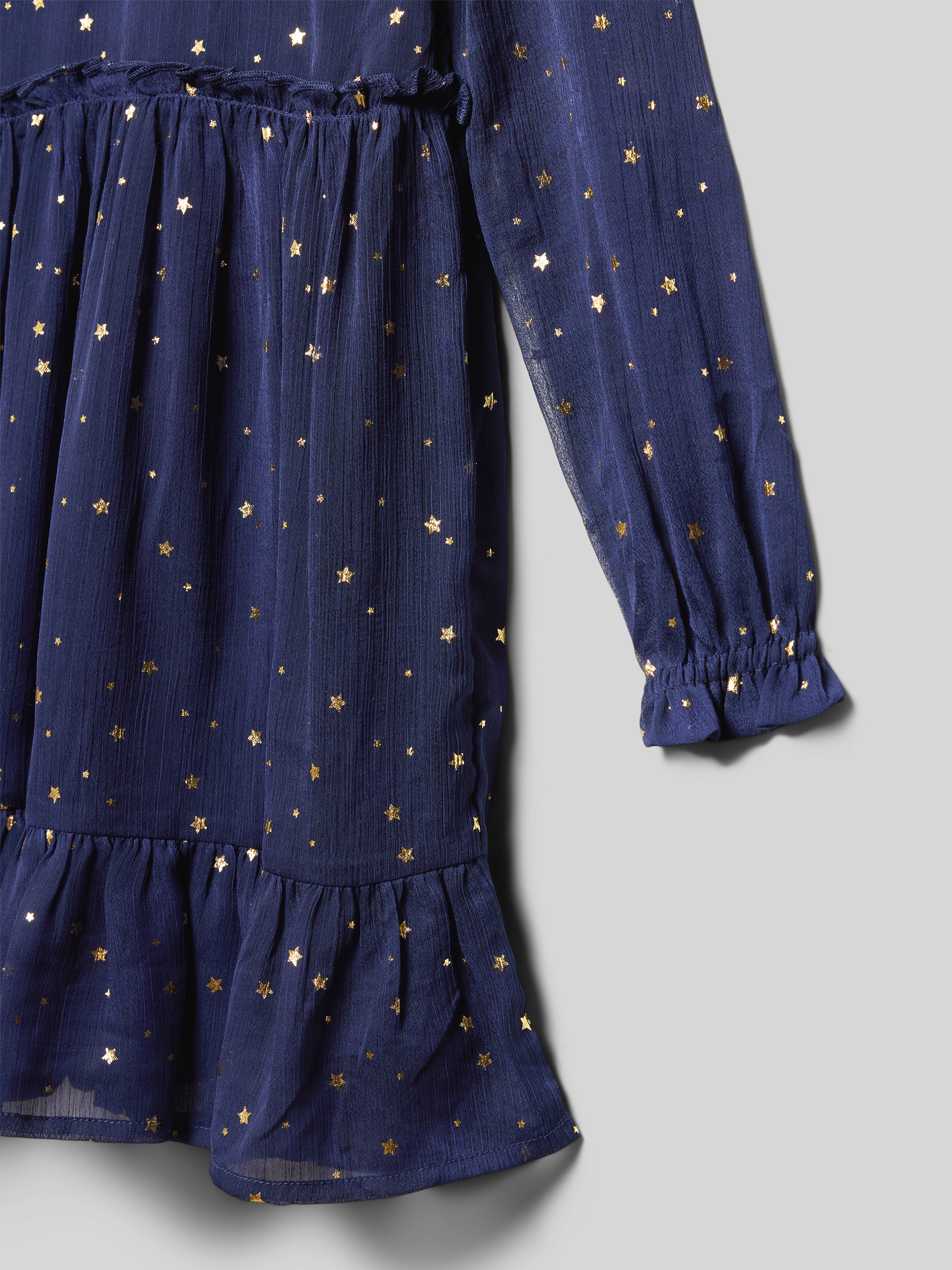 Das Kinder Kleid von DANAMADE im Stufen-Look Modell 'LIAH' fällt locker in einer A-Linie und sorgt so für angenehme Bewegungsfreiheit. Ein Rundhalsausschnitt ergänzt das entspannte Design, das sich vielseitig kombinieren lässt. So eignet sich das Kleid besonders für unbeschwerte Tage.
