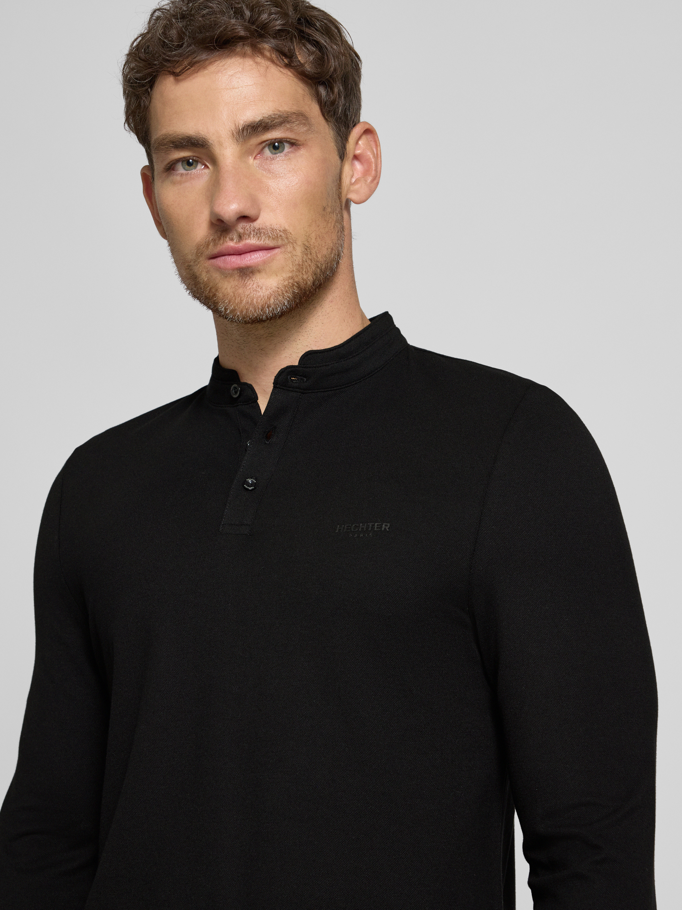 HECHTER PARISLongsleeve mit kurzer Knopfleiste und Label-Detail in black